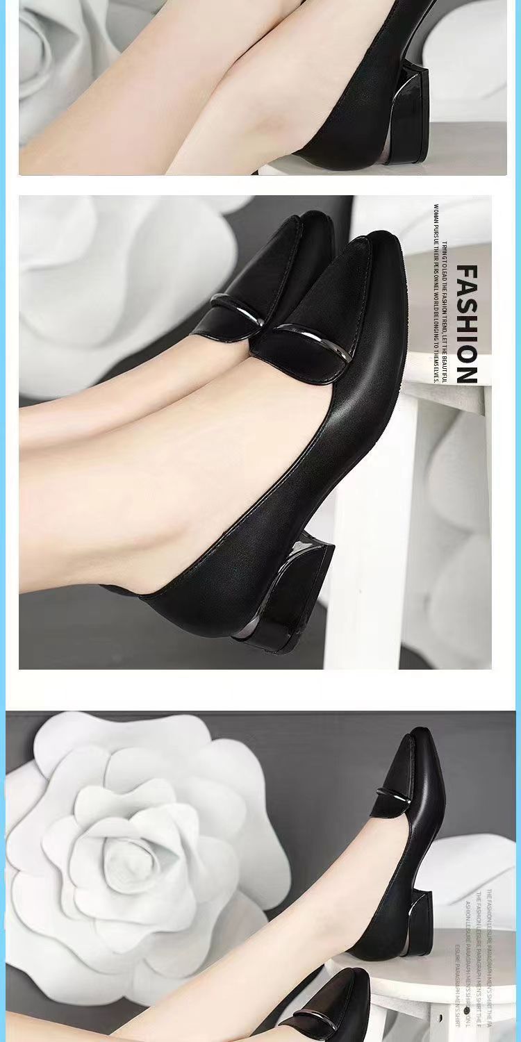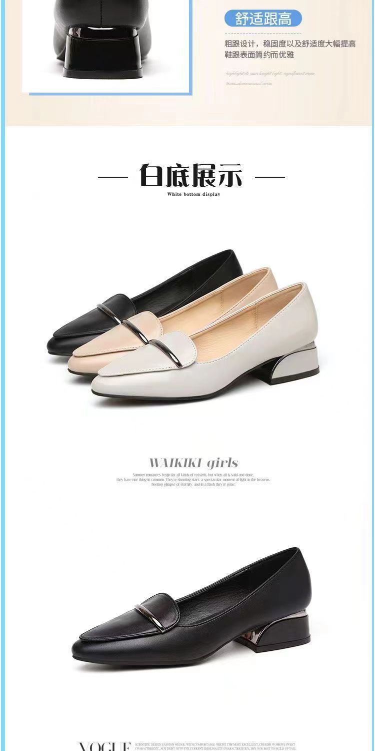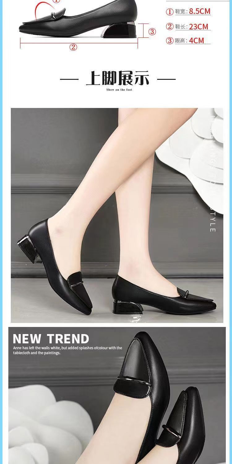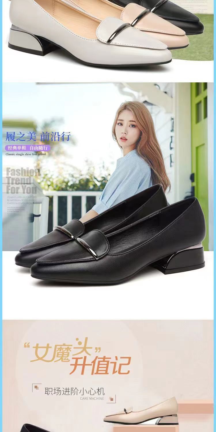 2025 신상 가을 겨울 부드러운 가죽 여성 두꺼운 굽 뾰족한 발가락 낮은 굽 편안한 중간 굽 부드러운 가죽 신발 다용도 펌프스 신발스토어 가기