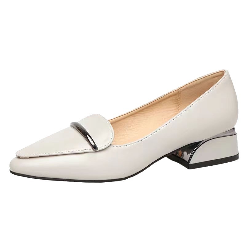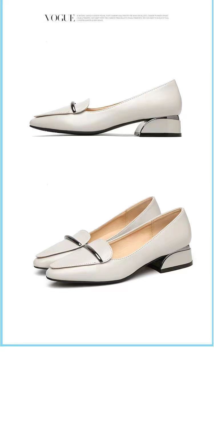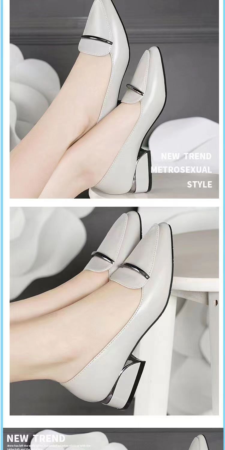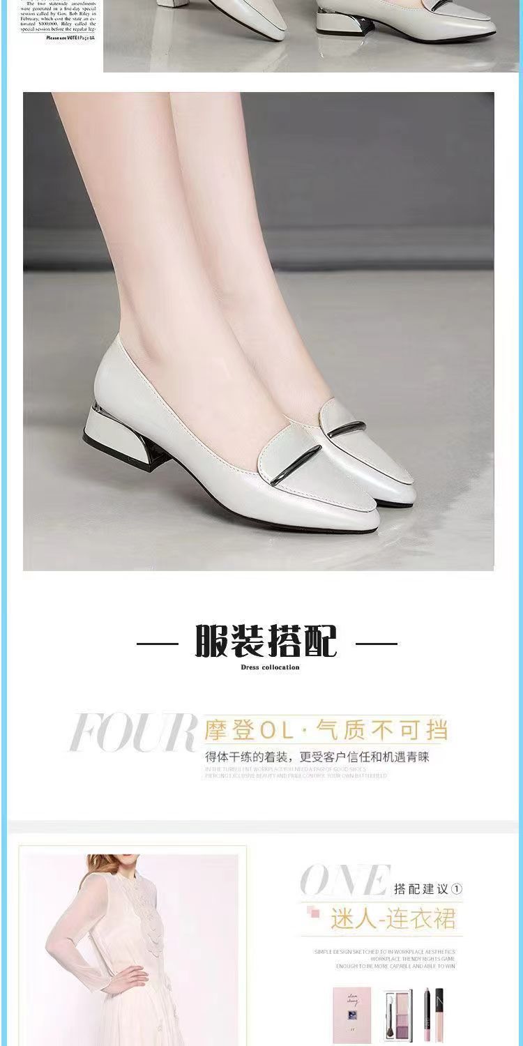 2025 신상 가을 겨울 부드러운 가죽 여성 두꺼운 굽 뾰족한 발가락 낮은 굽 편안한 중간 굽 부드러운 가죽 신발 다용도 펌프스 신발스토어 가기
