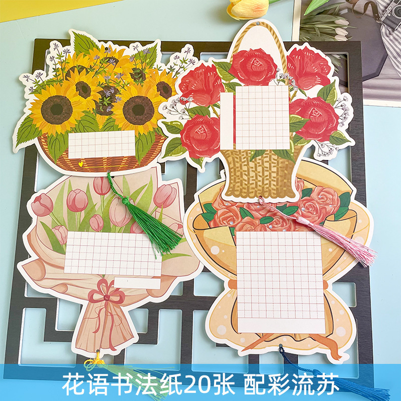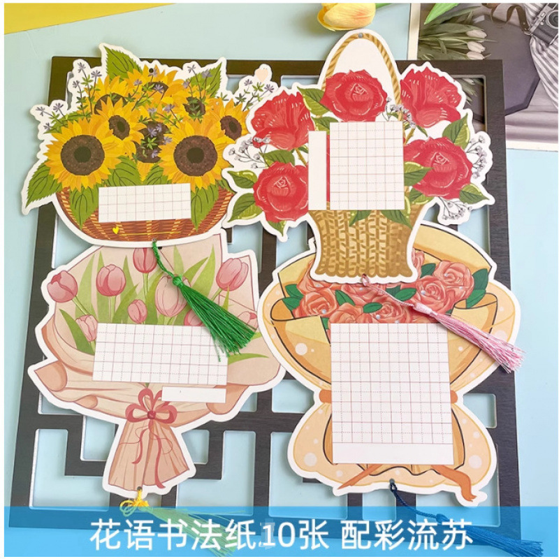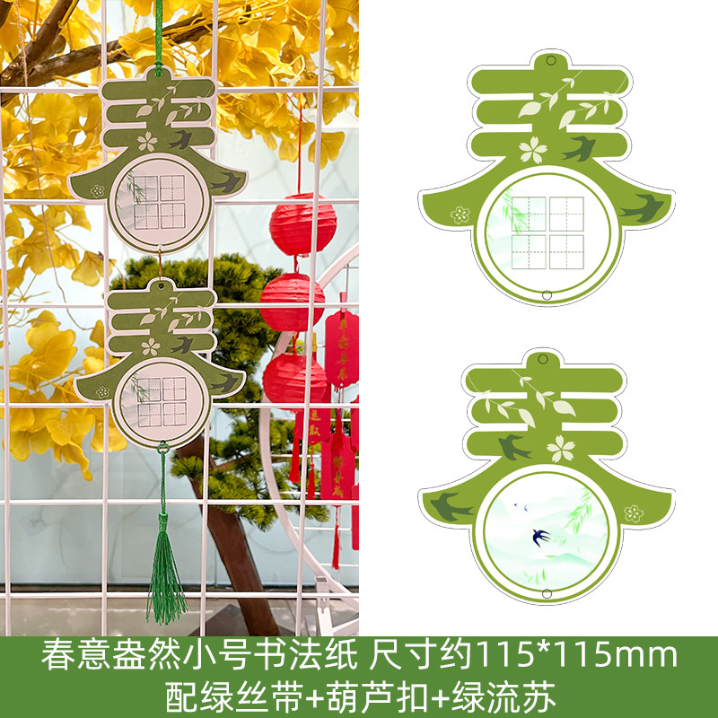 • ++작은 봄 서예지 20장 + 핀 + 녹색 술 6개