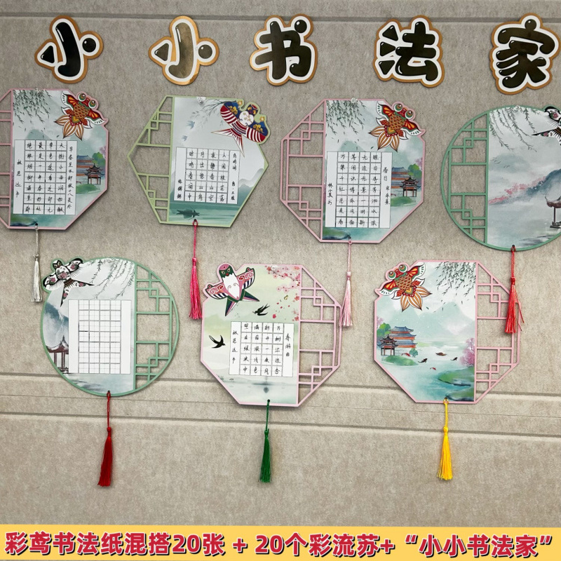 클래스 천 벽 스티커 봄 연 하드 펜 서예 서예 초등학교 학생 중국 스타일 벽 장식 디스플레이 작업 교실