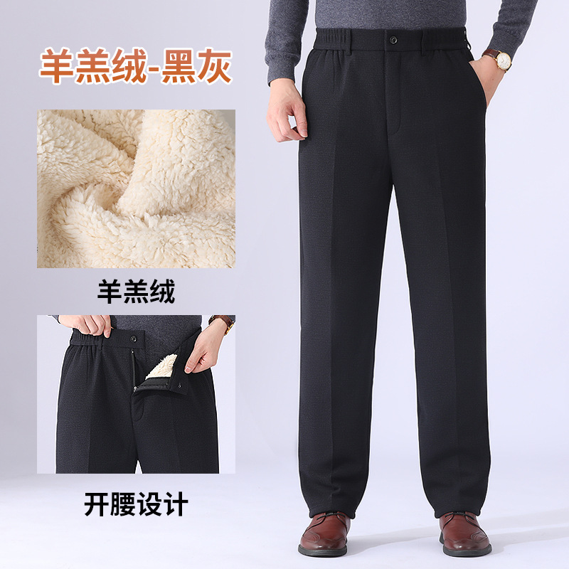 아빠의 겨울 바지 바지 남성용 중년 및 노인 남성용 두꺼운 남성용 바지 가을과 겨울 중년 면화 바지 따뜻하게 입고