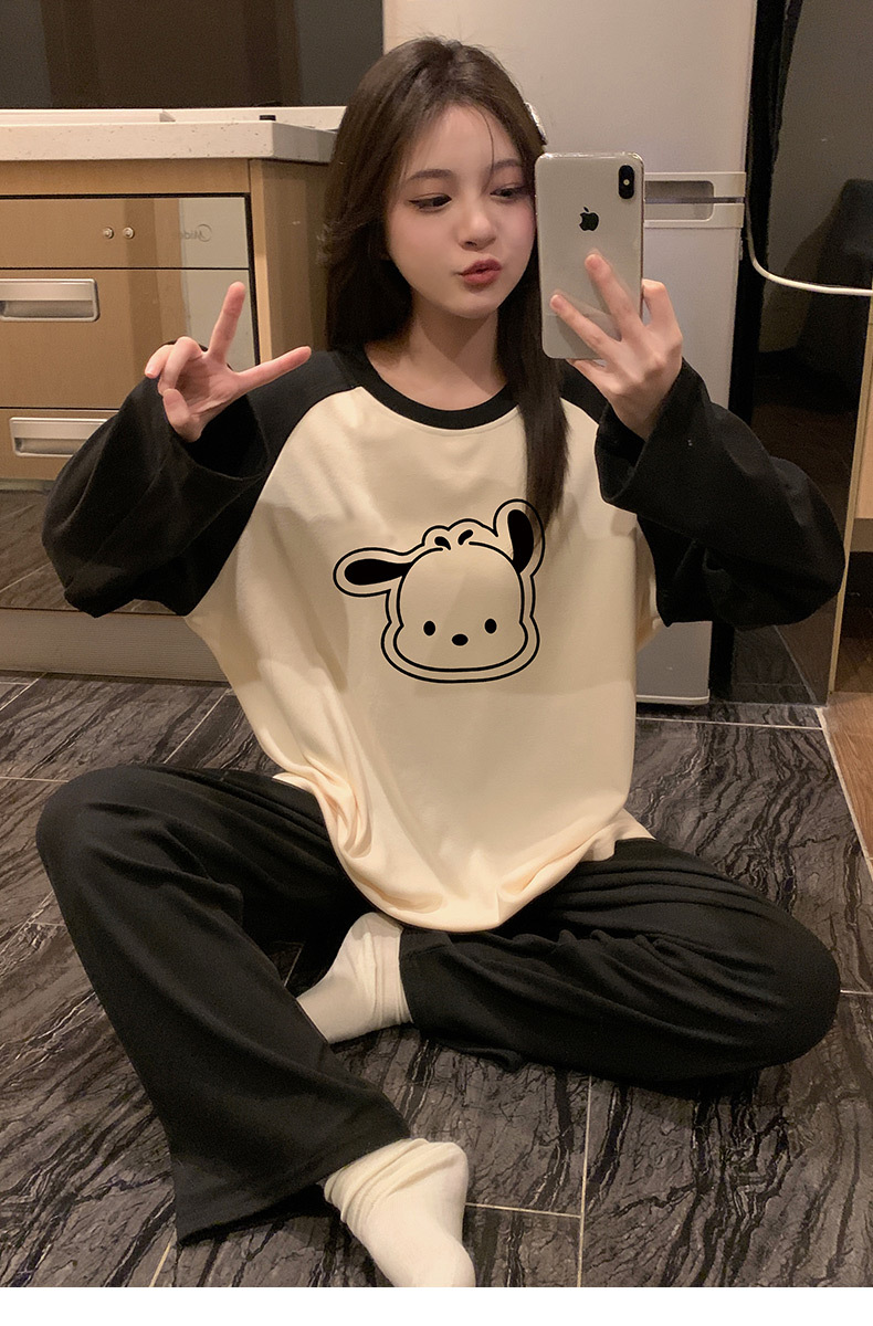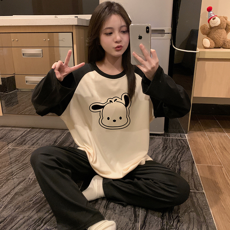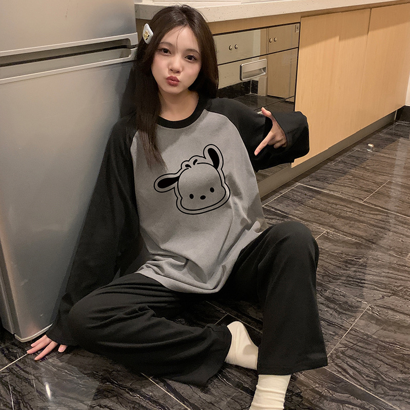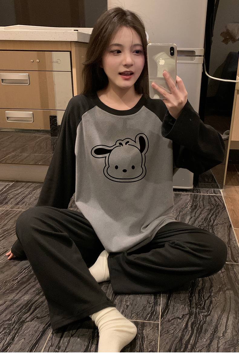 가을과 겨울 새로운 독일 벨벳 패딩 파자마 여성의 긴 소매 세트 만화는 홈 의류 국경 도매 세트 착용 할 수 있습니다.스토어 가기