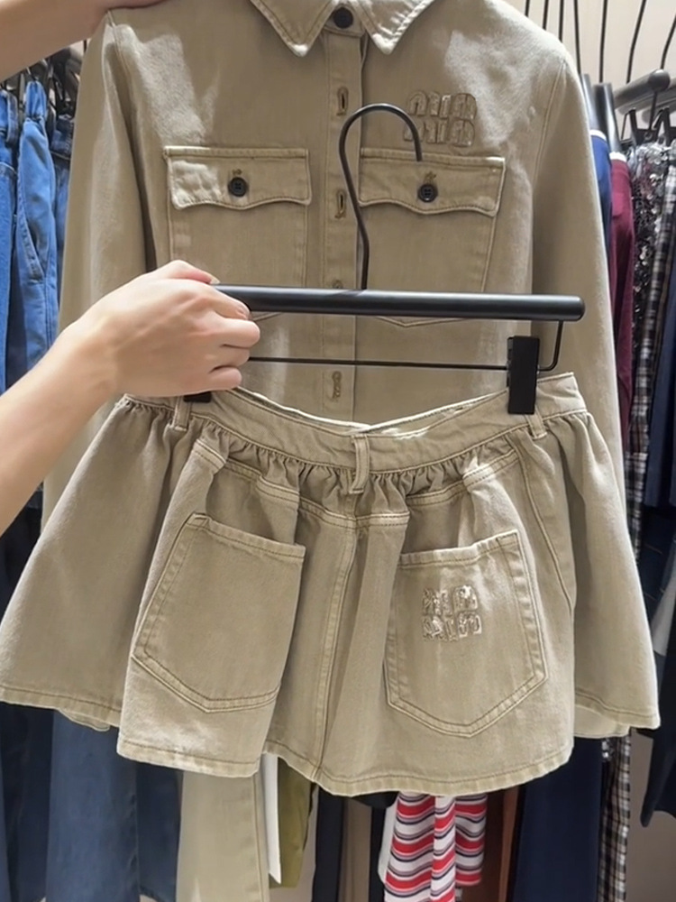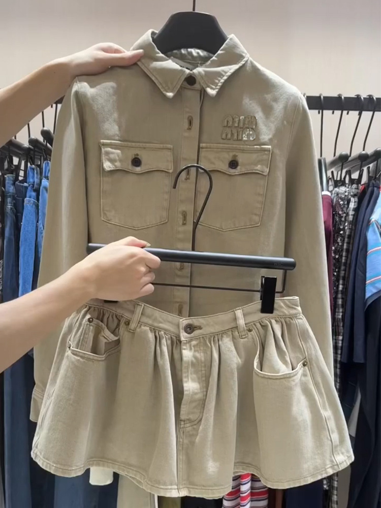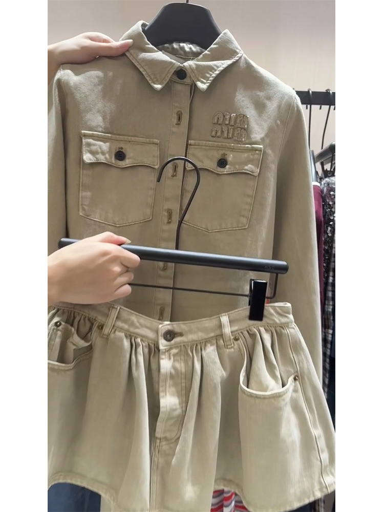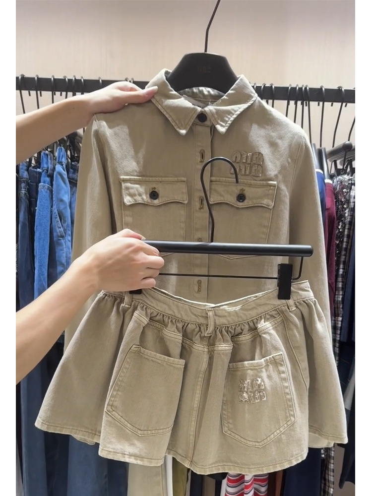 YT375387 초가을 고급 카키 데님 투피스 세트 여성 의류 세트 2024스토어 가기