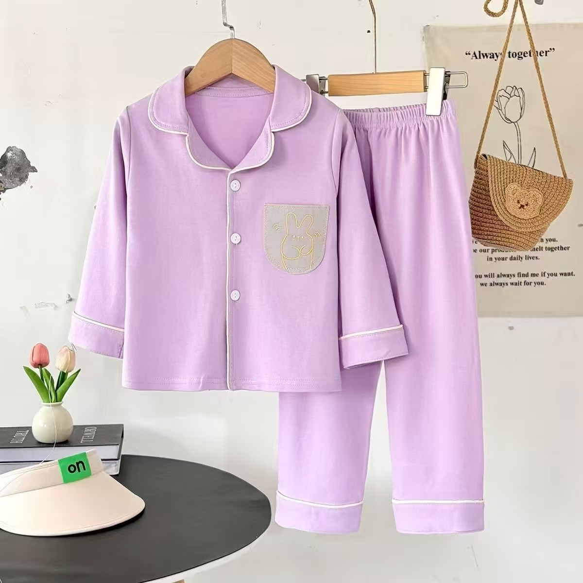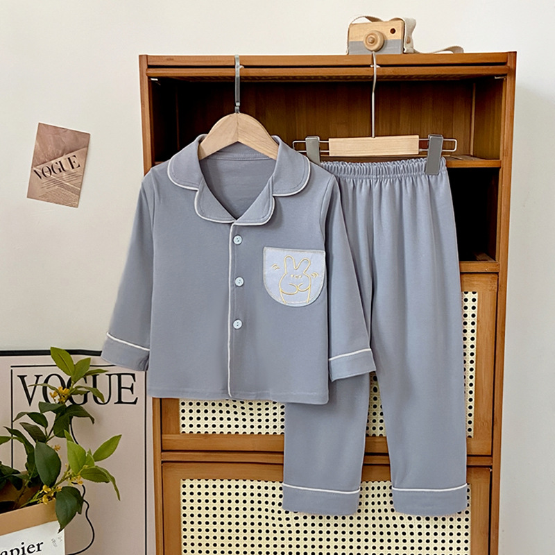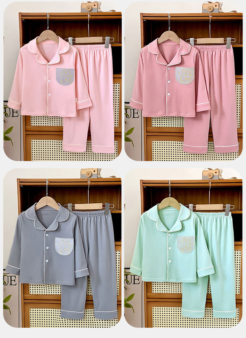 어린이 잠옷 가을과 겨울 순면 소년과 소녀 순면 홈 의류 카디건 긴 소매 2 피스 세트 복고풍 색상