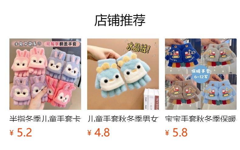 반 손가락 겨울 어린이 장갑 만화 겨울 따뜻한 귀여운 플립 손가락 누설 손가락 학생 글쓰기 장갑 두껍게스토어 가기