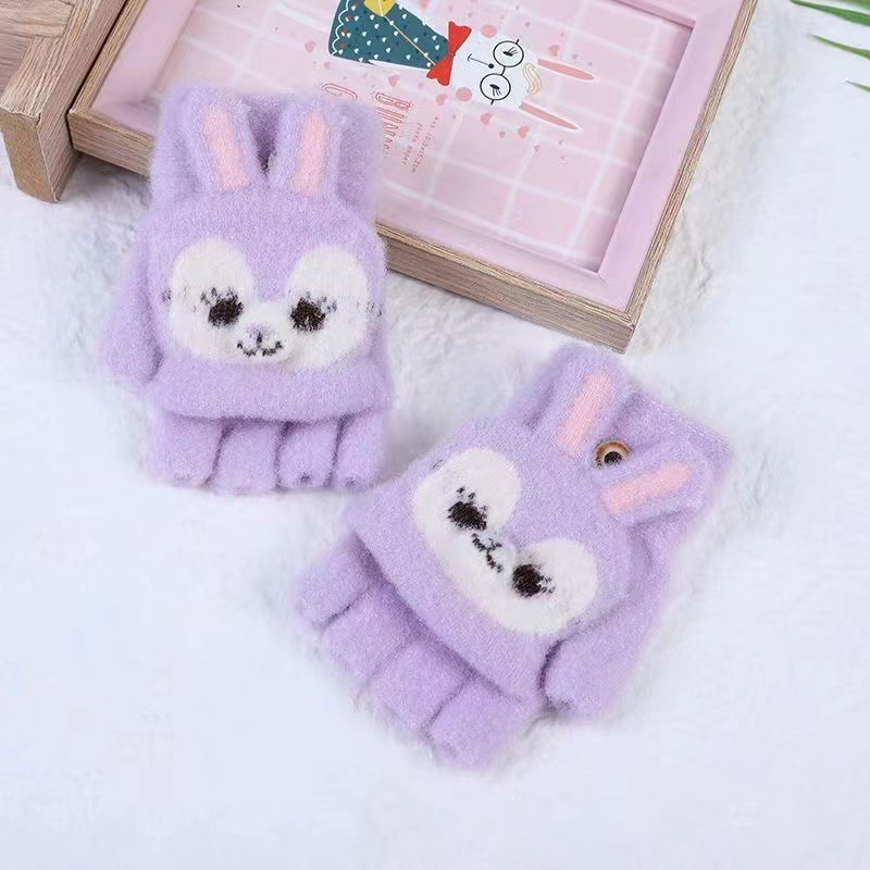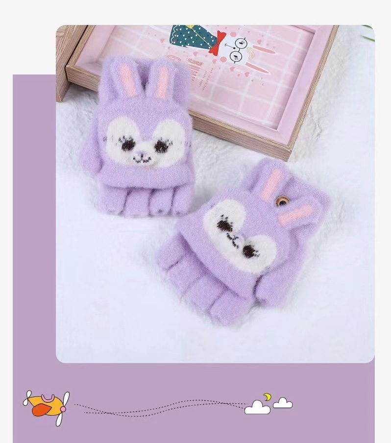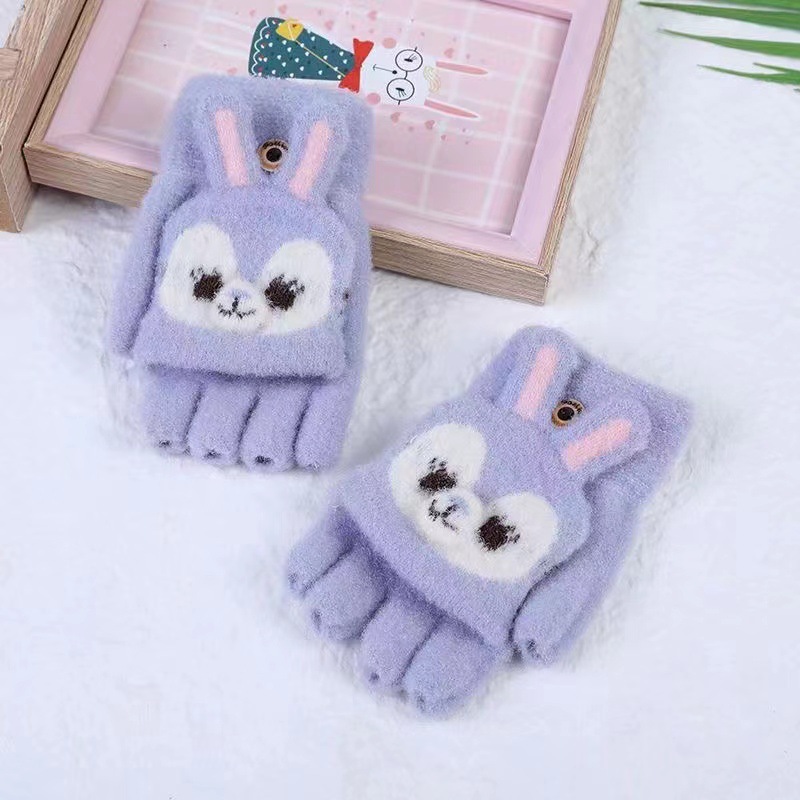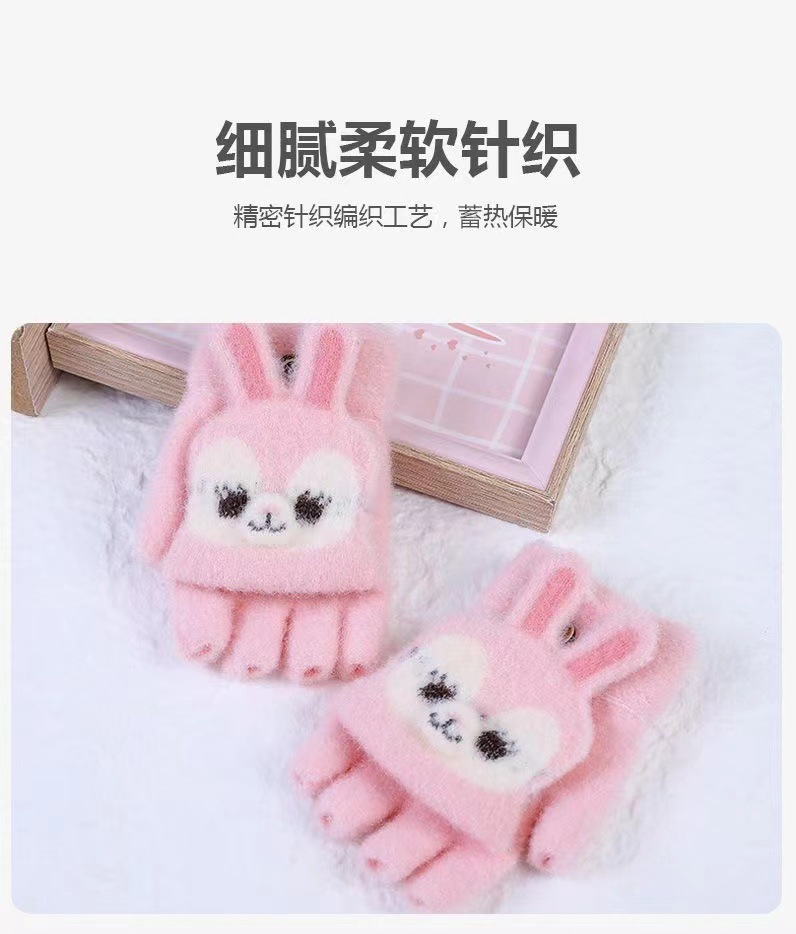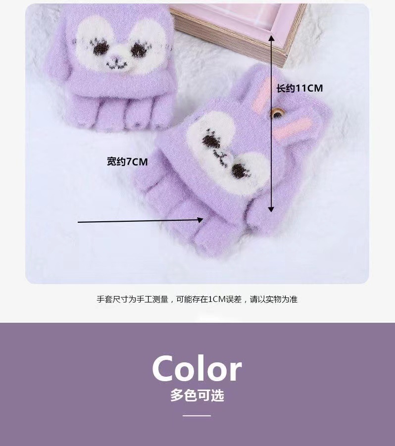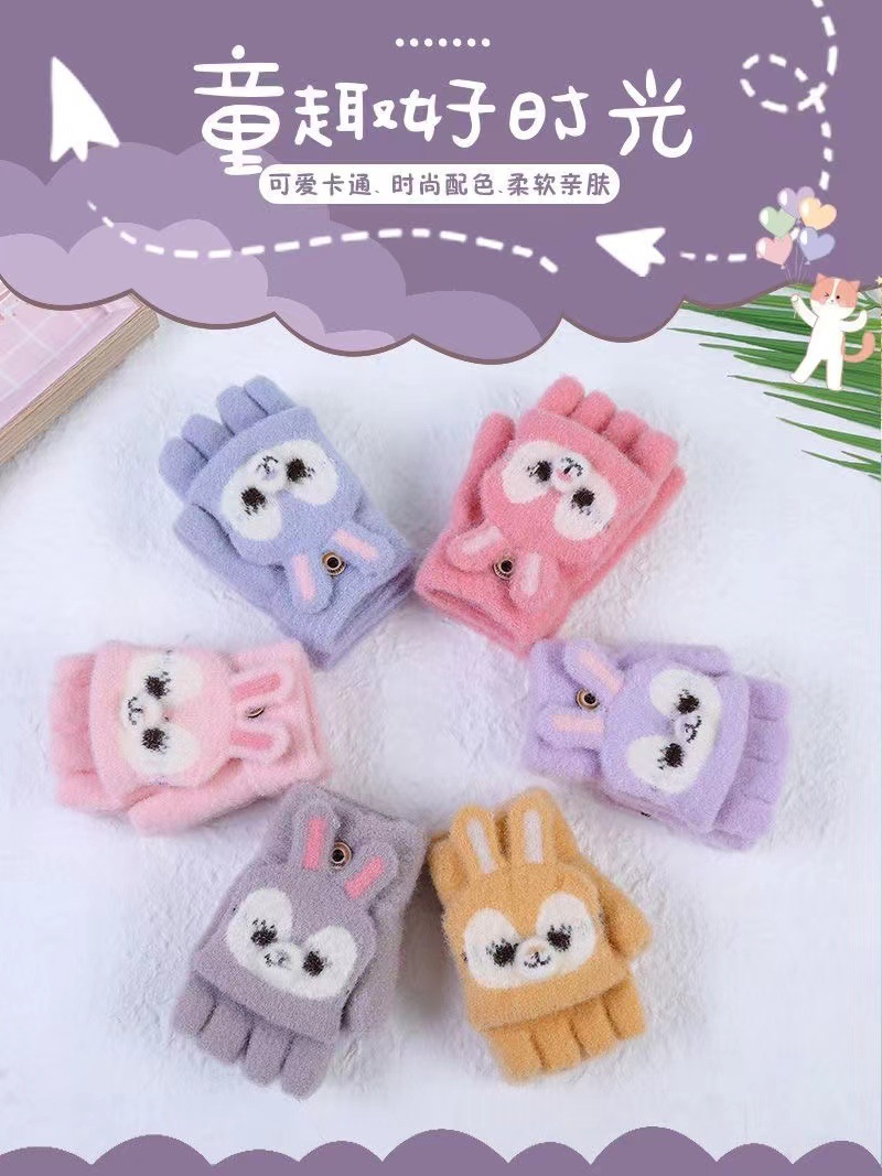 반 손가락 겨울 어린이 장갑 만화 겨울 따뜻한 귀여운 플립 손가락 누설 손가락 학생 글쓰기 장갑 두껍게