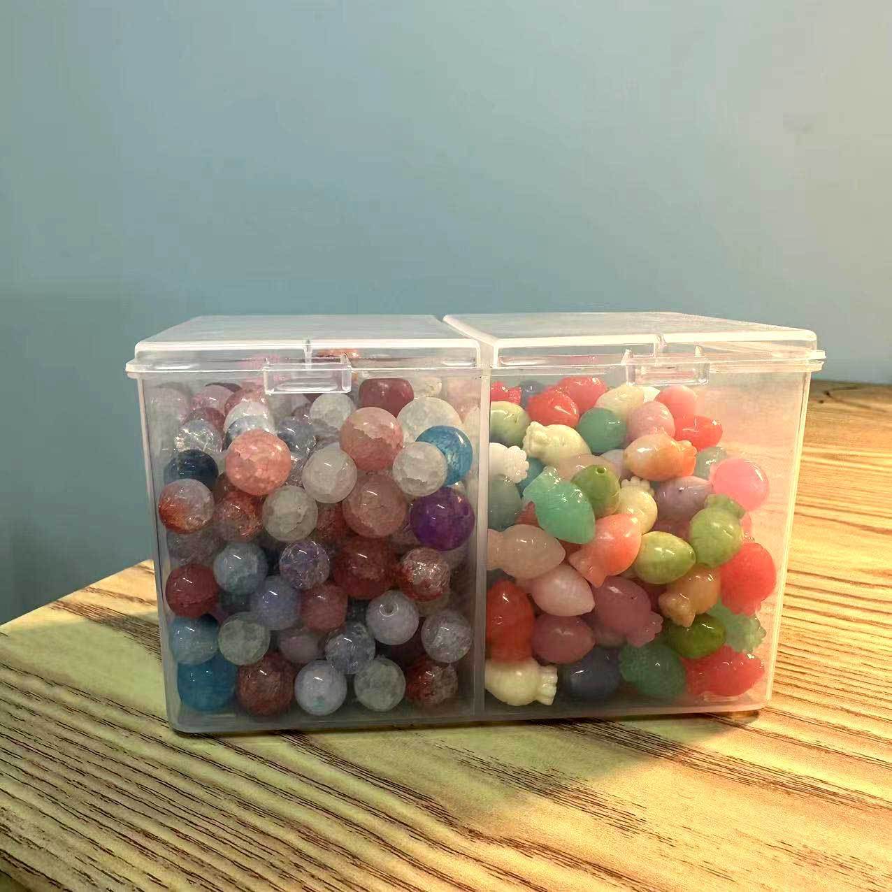 • 투명한 이중 칸막이 일체형 상자
