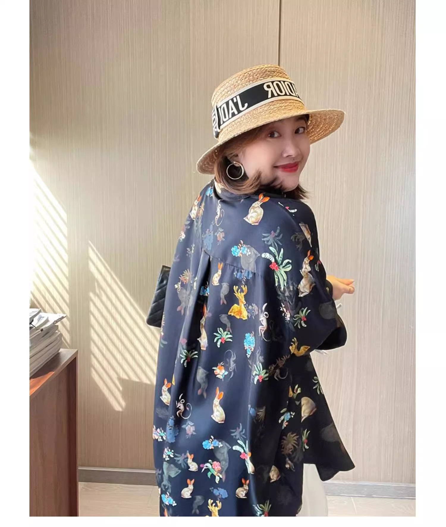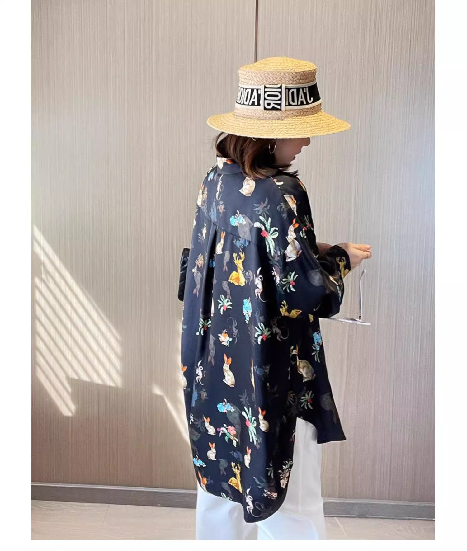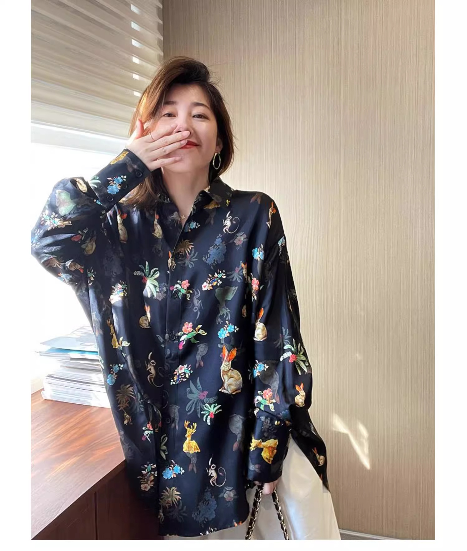 가을 2024 새로운 재고 프린트 셔츠 여성용 틈새 중간 길이의 쉬폰 꽃 플러스 사이즈 셔츠스토어 가기