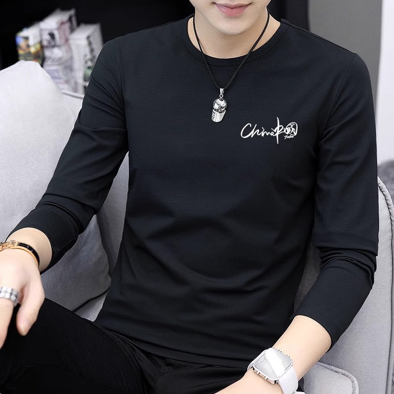 남자의 새로운 도착 인쇄 긴 소매 티셔츠 남자의 둥근 목 슬림베이스 셔츠 유행 캐주얼 올 매치 톱 남성 패션스토어 가기