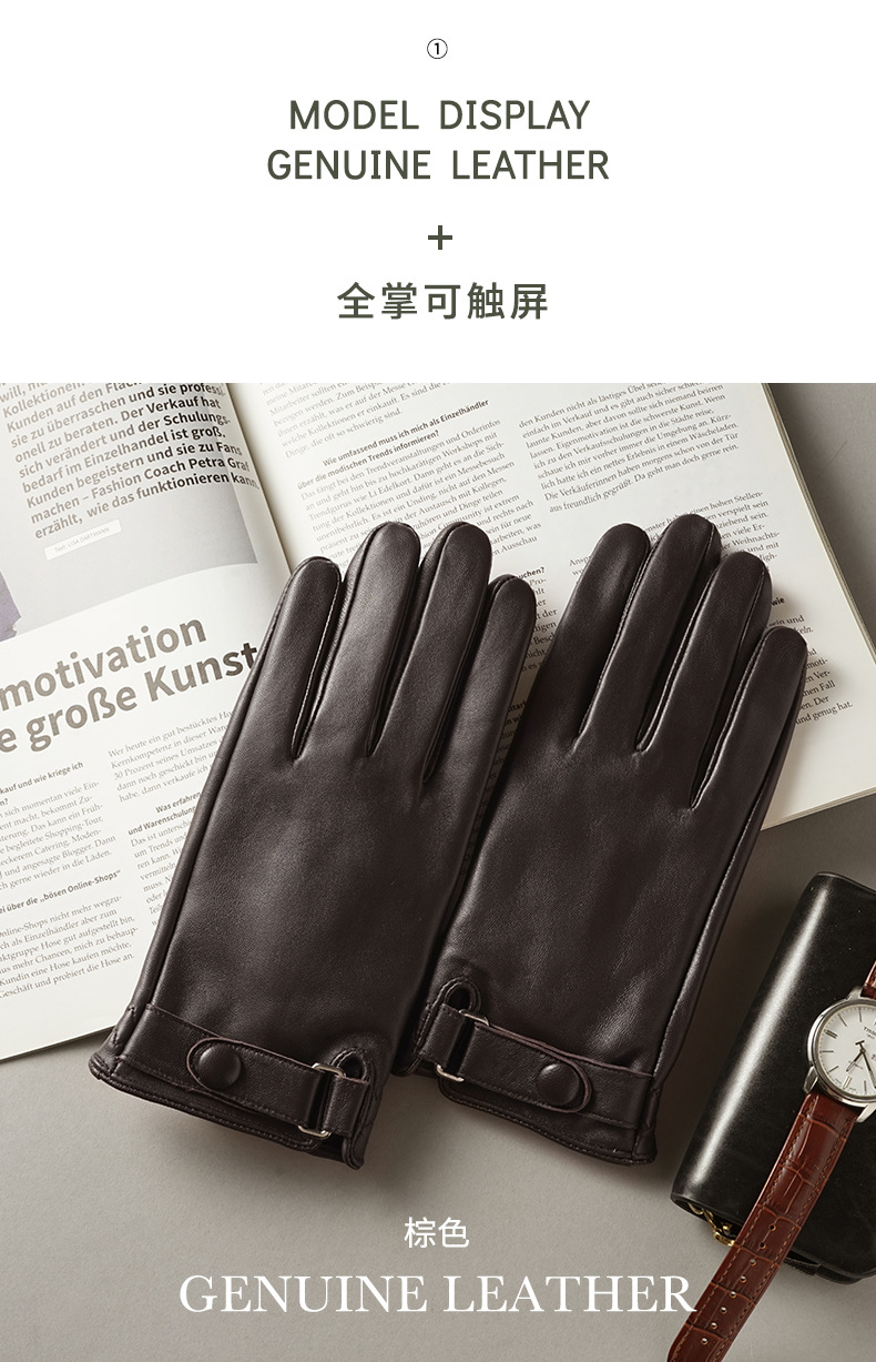 남성용 양가죽 장갑, 가을 겨울용, 벨벳 안감으로 두껍게 제작되어 보온성과 방한성을 유지, 운전 및 라이딩에 적합, 얇은 모델, 터치스크린 사용 가능, 최고급 양가죽