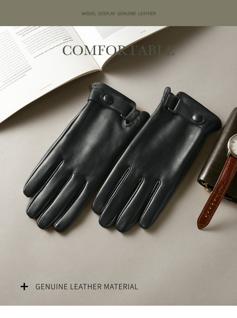남성용 양가죽 장갑, 가을 겨울용, 벨벳 안감으로 두껍게 제작되어 보온성과 방한성을 유지, 운전 및 라이딩에 적합, 얇은 모델, 터치스크린 사용 가능, 최고급 양가죽스토어 가기