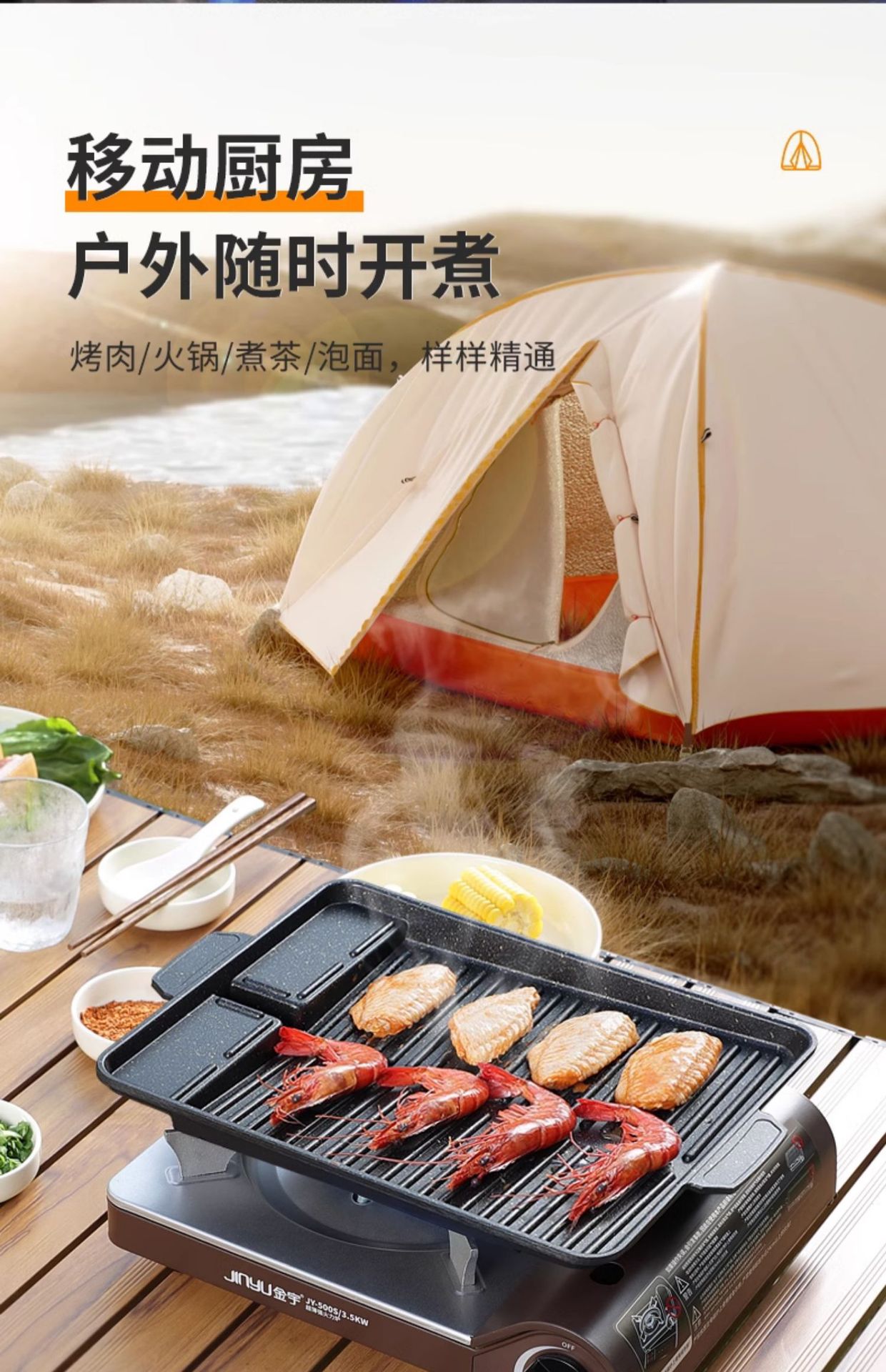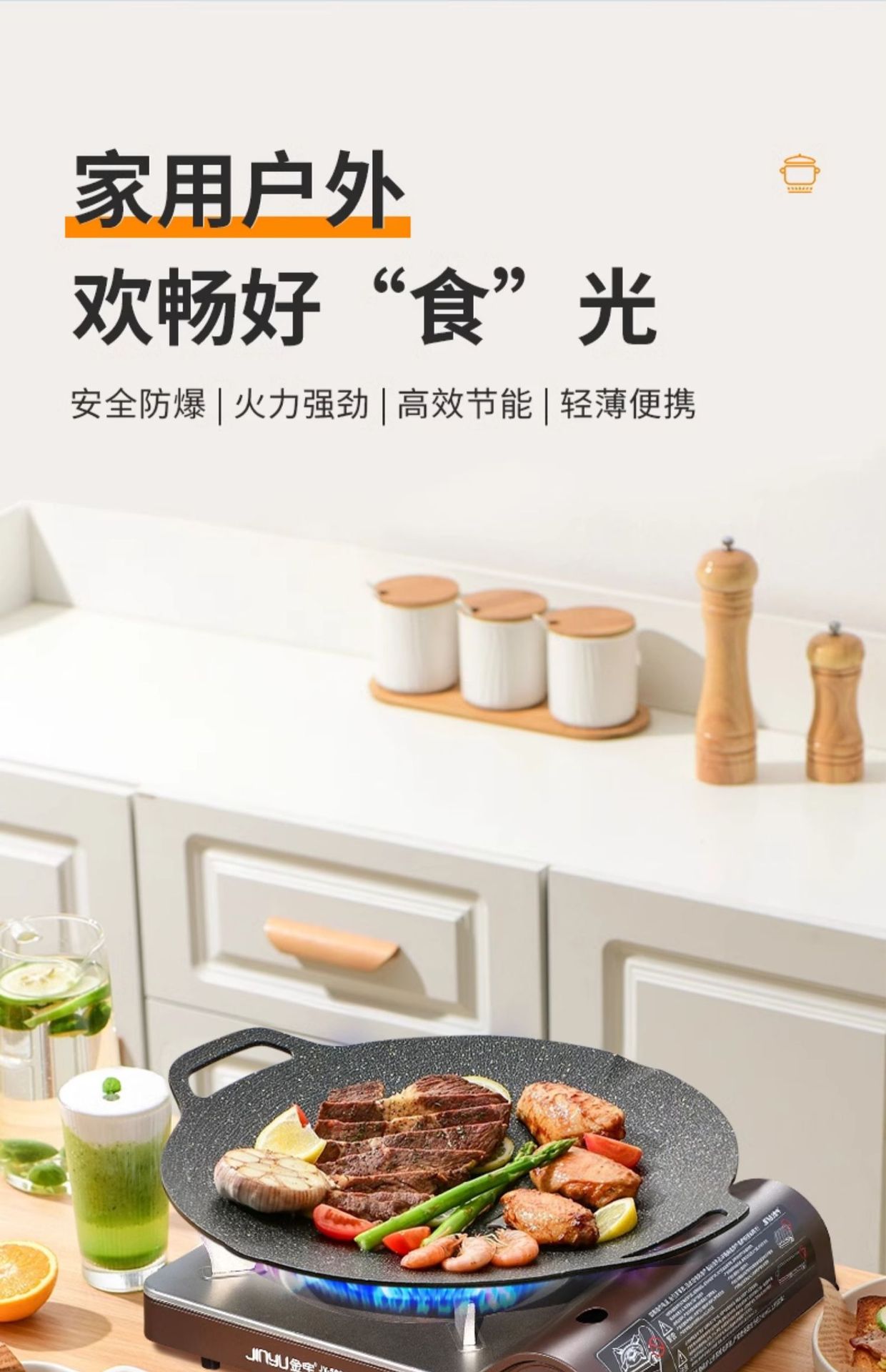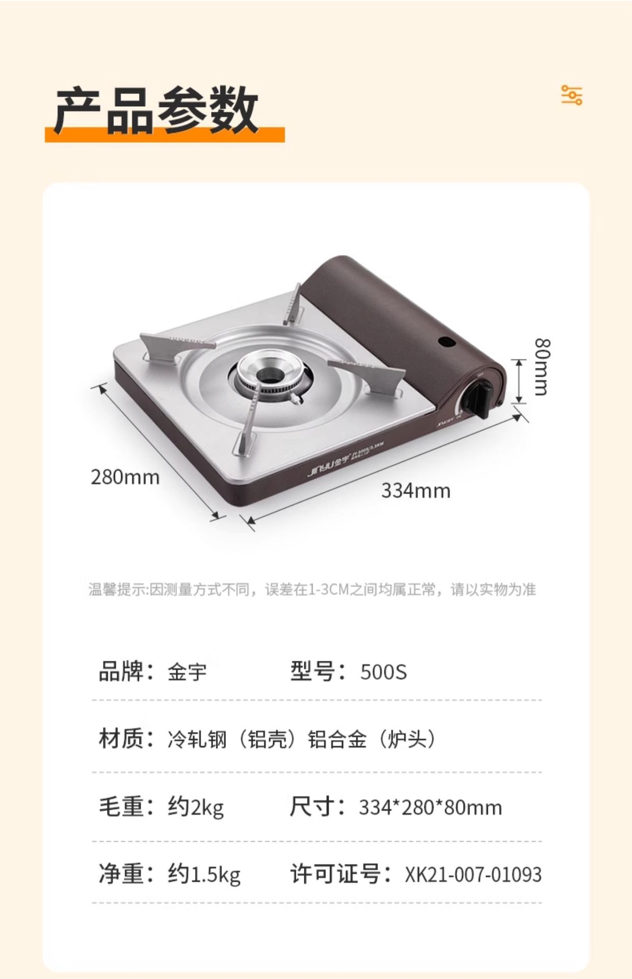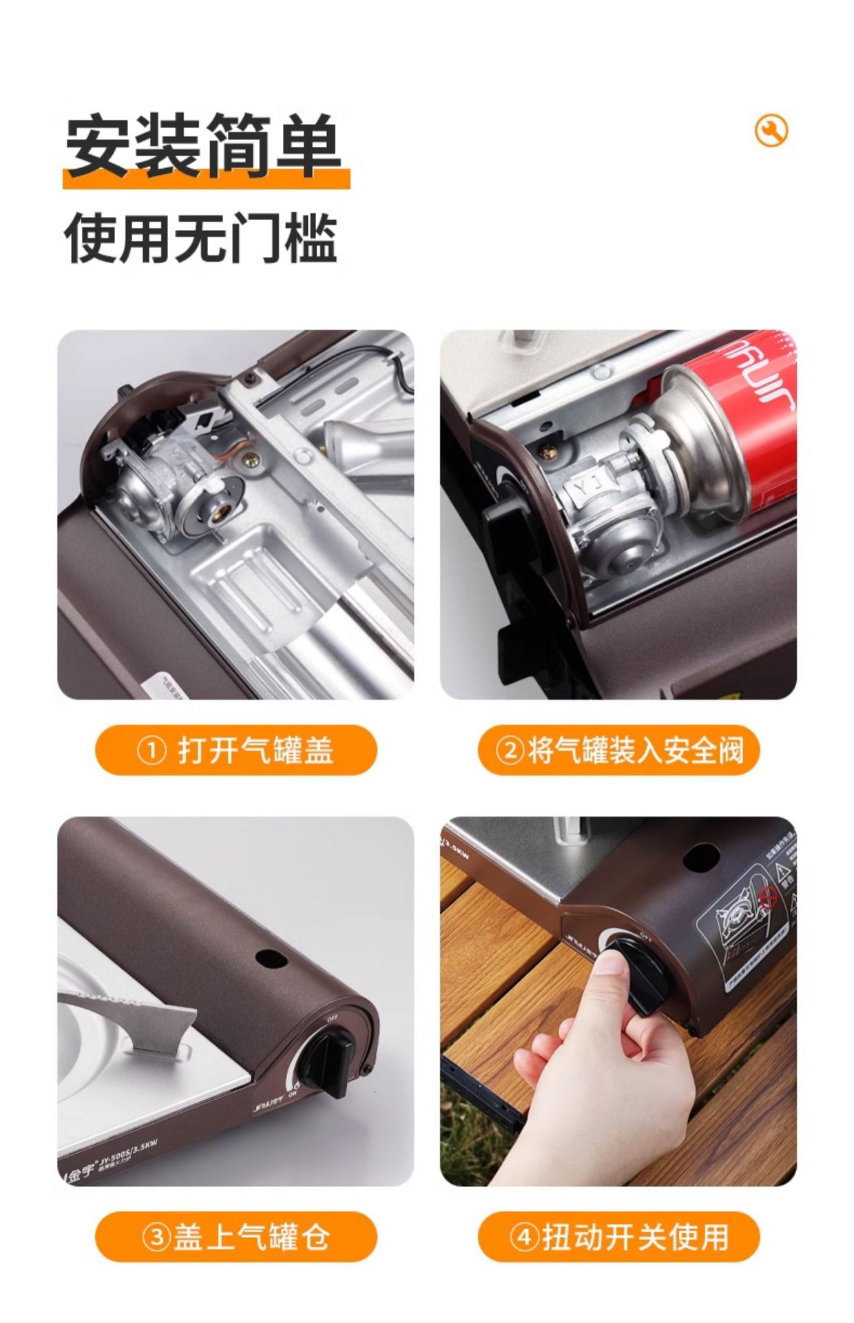 진위 초박형 고출력 카세트 스토브 500S 야외 바베큐 캠핑용 방풍 카세트 스토브 바베큐 그릴