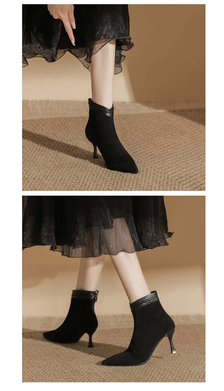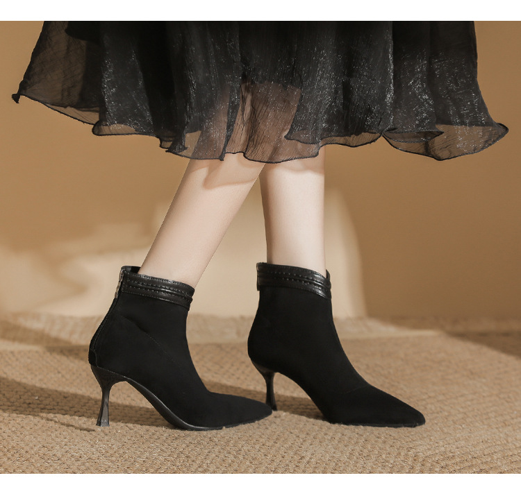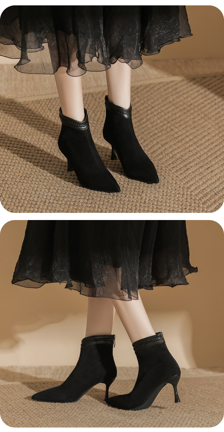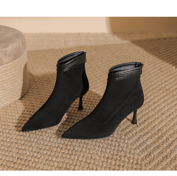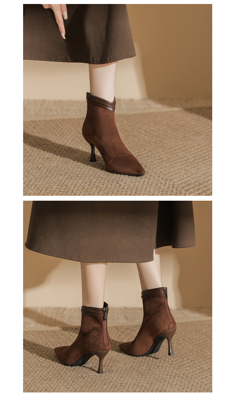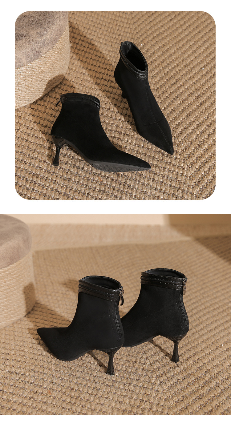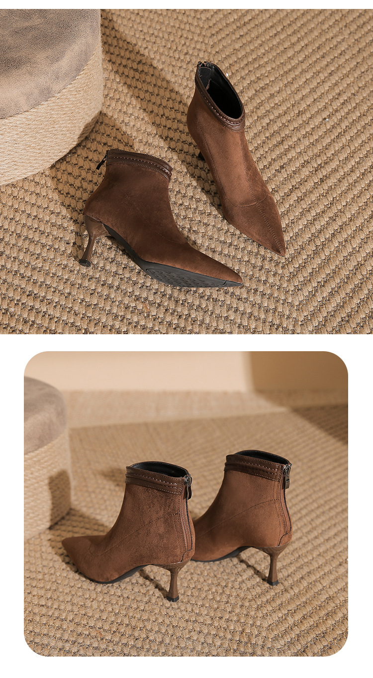 662 뾰족한 하이힐 부츠 여성 2024 새로운 겨울 스웨이드 얇은 힐 양말 부츠 다시 지퍼 탄성 얇은 부츠스토어 가기