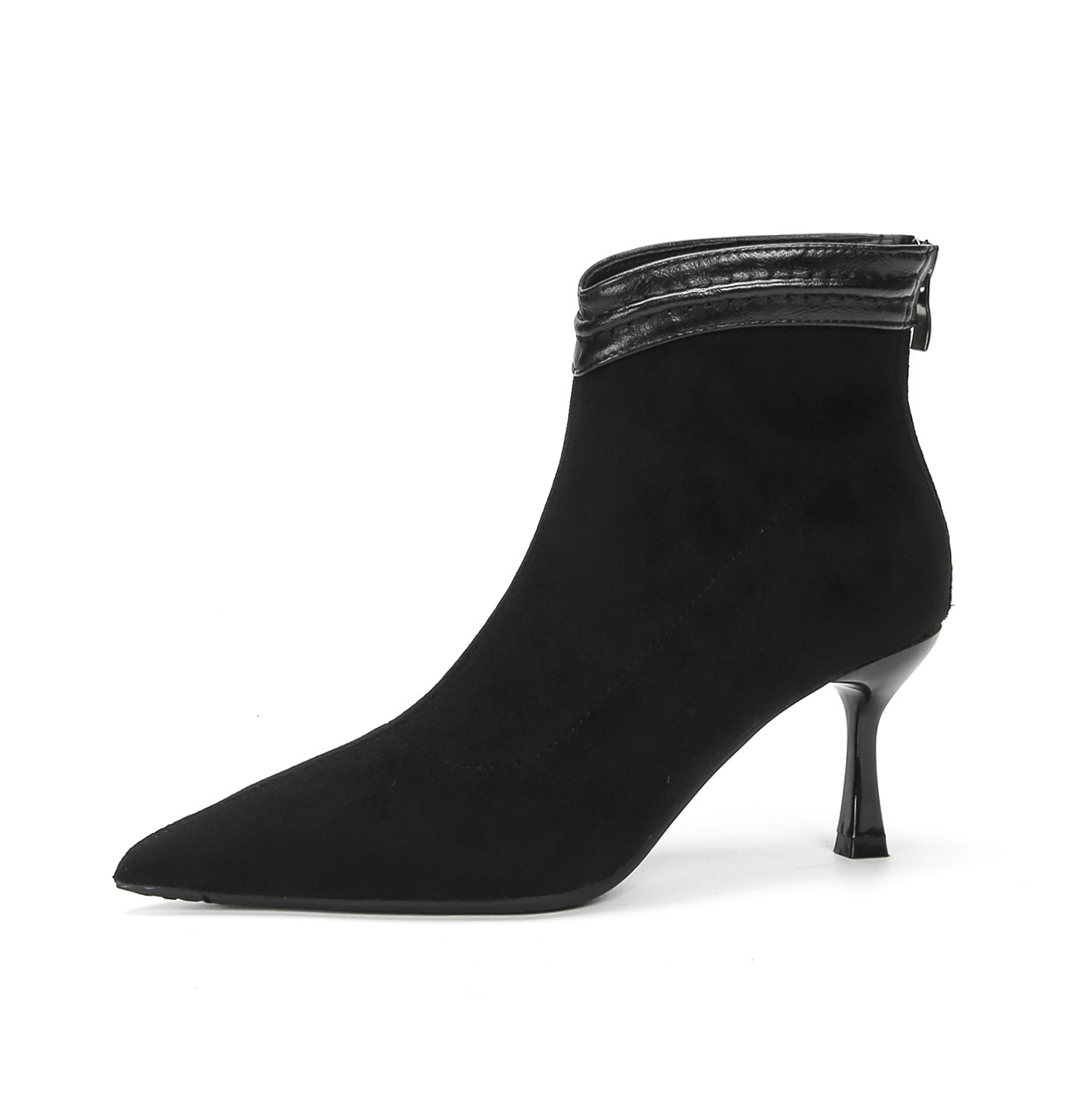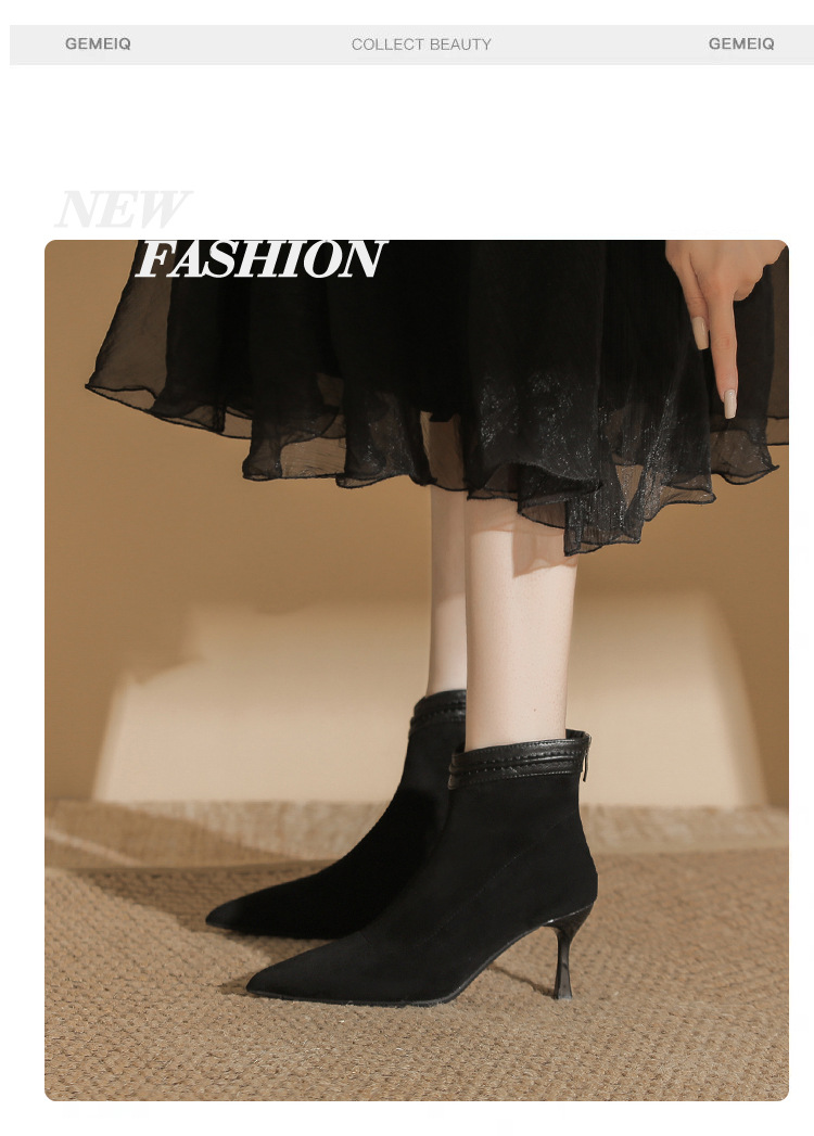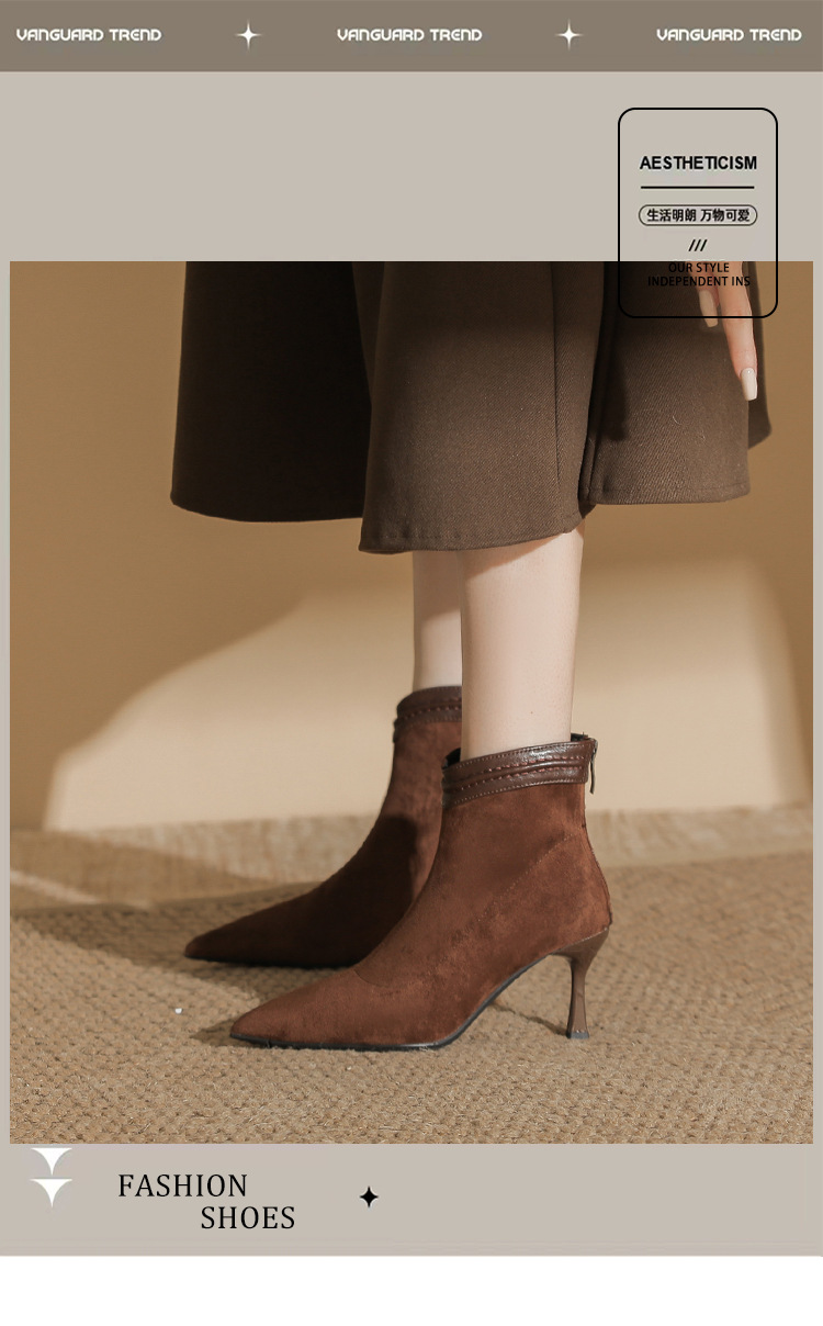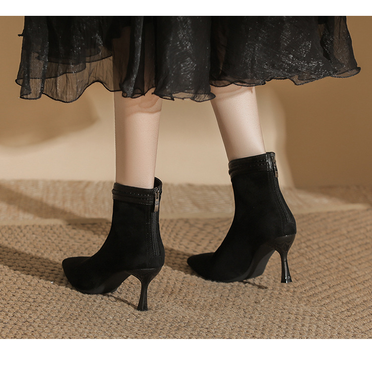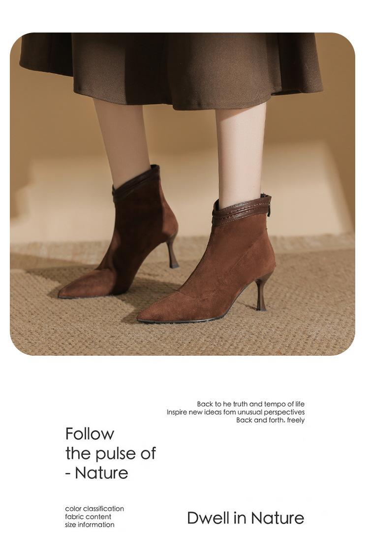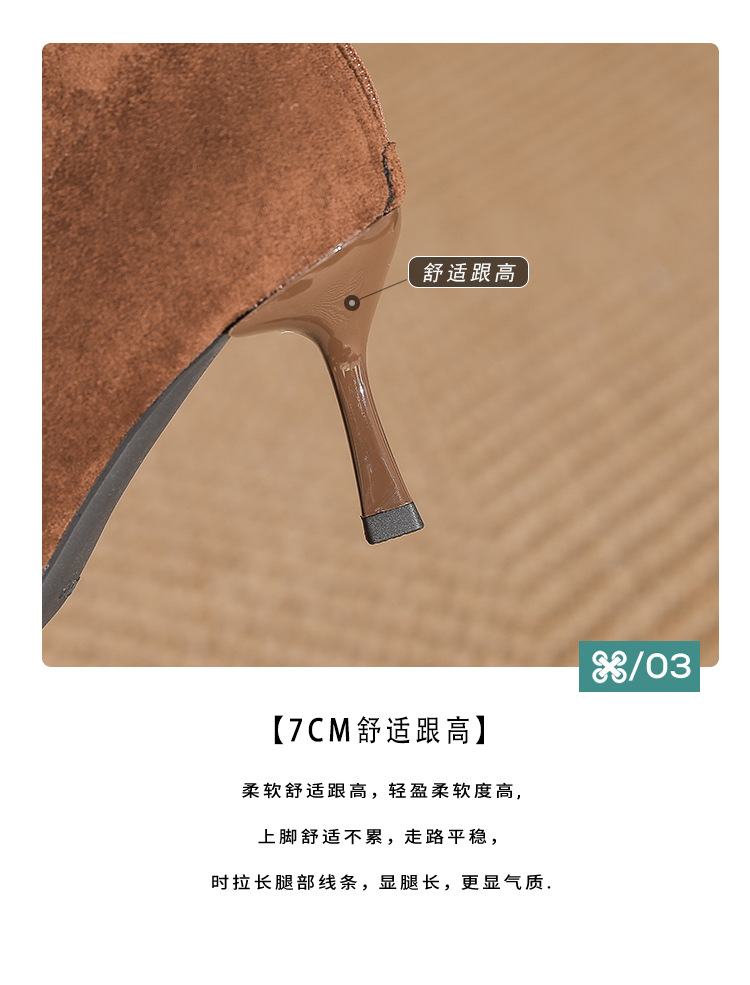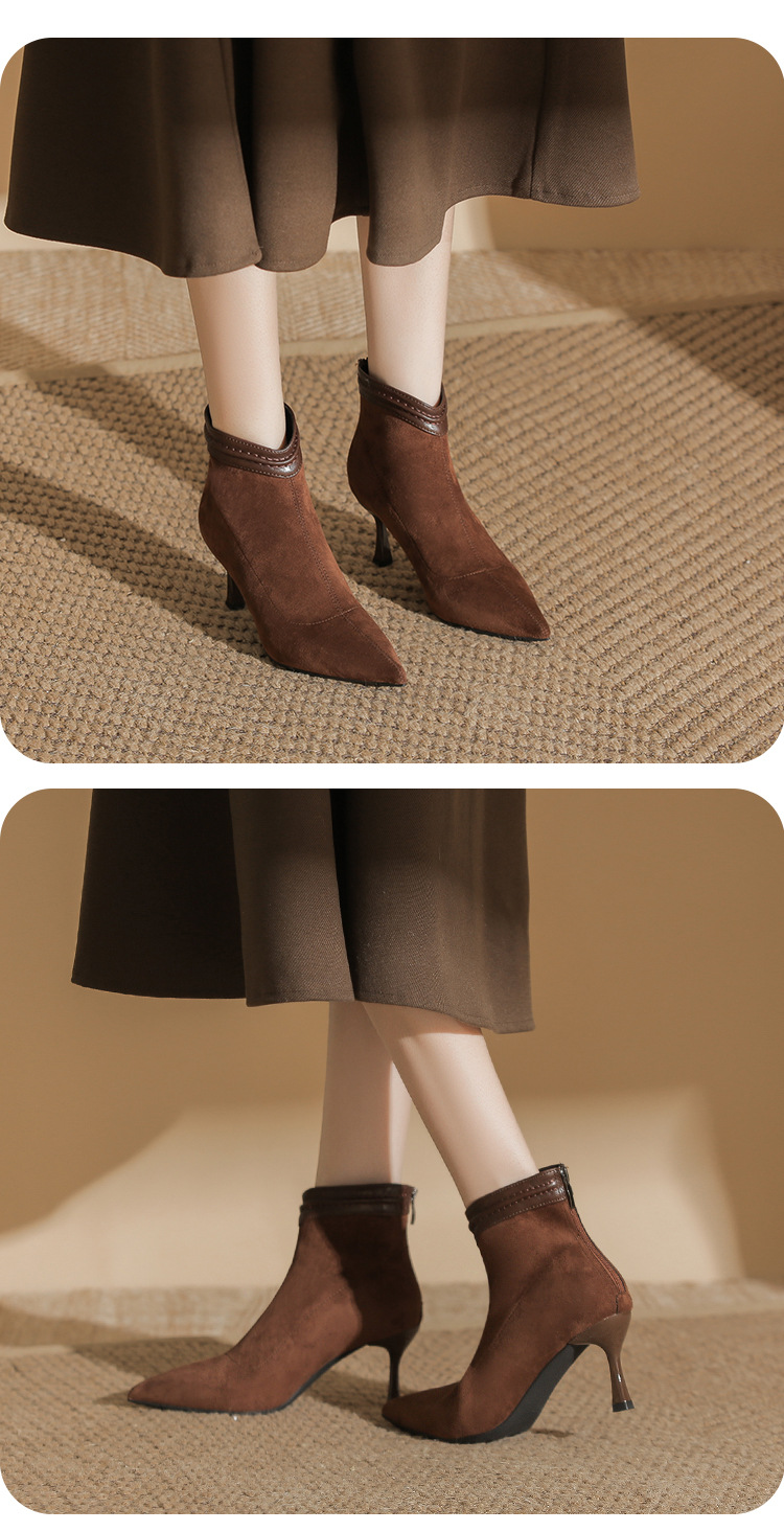 662 뾰족한 하이힐 부츠 여성 2024 새로운 겨울 스웨이드 얇은 힐 양말 부츠 다시 지퍼 탄성 얇은 부츠스토어 가기