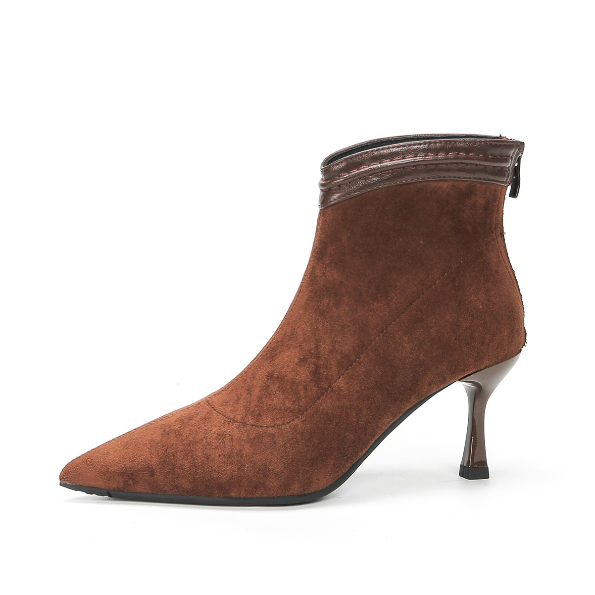 662 뾰족한 하이힐 부츠 여성 2024 새로운 겨울 스웨이드 얇은 힐 양말 부츠 다시 지퍼 탄성 얇은 부츠