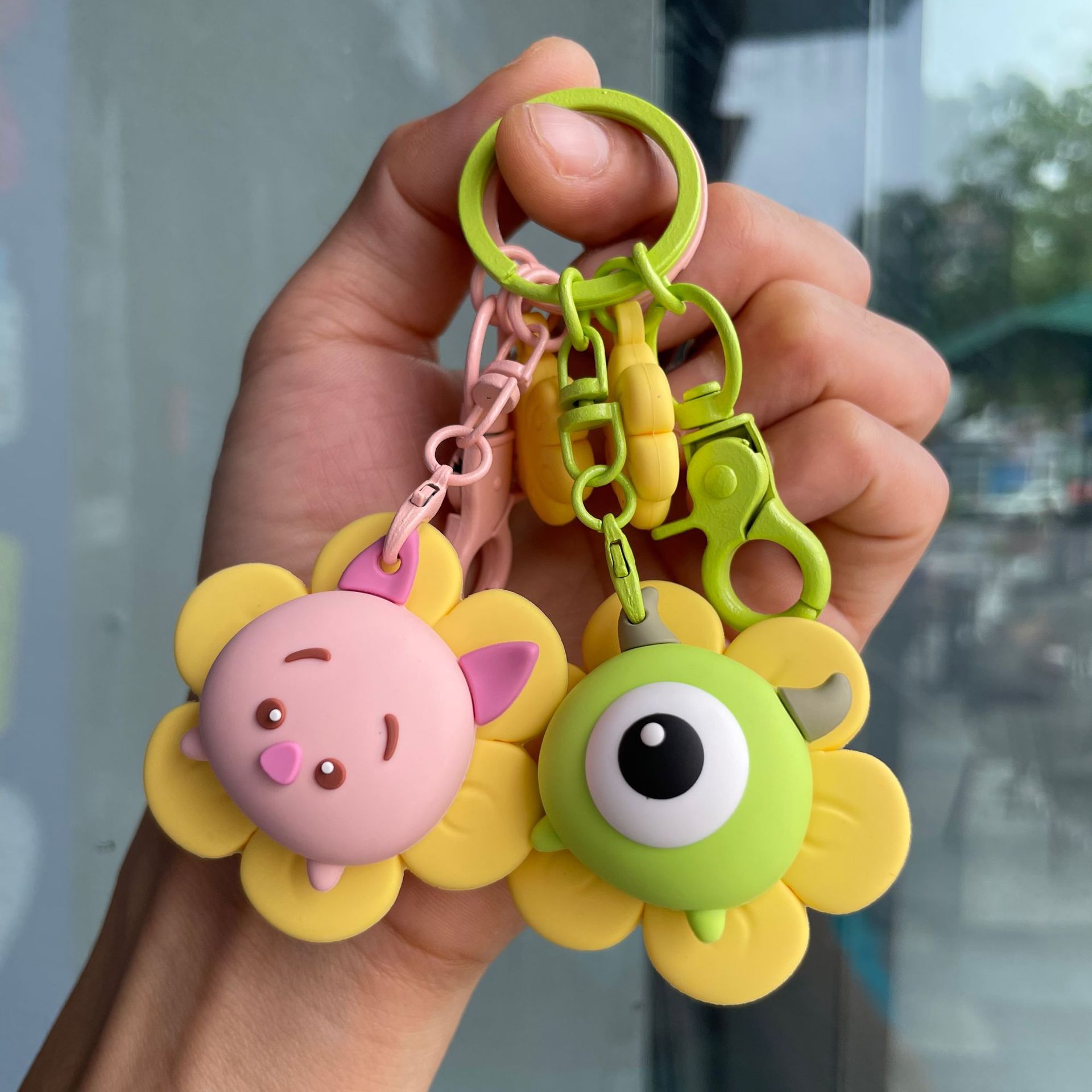 회전 해바라기 키 체인 귀여운 인형 가방 펜던트 자동차 키 체인 웃는 인형 도매스토어 가기