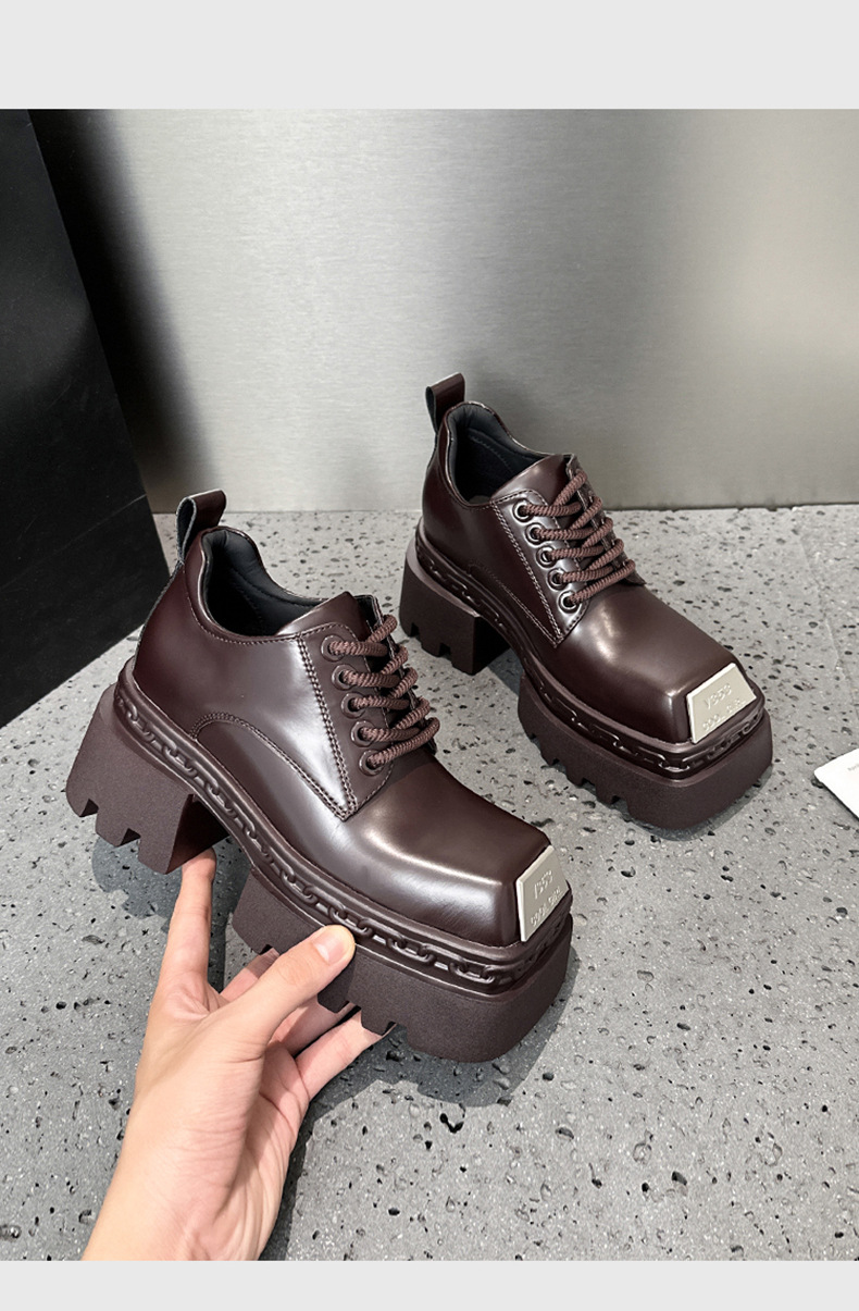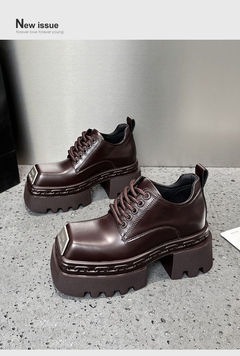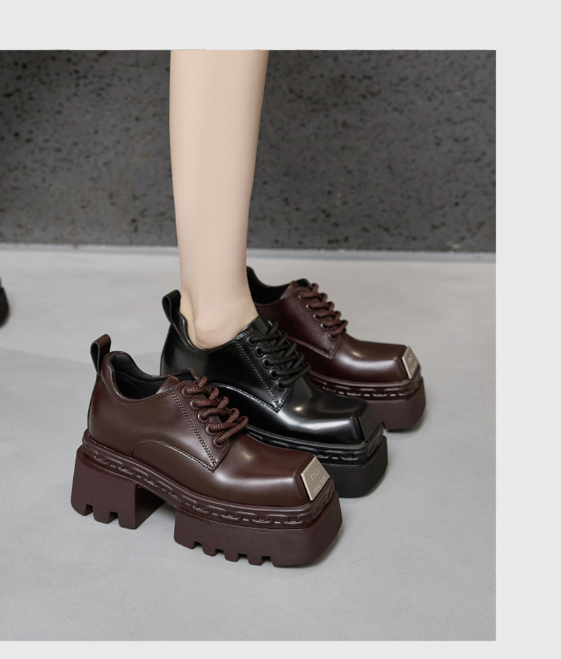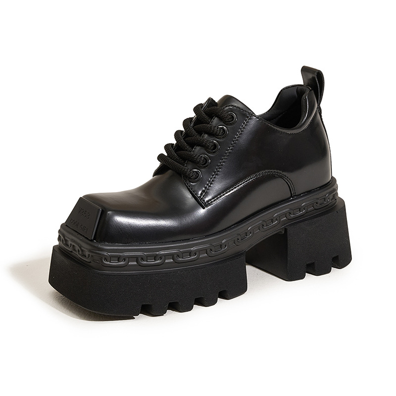 두꺼운 밑창 로퍼 여성용 2025년 가을 신상 키높이 여성화 다용도 두꺼운 굽 검정 영국 스타일 가죽 신발스토어 가기
