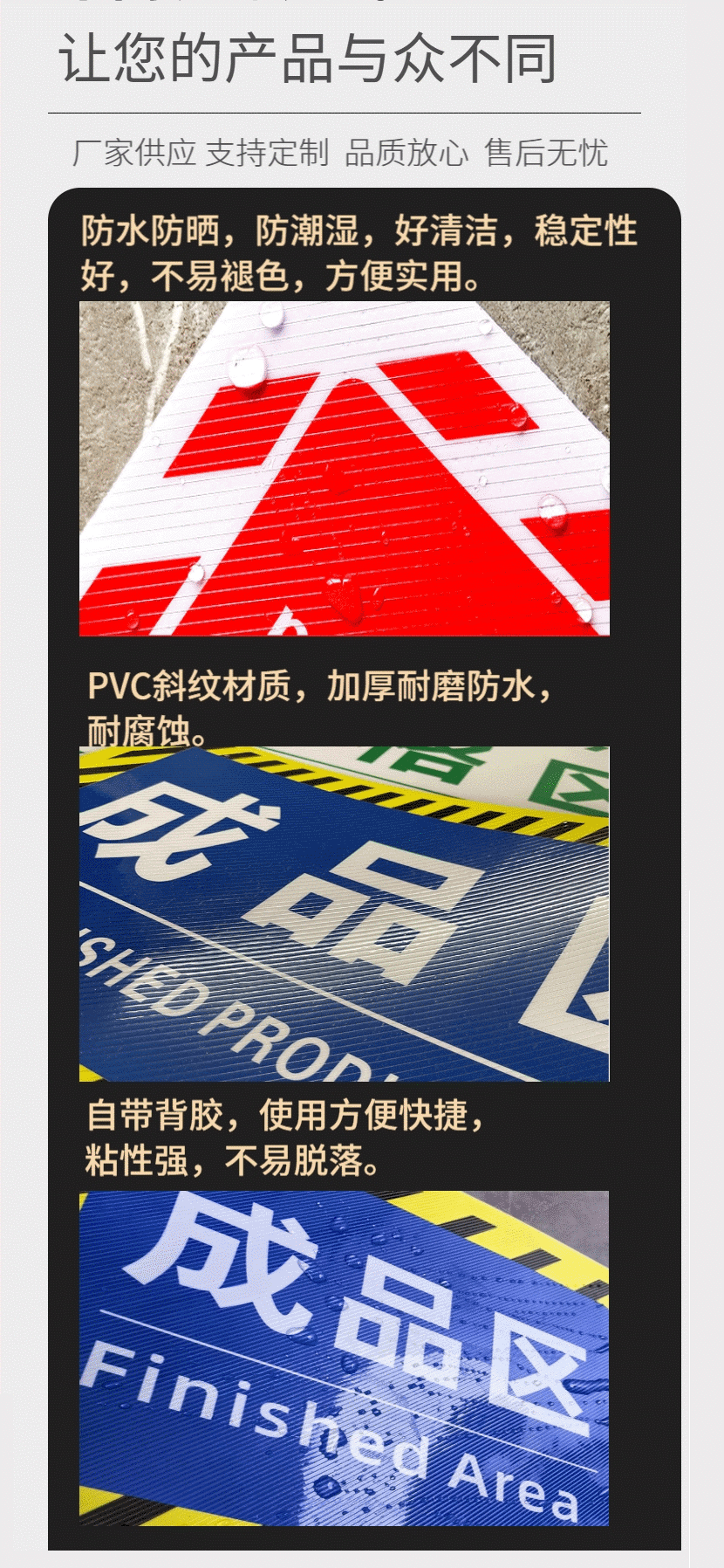 작업장 창고 구역 분할 표지판, 합격 구역, 완제품 구역, 바닥 표지 스티커, 보호 표지