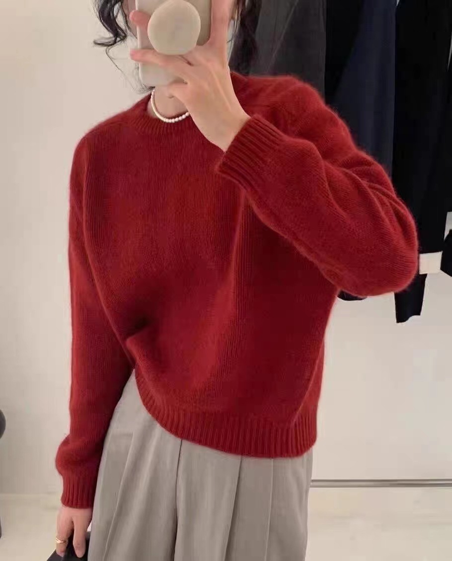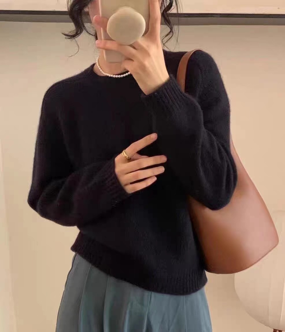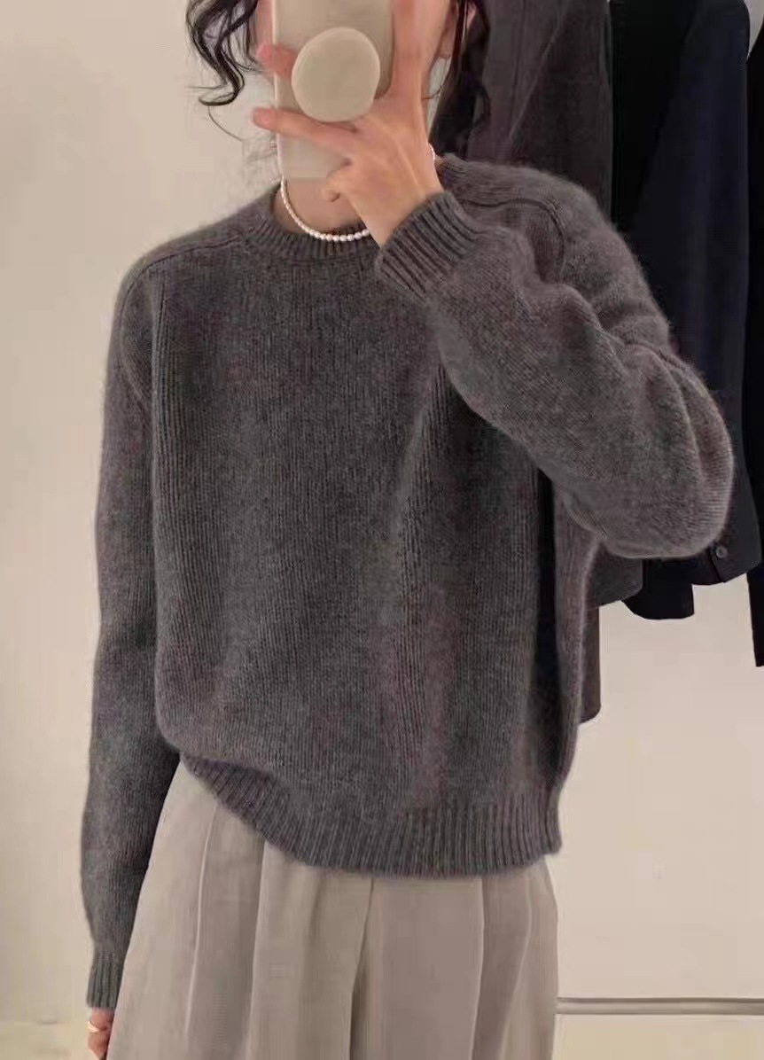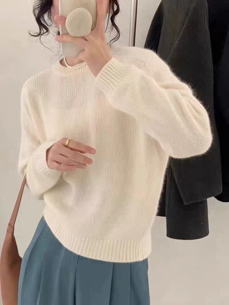 가을과 겨울 일본 스타일 두꺼운 통근 느슨한 크루 넥 풀오버 100 양모 스웨터 어깨 소매 여성용 내부 니트스토어 가기