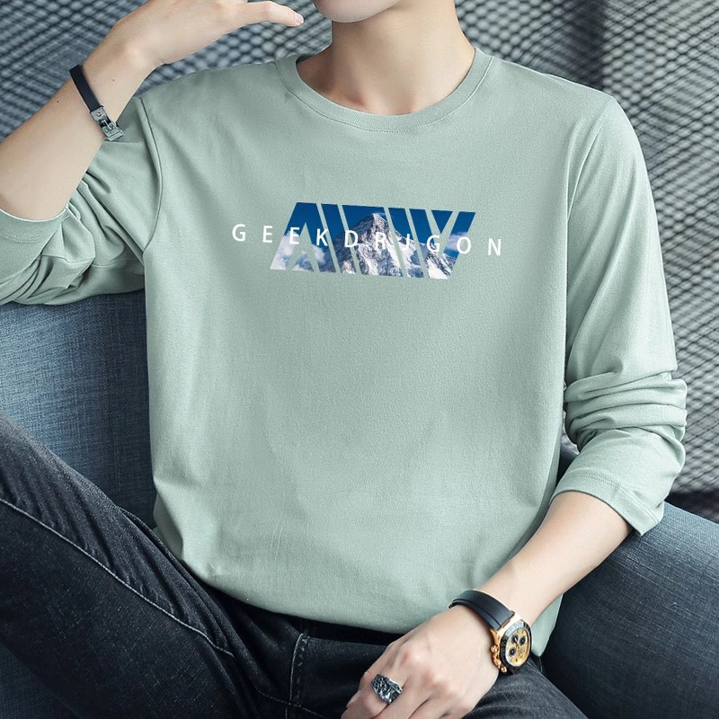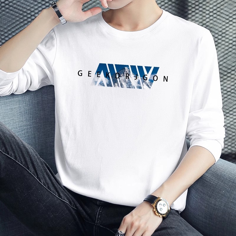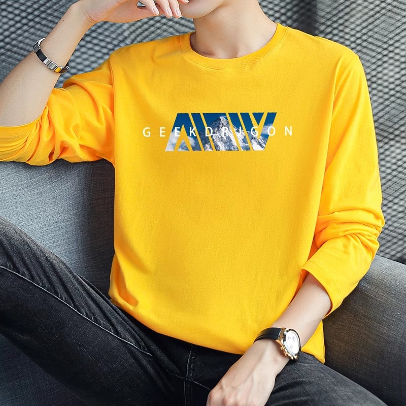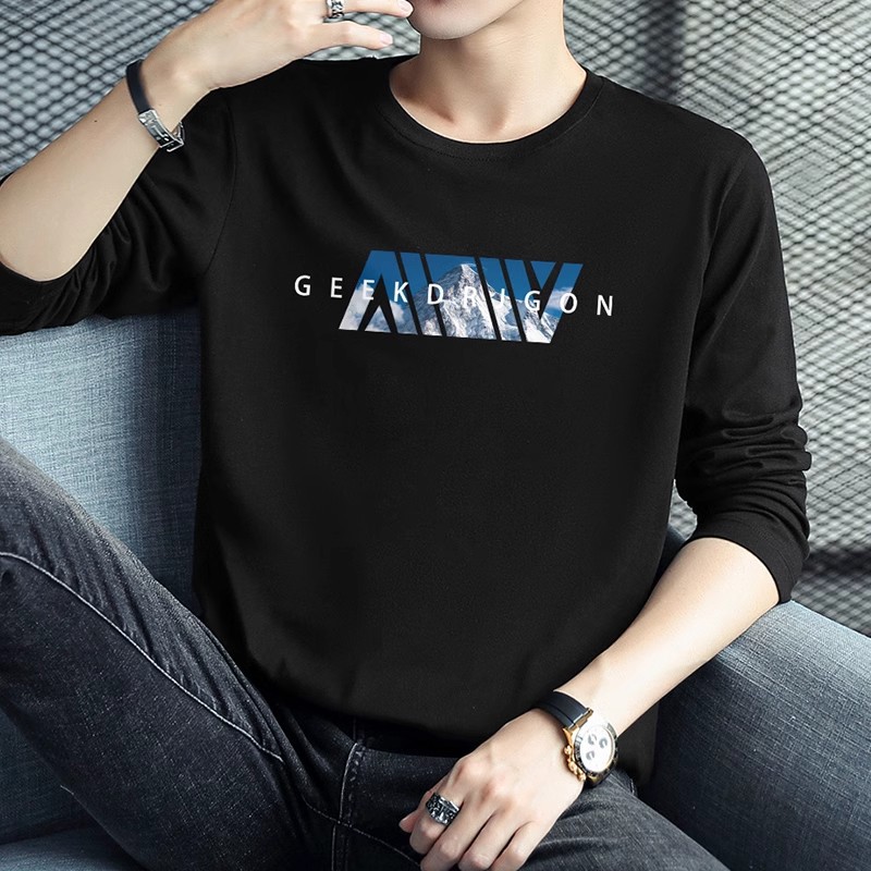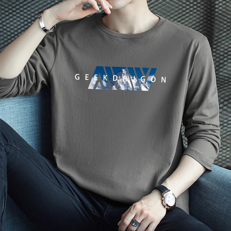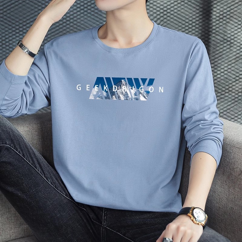 가을 새로운 긴팔 티셔츠 남성 패션 라운드 넥 슬림 핏 티셔츠 내복 학생 가을베이스 셔츠스토어 가기