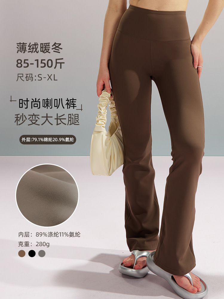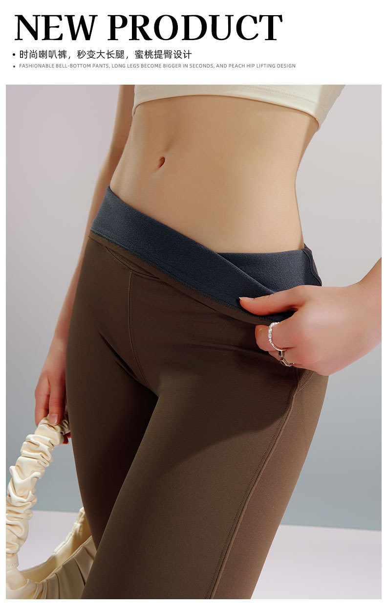 가을 겨울 여성용 요가 팬츠, 따뜻하고 벨벳, 약간 플레어, 뱃살 조절, 슬리밍, 엉덩이 리프팅, 두꺼운 이중 시 바지, 피트니스 하이웨이스트