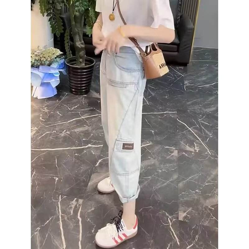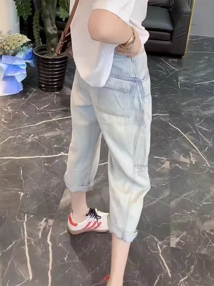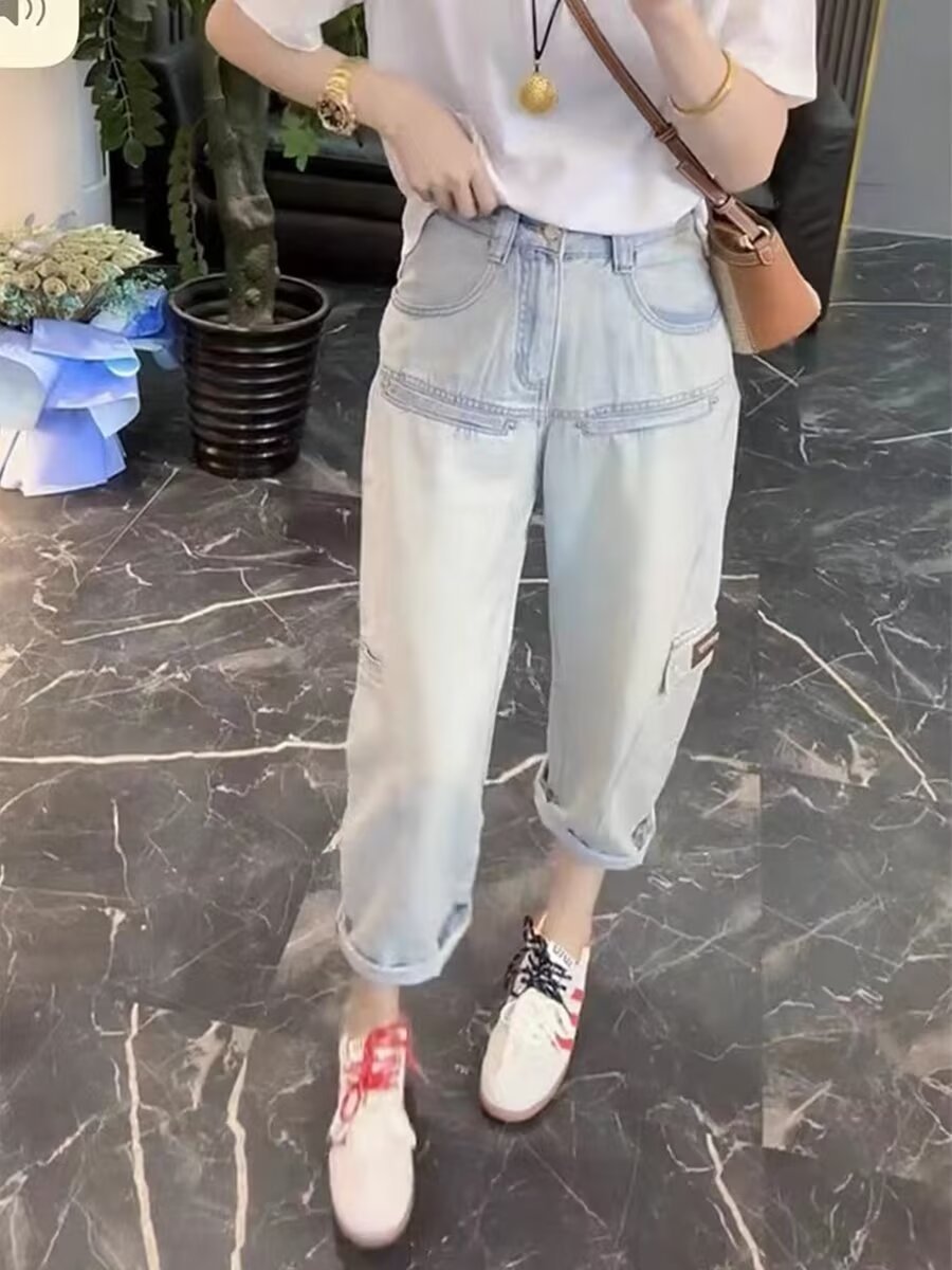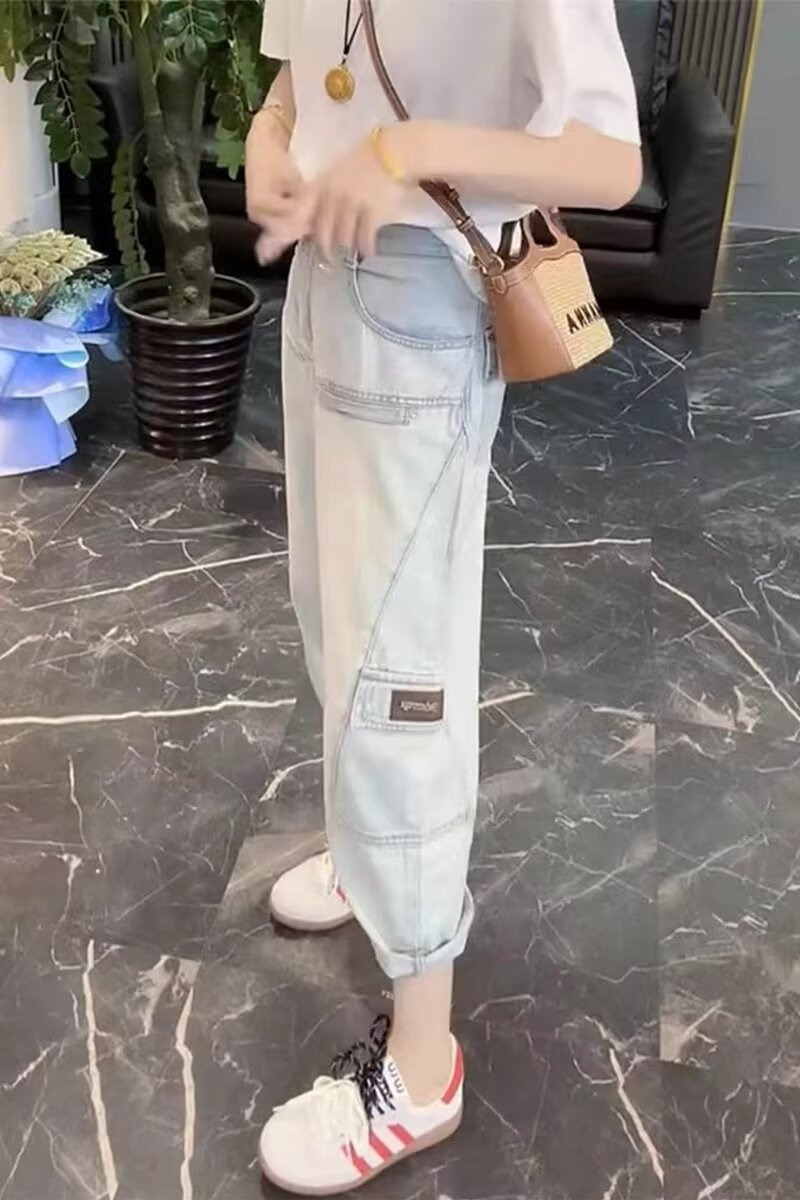 통통녀 스트레이트 레그 청바지 여성의 새로운 슬림 룩 하렘 바지 플러스 사이즈 느슨한 자른 무 아빠 넓은 다리 바지 트렌디스토어 가기