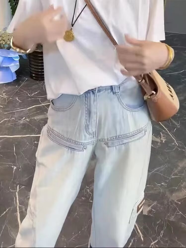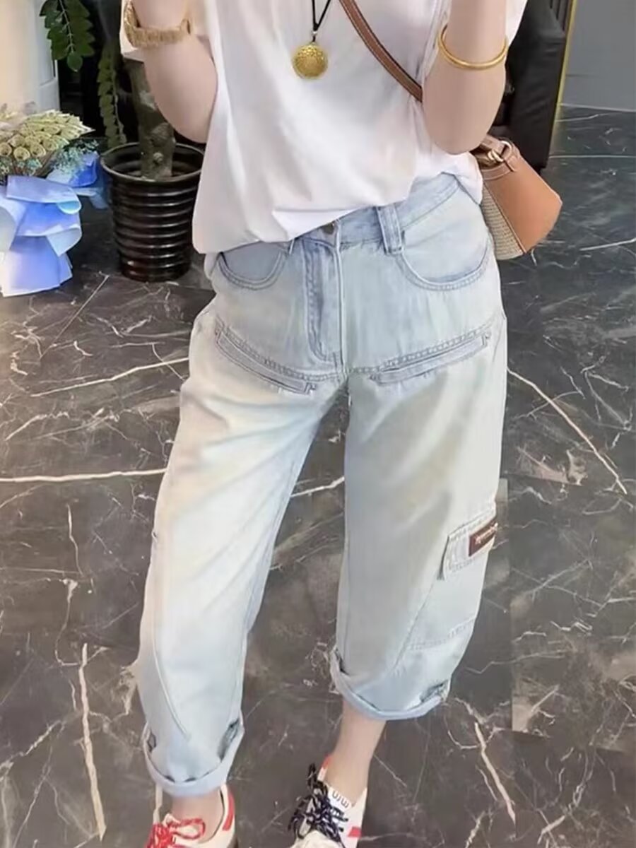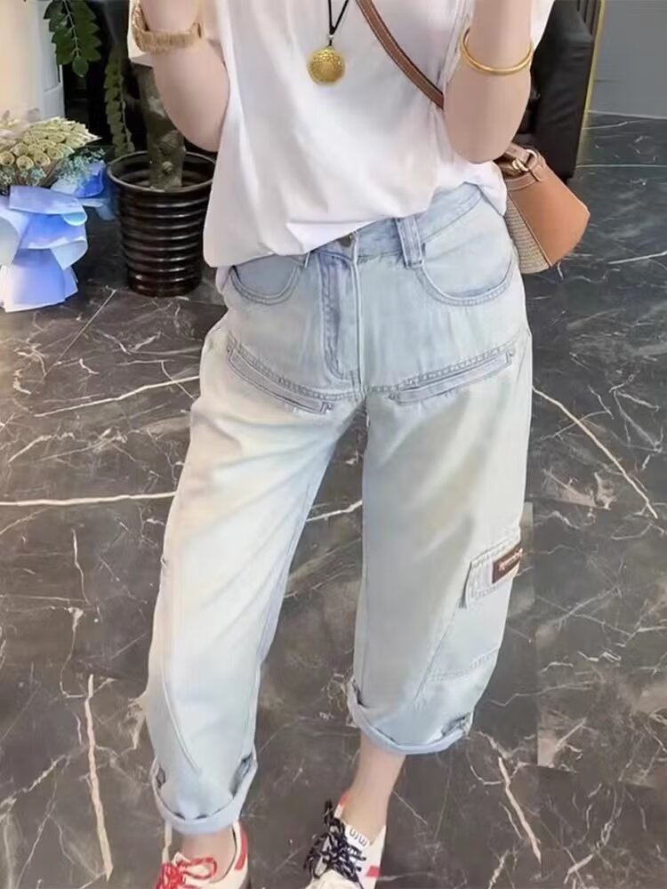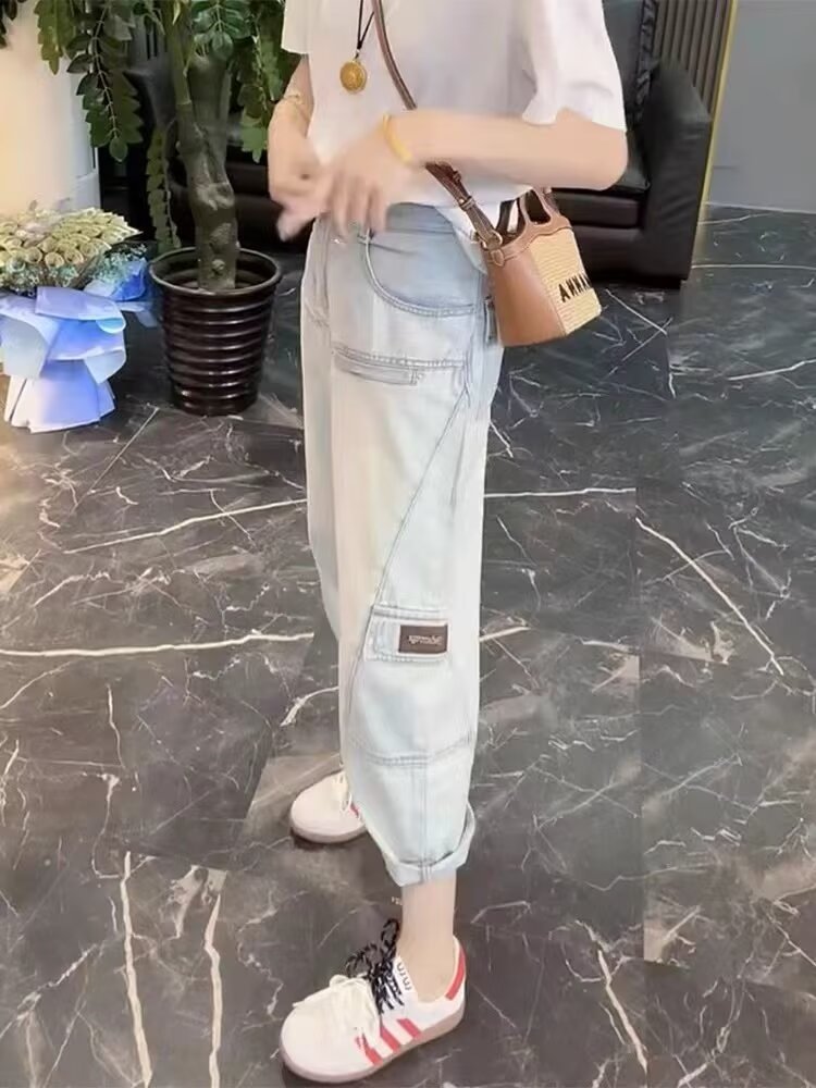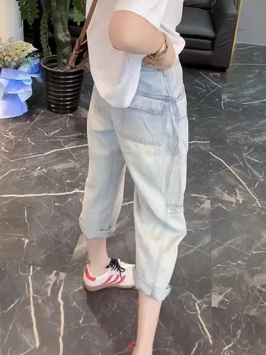 통통녀 스트레이트 레그 청바지 여성의 새로운 슬림 룩 하렘 바지 플러스 사이즈 느슨한 자른 무 아빠 넓은 다리 바지 트렌디스토어 가기