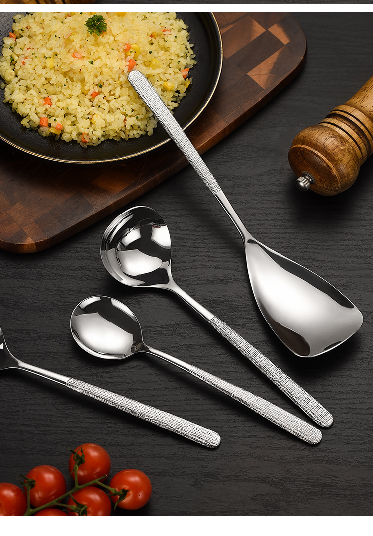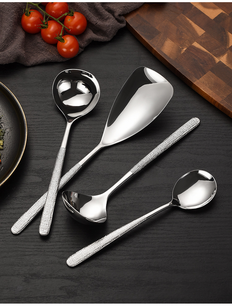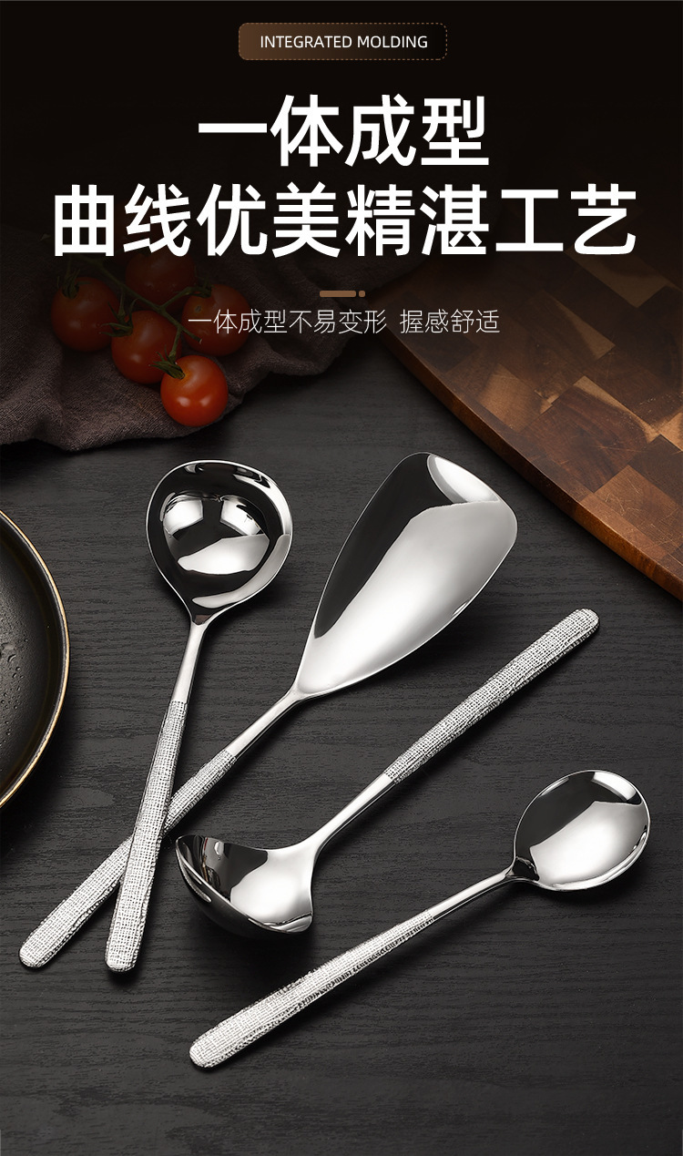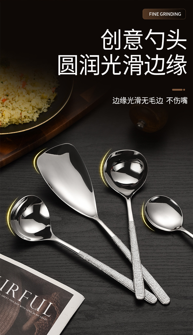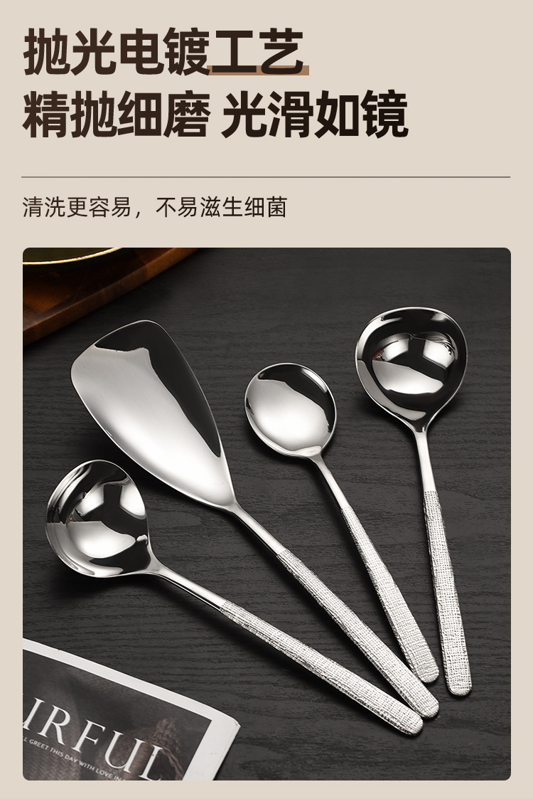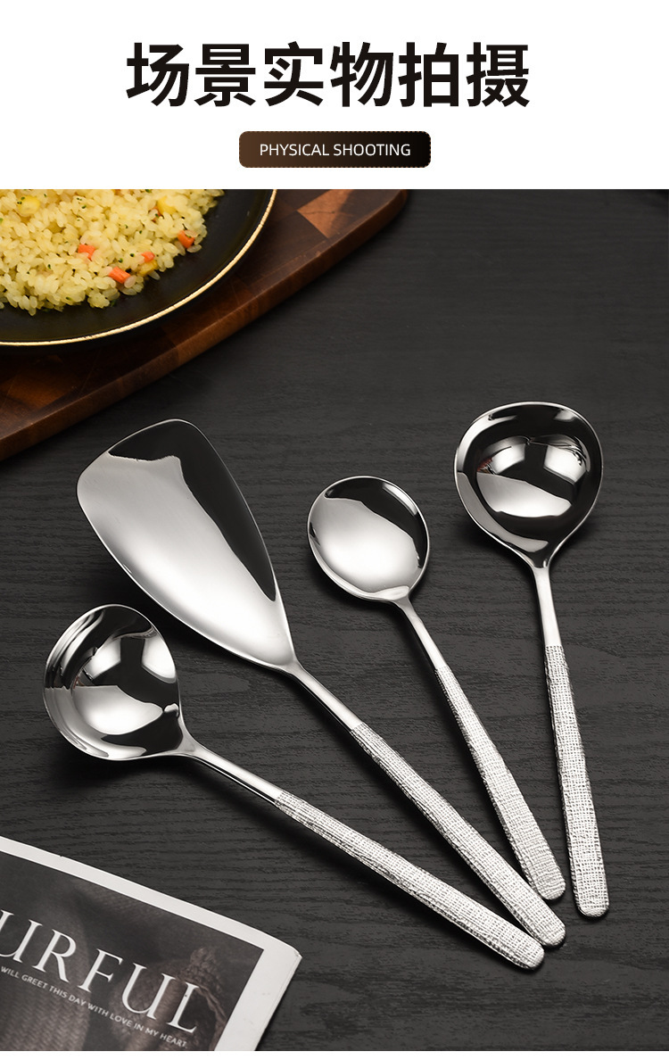 304 스테인레스 스틸 해머 패턴 한국식 숟가락 공장 서양식 긴 손잡이 접시 숟가락 가정용 둥근 머리 숟가락 먹는 숟가락 뜨거운 냄비 숟가락