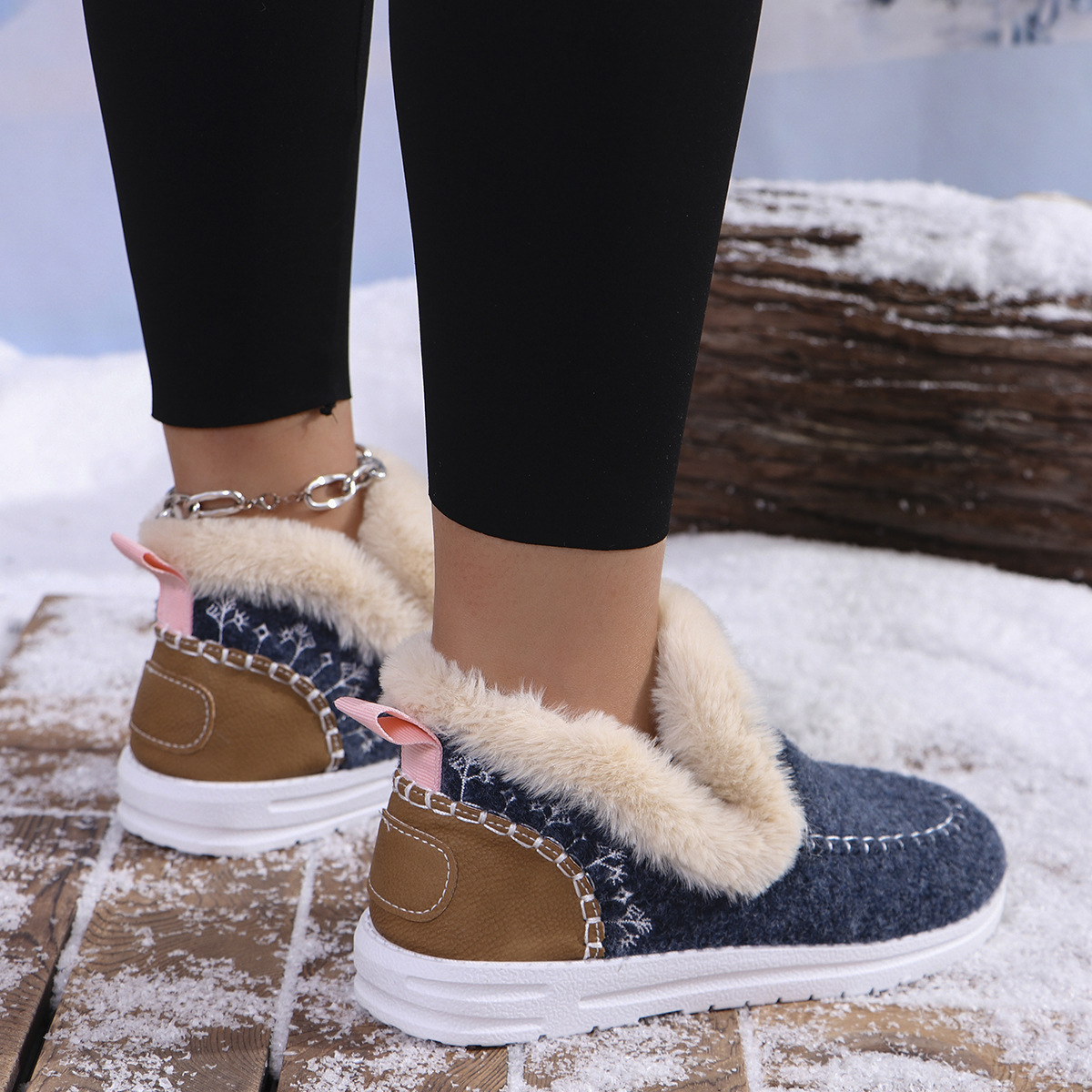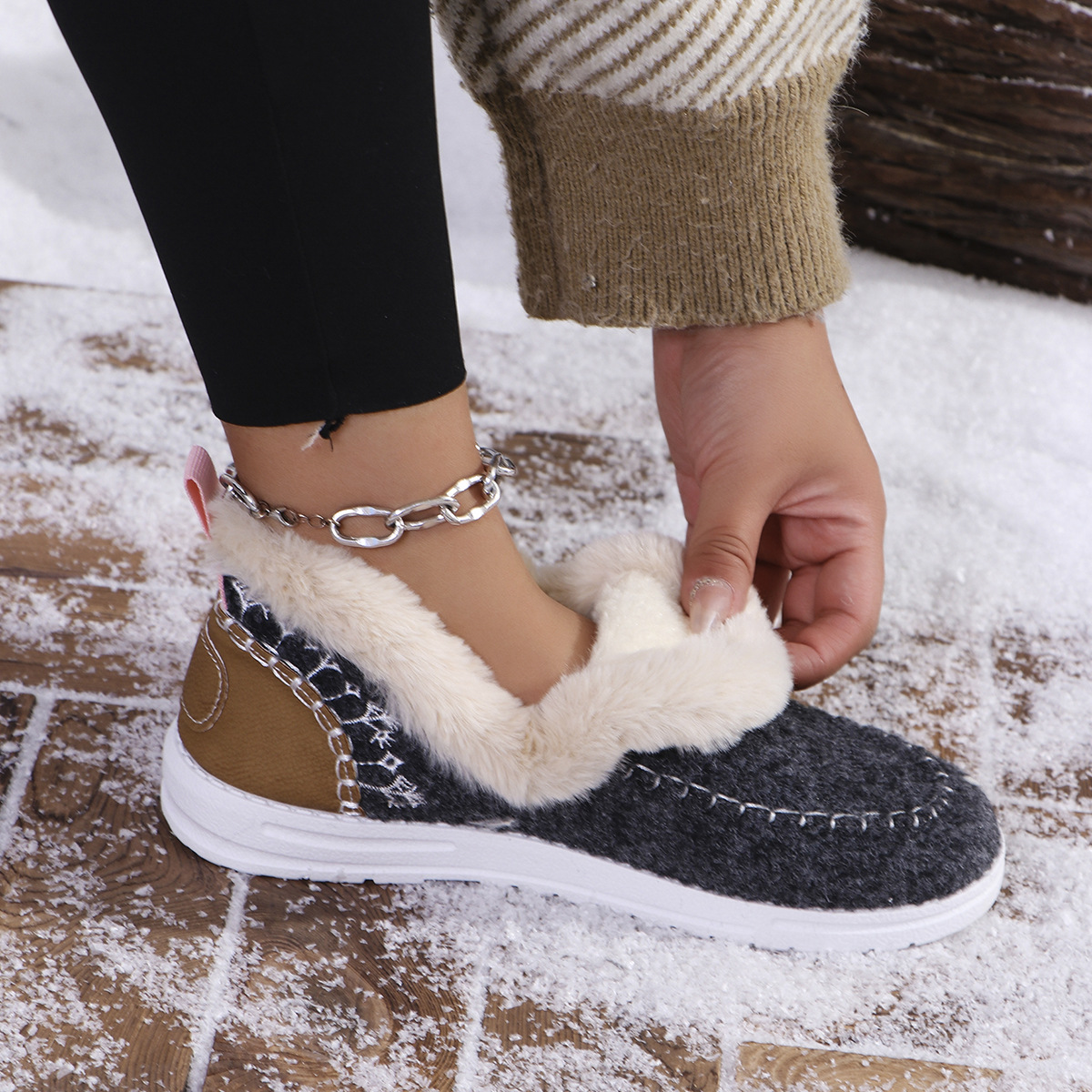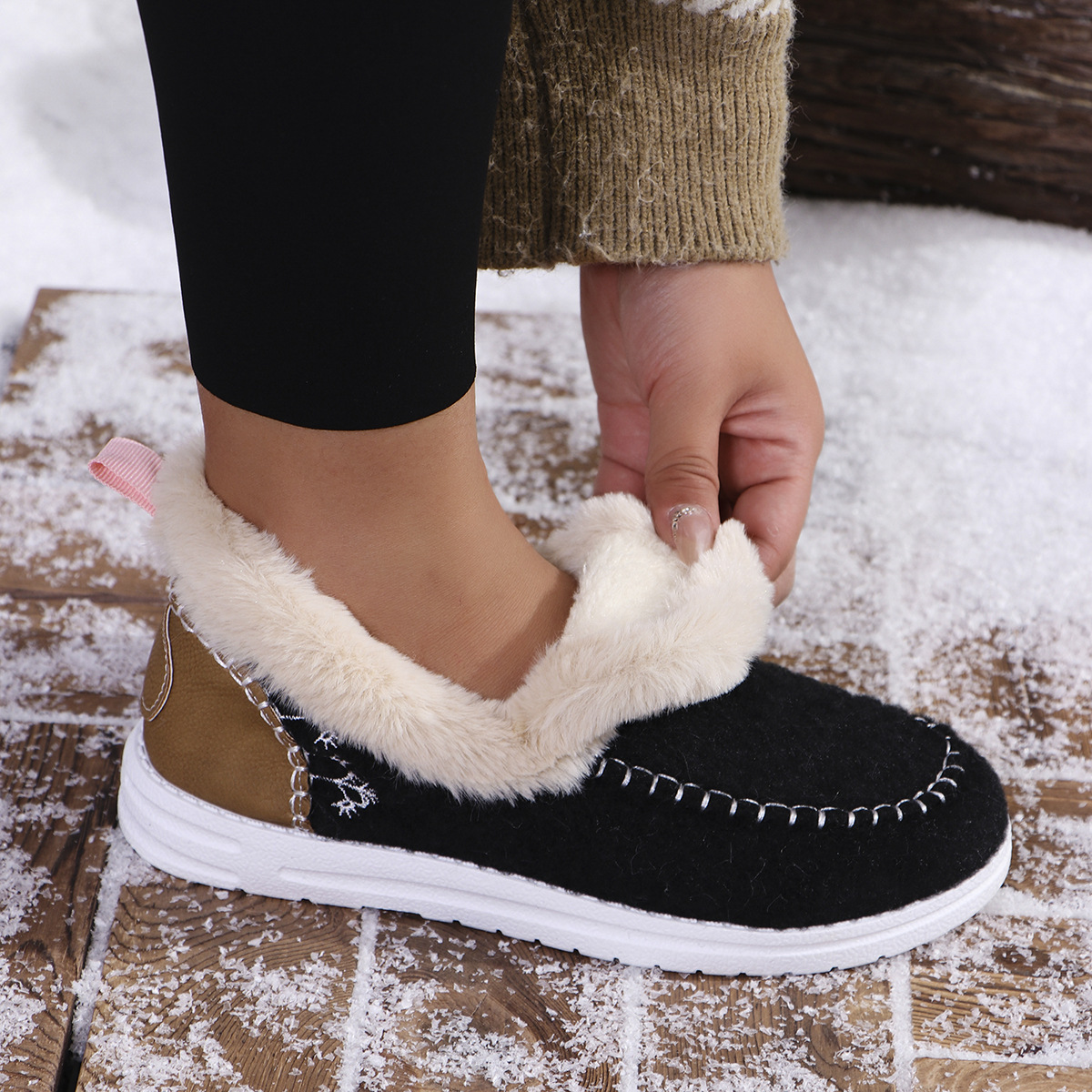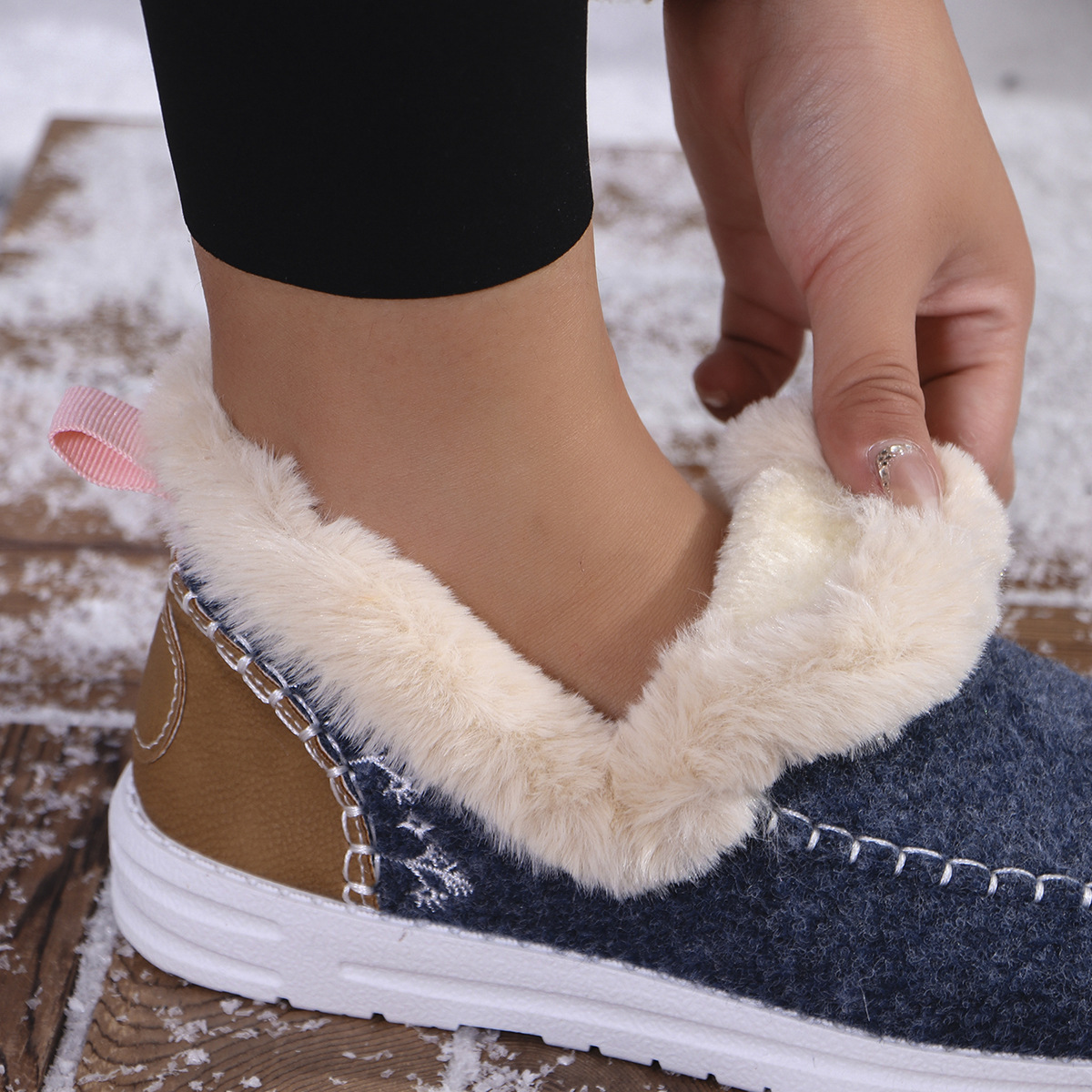 국경 간 대외 무역 플러스 사이즈 면화 신발 여성의 가을 2024 새로운 유럽과 미국의 헤어 터닝 홈 따뜻한 여성 신발 43 야드 소원스토어 가기