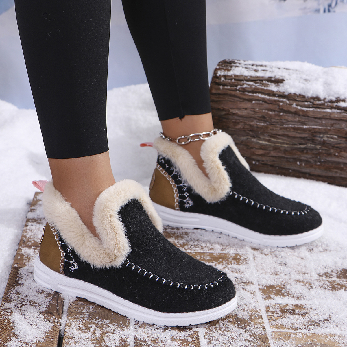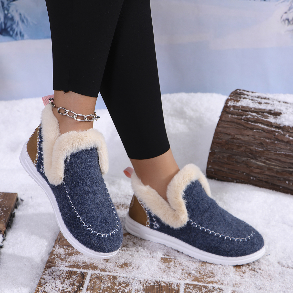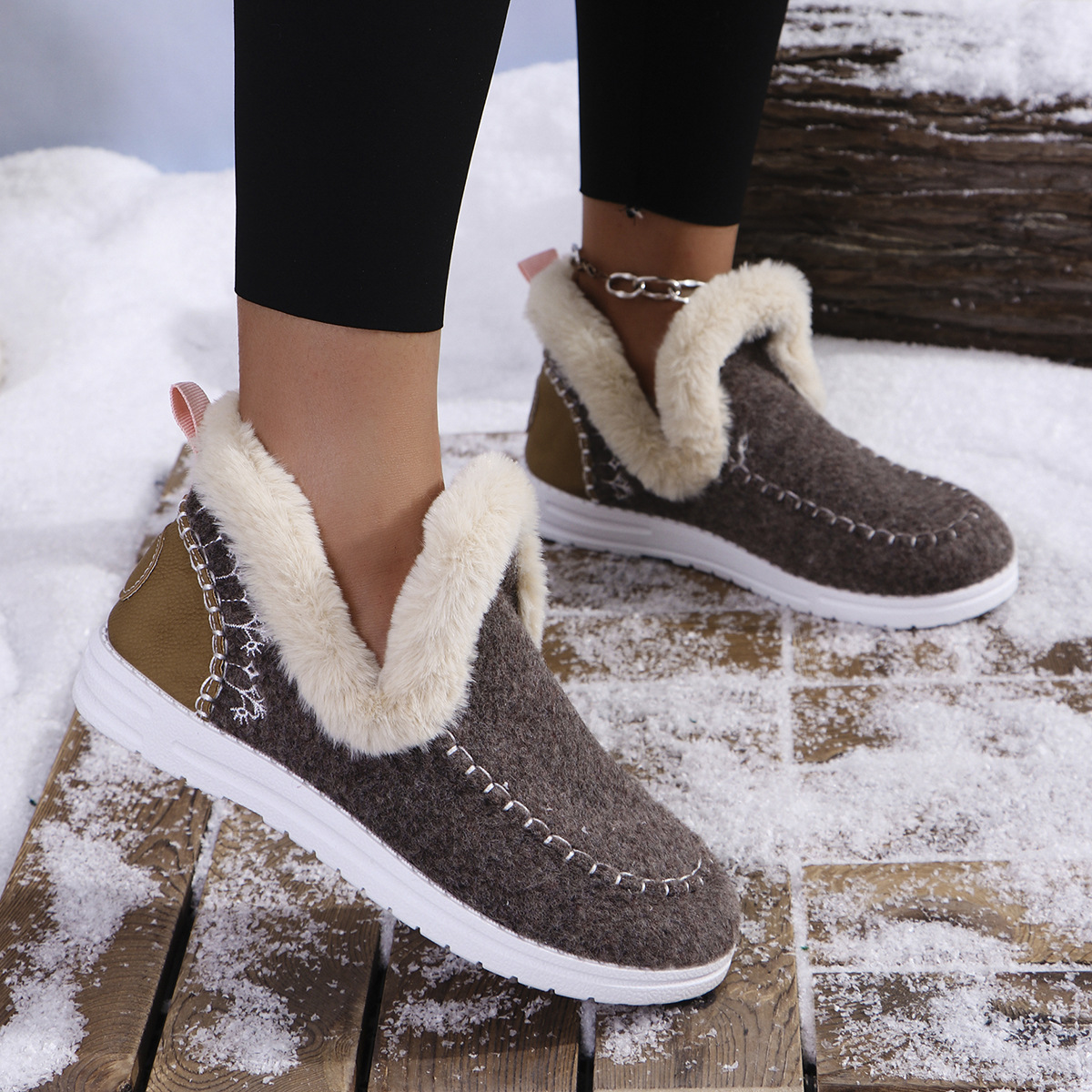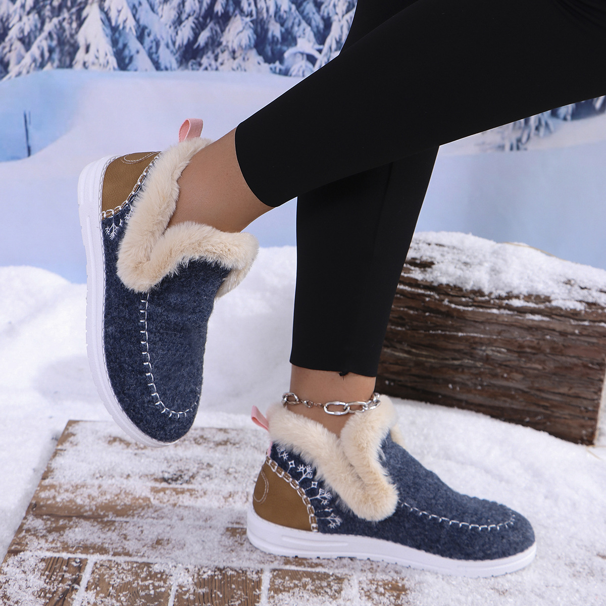 국경 간 대외 무역 플러스 사이즈 면화 신발 여성의 가을 2024 새로운 유럽과 미국의 헤어 터닝 홈 따뜻한 여성 신발 43 야드 소원스토어 가기