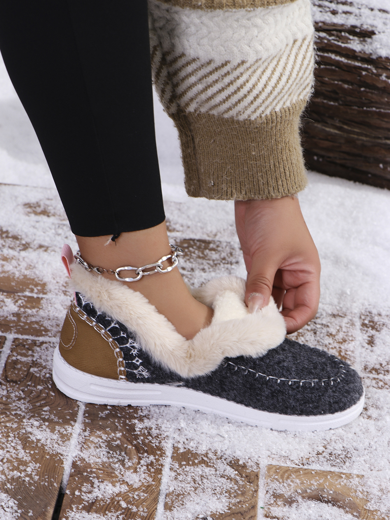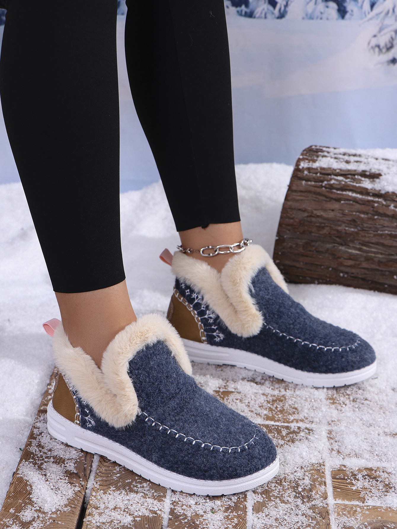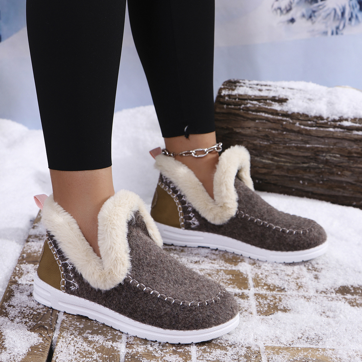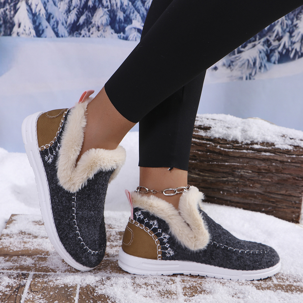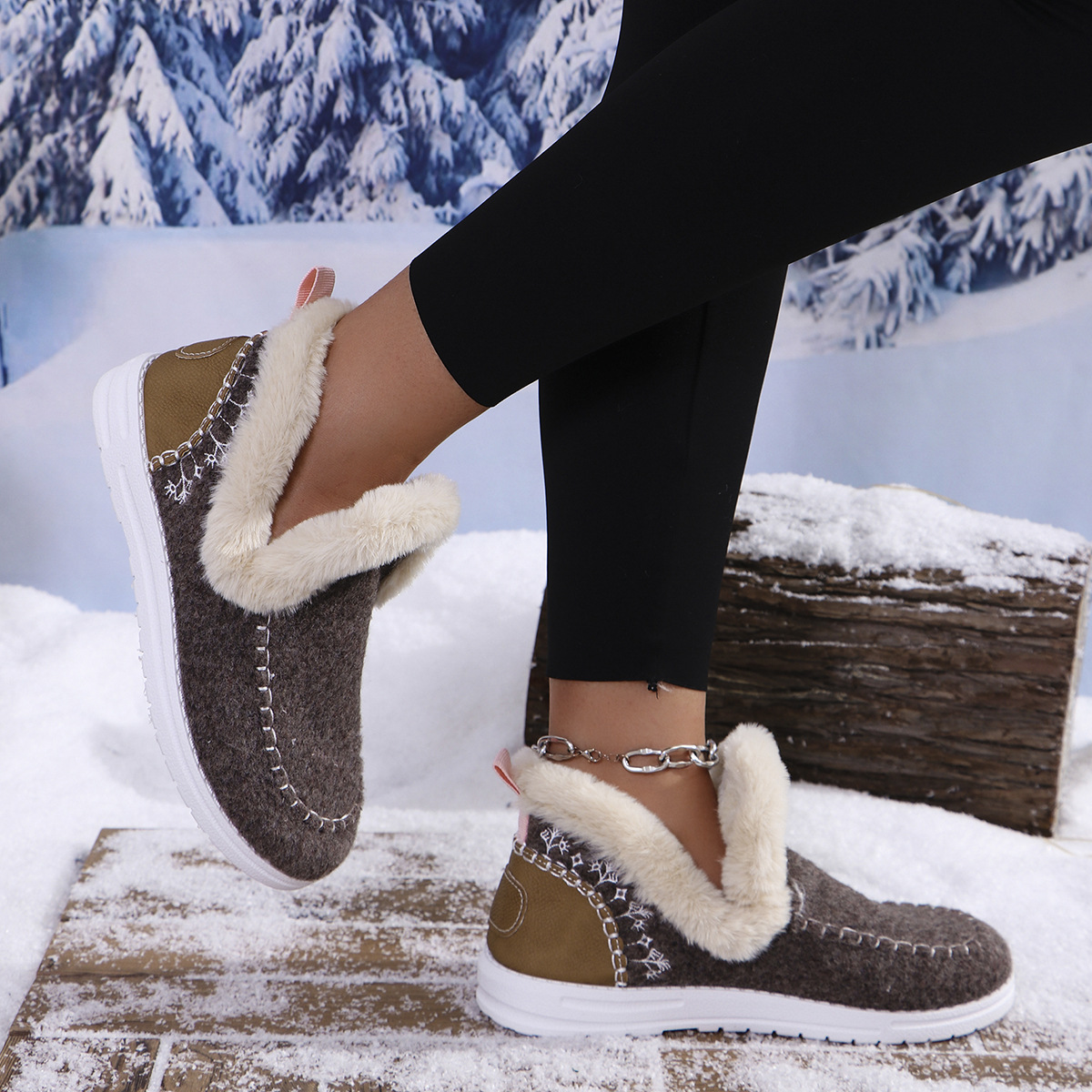 국경 간 대외 무역 플러스 사이즈 면화 신발 여성의 가을 2024 새로운 유럽과 미국의 헤어 터닝 홈 따뜻한 여성 신발 43 야드 소원스토어 가기