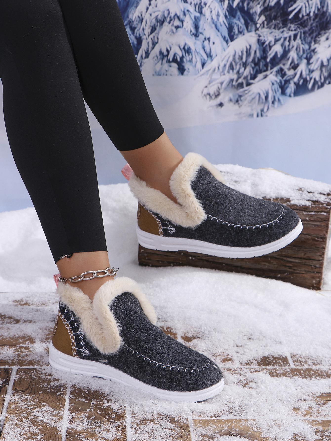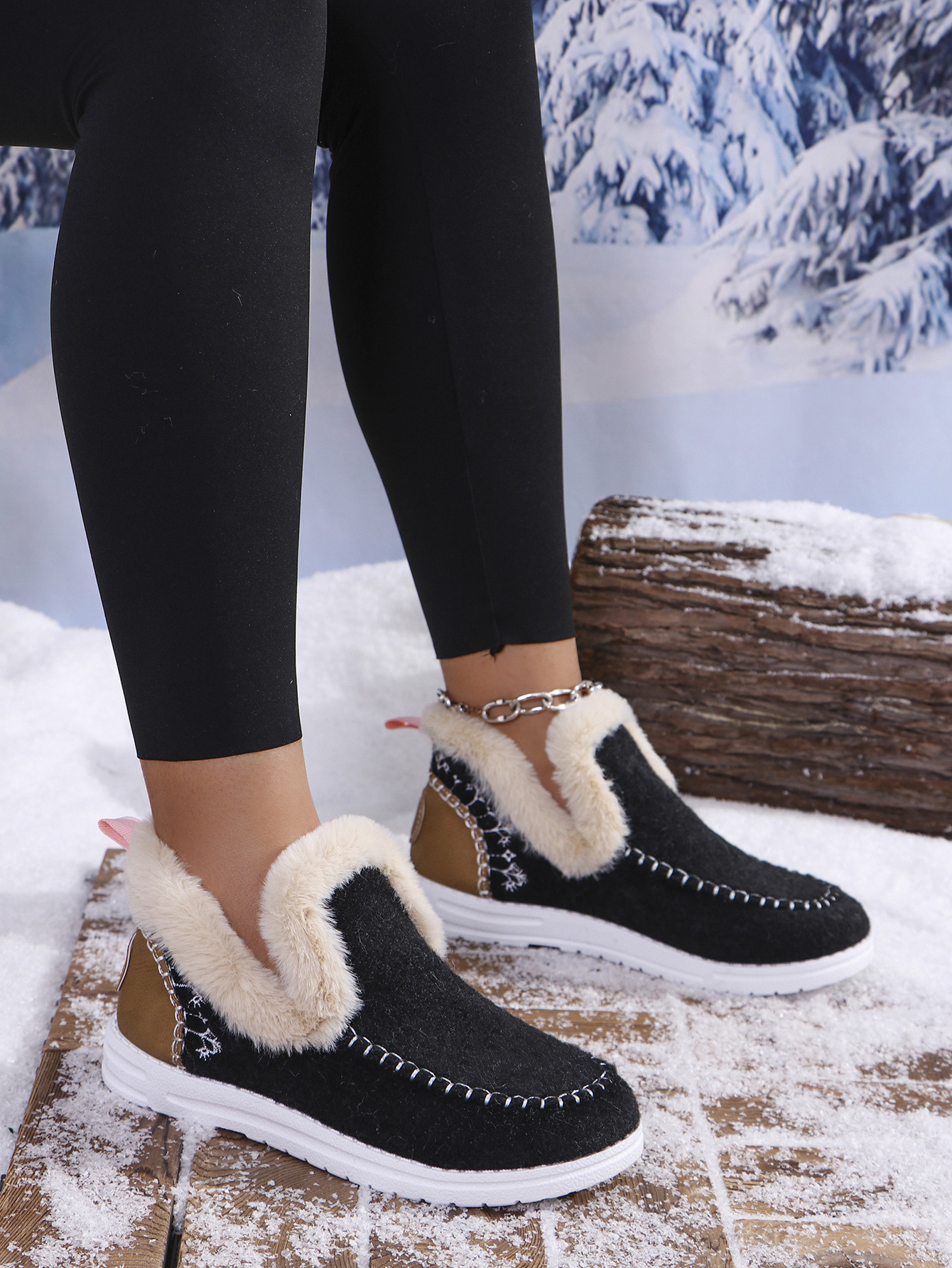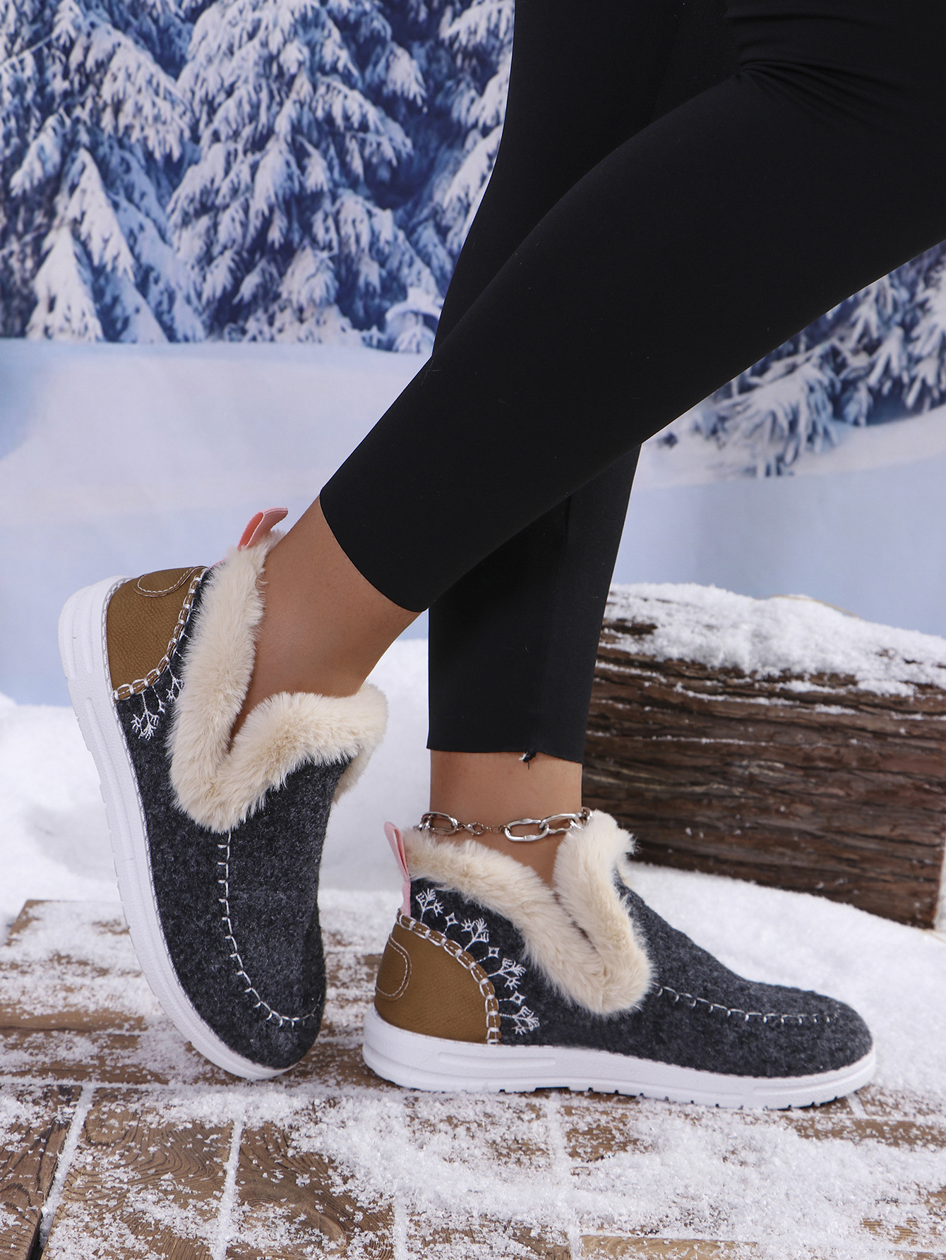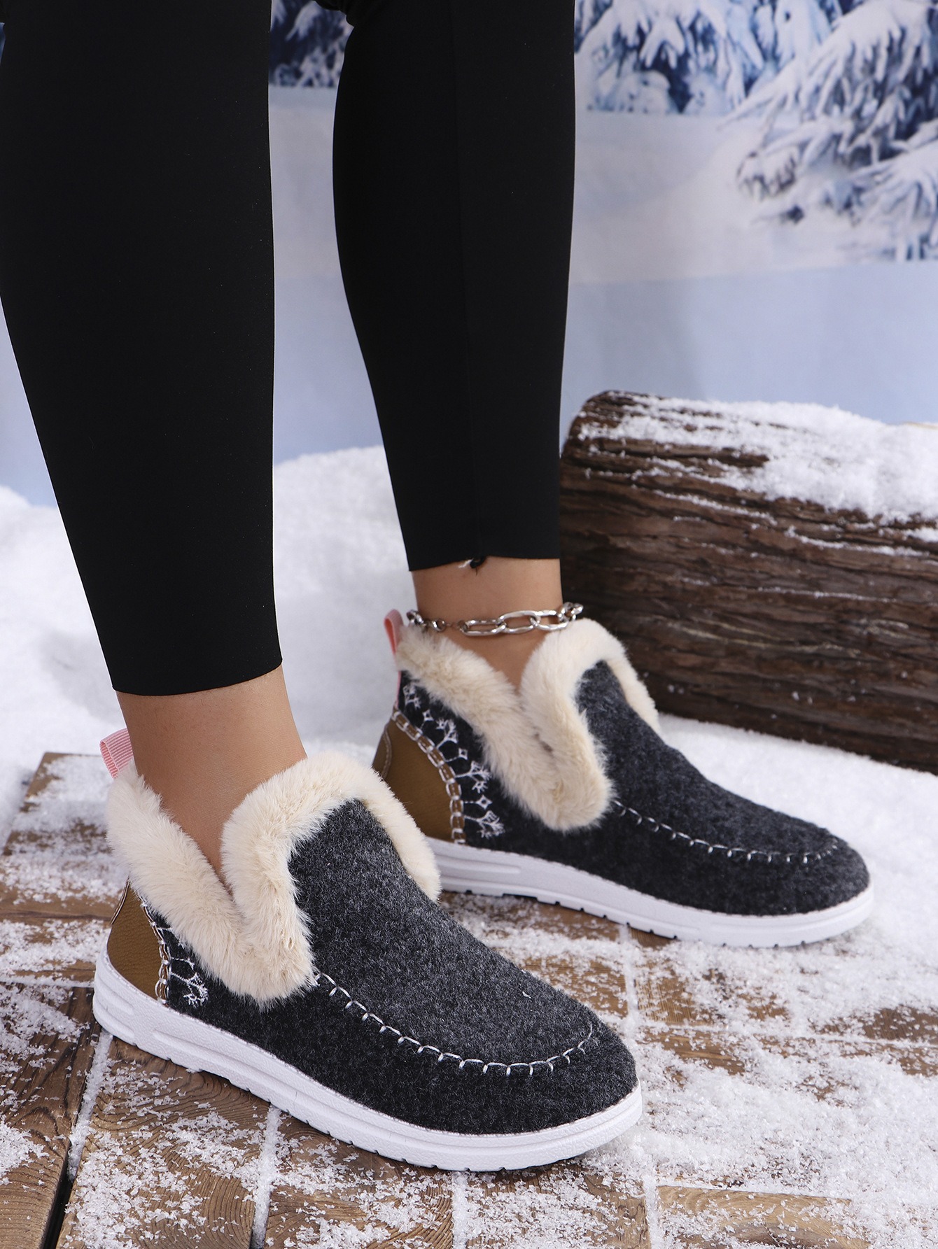 국경 간 대외 무역 플러스 사이즈 면화 신발 여성의 가을 2024 새로운 유럽과 미국의 헤어 터닝 홈 따뜻한 여성 신발 43 야드 소원스토어 가기