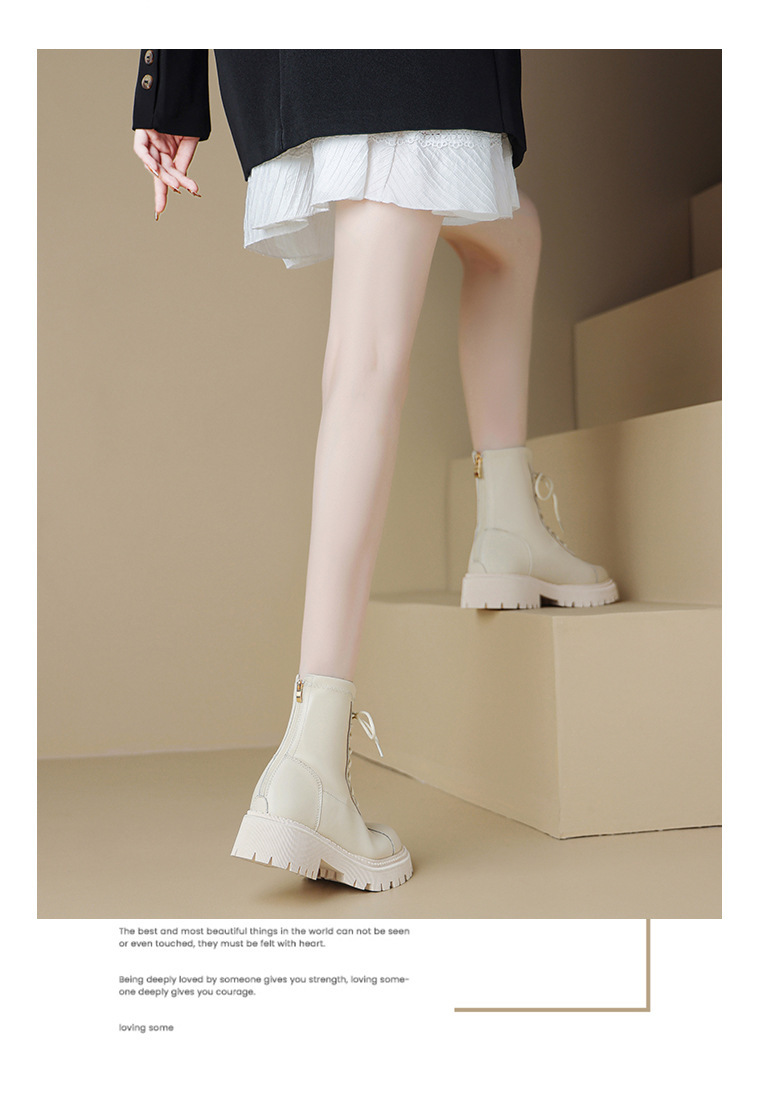 가을 겨울 작업 여성을 위한 레이스업 8홀 마틴 부츠, 얇은 두꺼운 밑창, 작은 사람들을 위한 내부 높이 증가, 슬리밍 로우 숏부츠스토어 가기