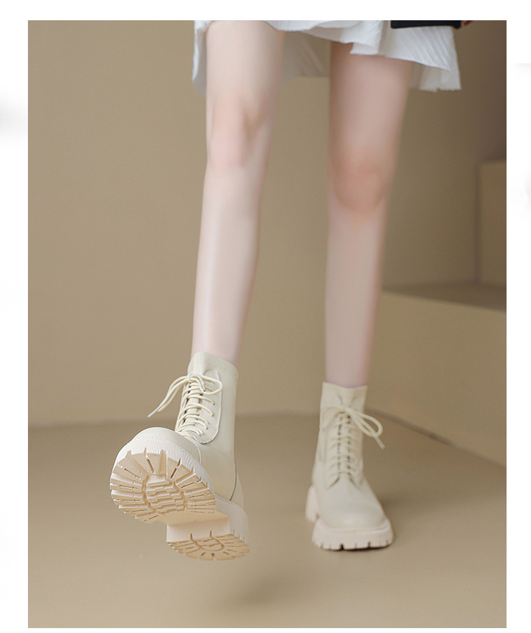 가을 겨울 작업 여성을 위한 레이스업 8홀 마틴 부츠, 얇은 두꺼운 밑창, 작은 사람들을 위한 내부 높이 증가, 슬리밍 로우 숏부츠