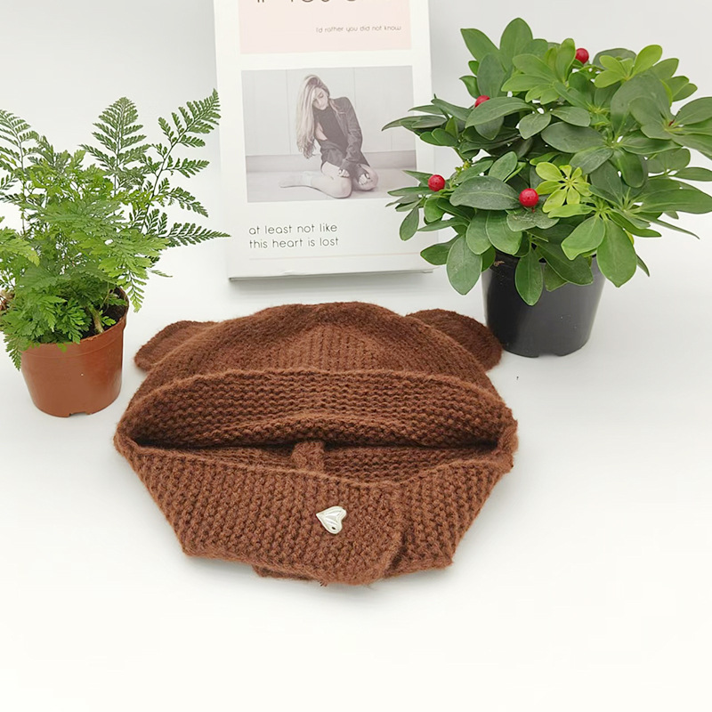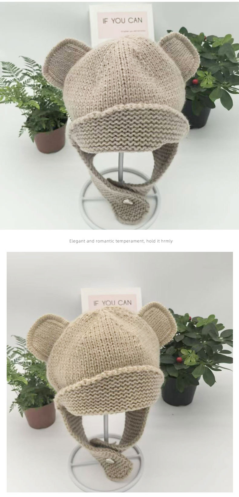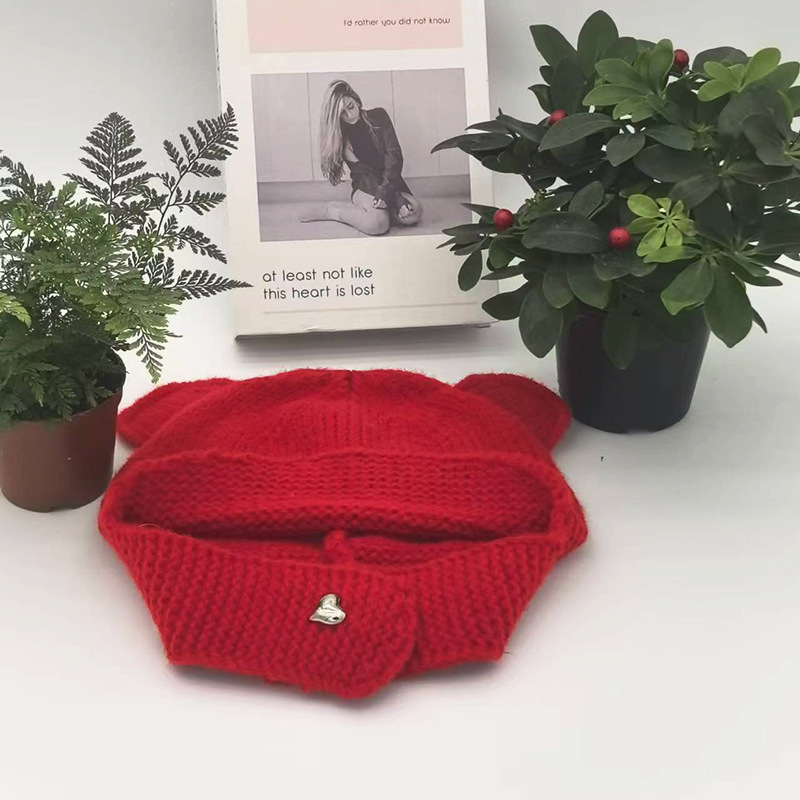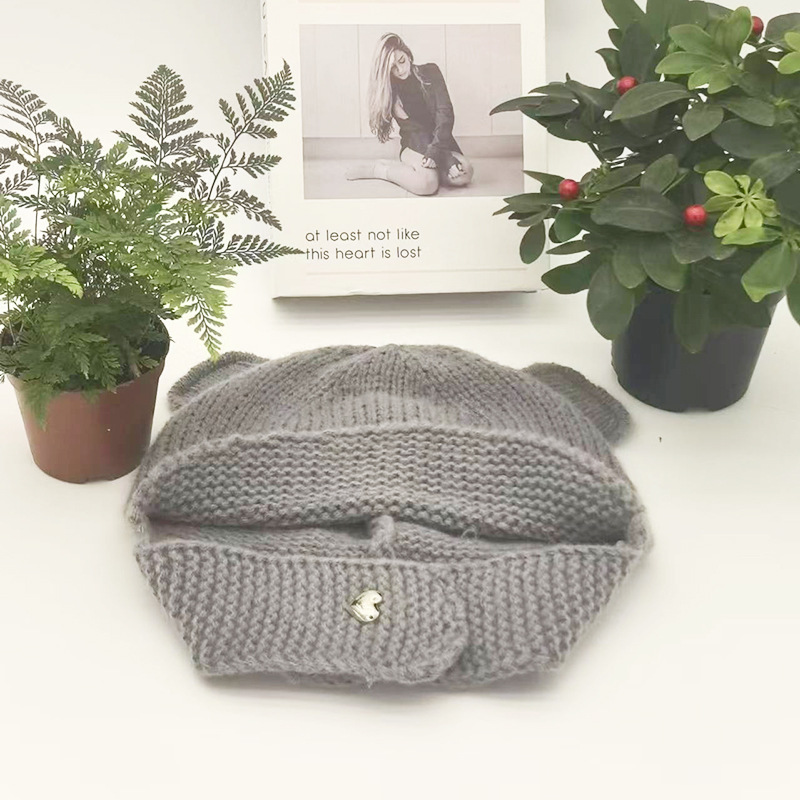 귀여운 입체 곰 귀 모직 여성 따뜻한 니트 차가운 목 귀 모자의 공장 재고 한국어 버전스토어 가기
