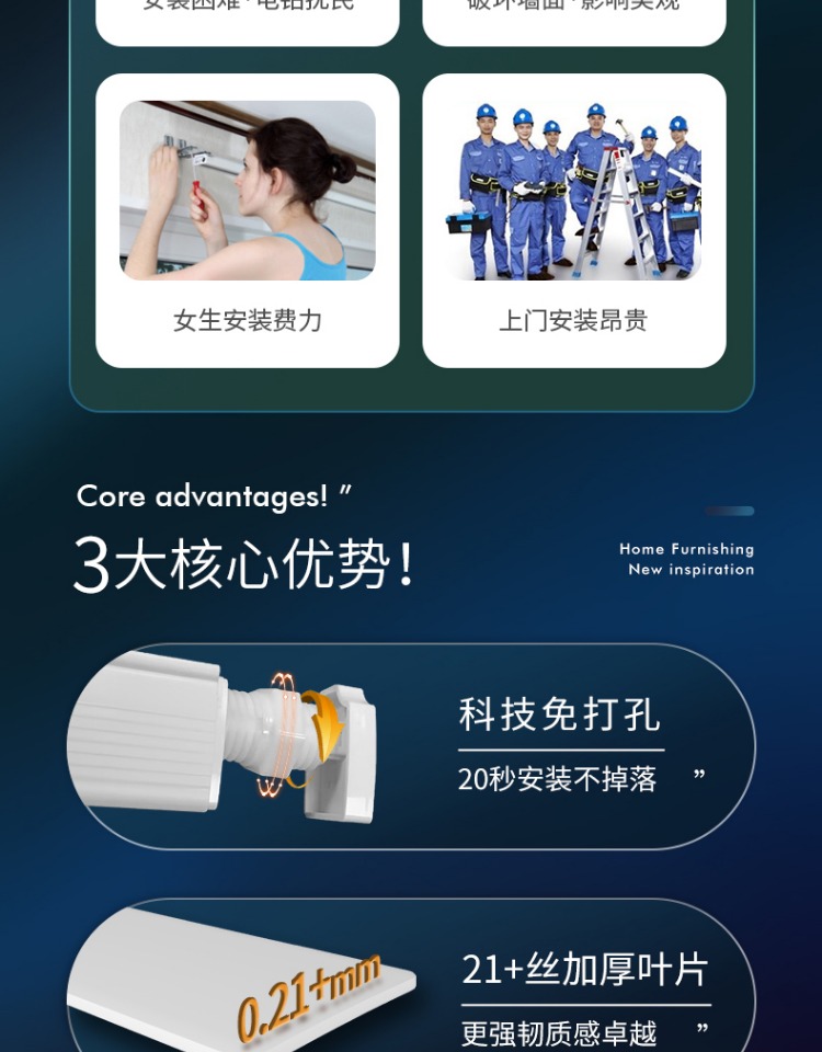 ✅ 주방 및 욕실 롤업 리프팅을 위한 알루미늄 합금 펀치 프리 설치 차광 블라인드 커튼스토어 가기
