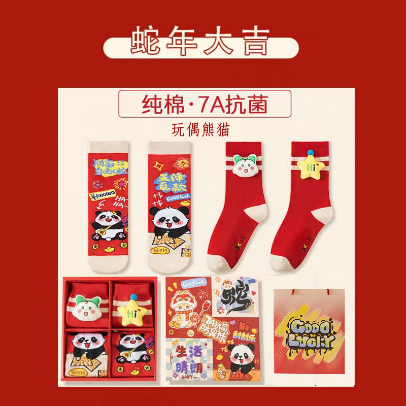 7A 항균 탈취제 양말 스네이크 레드 양말 선물 상자 블라인드 박스 남성과 여성의 새해 가을과 겨울 중반 배럴 브닝 니언 레드 코튼 양말스토어 가기
