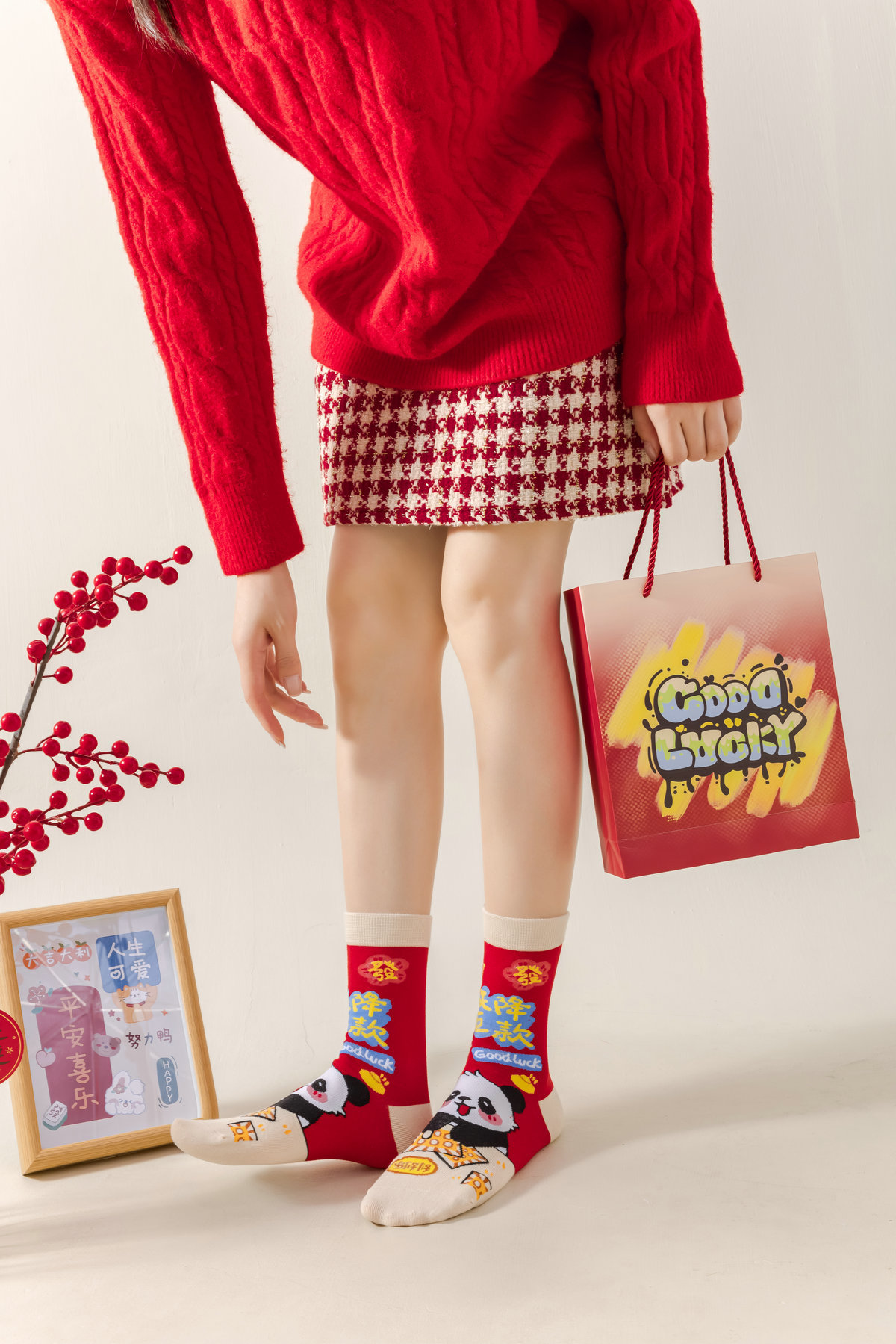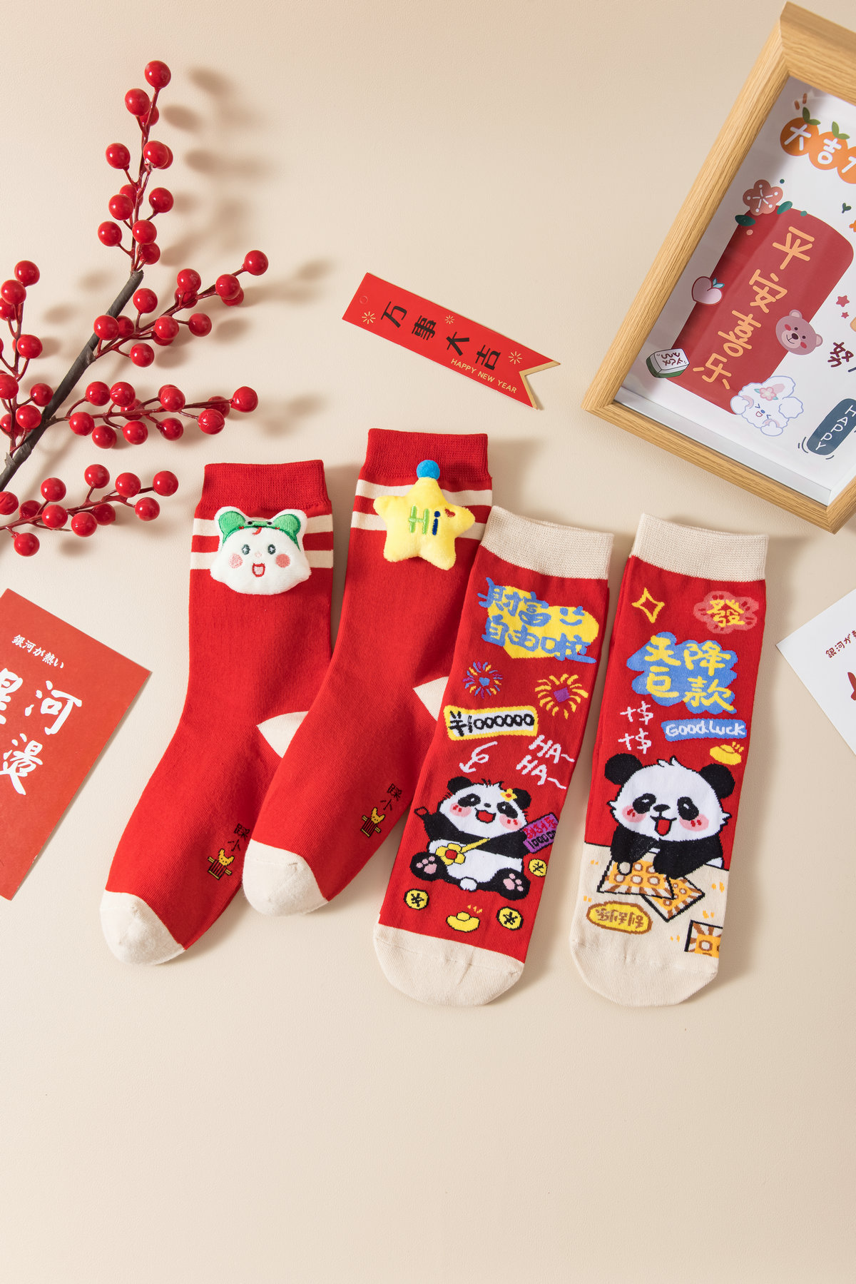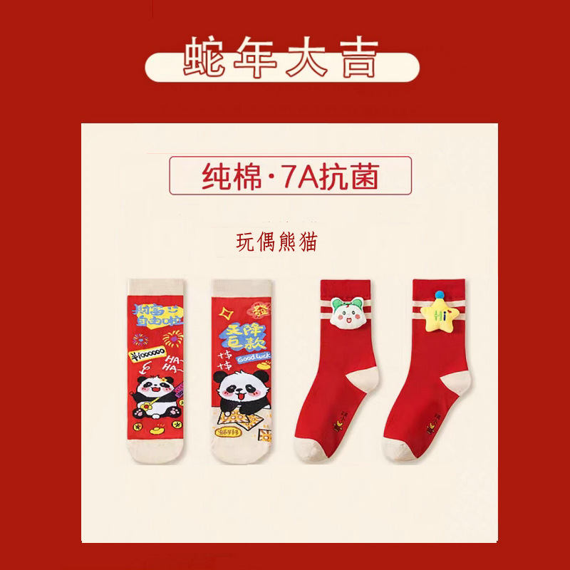 7A 항균 탈취제 양말 스네이크 레드 양말 선물 상자 블라인드 박스 남성과 여성의 새해 가을과 겨울 중반 배럴 브닝 니언 레드 코튼 양말