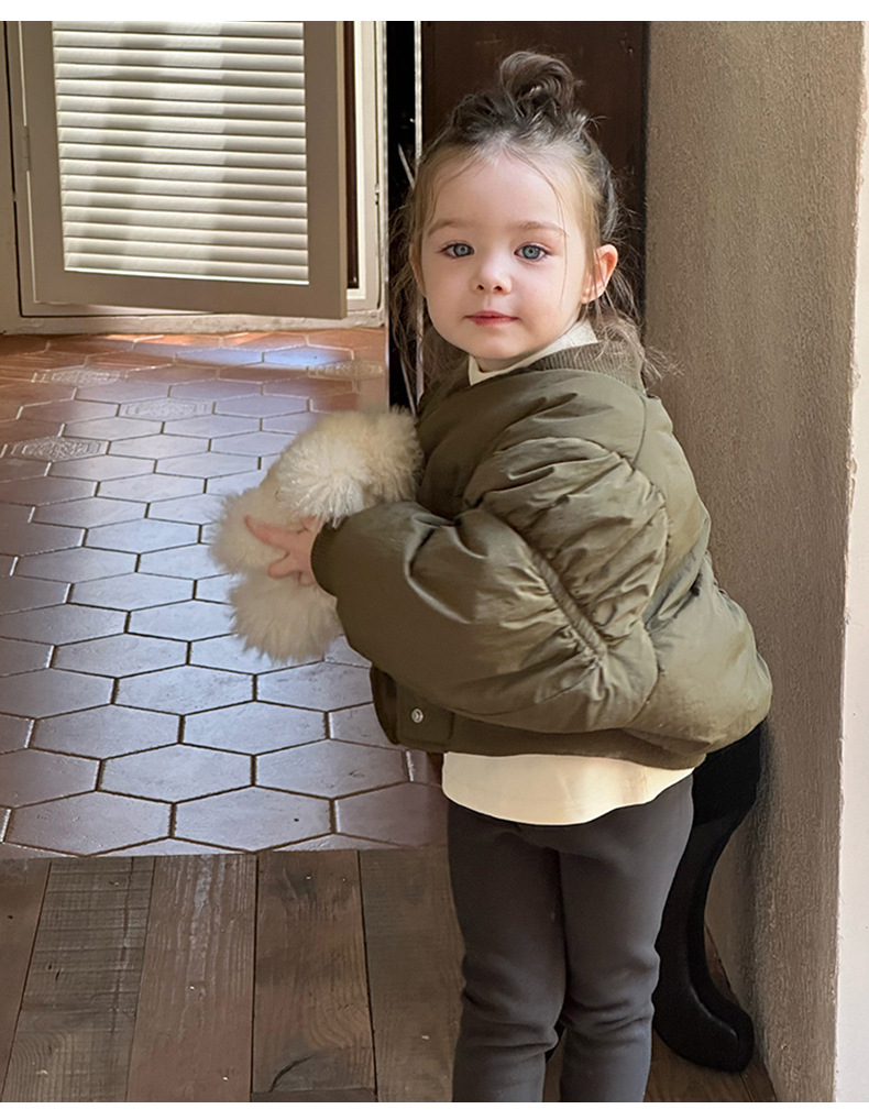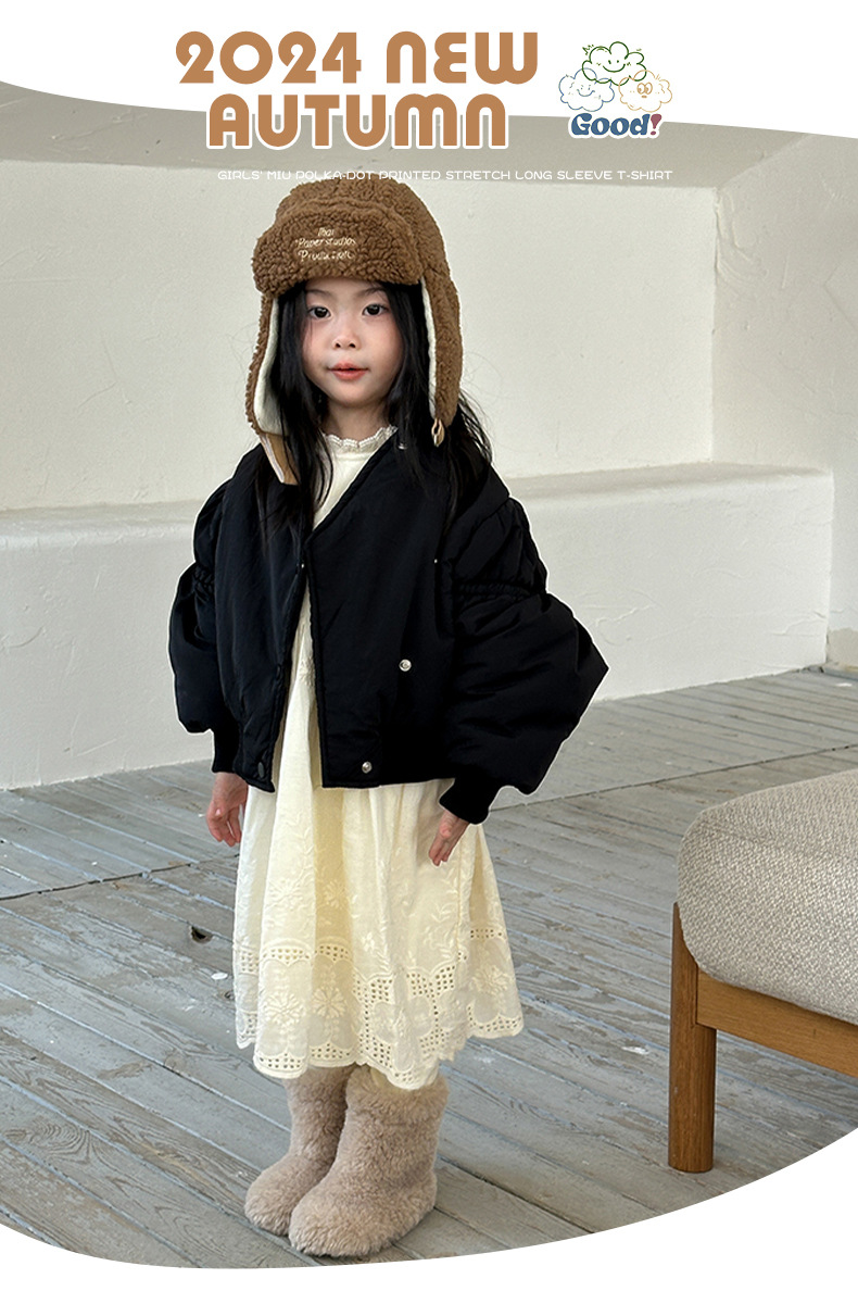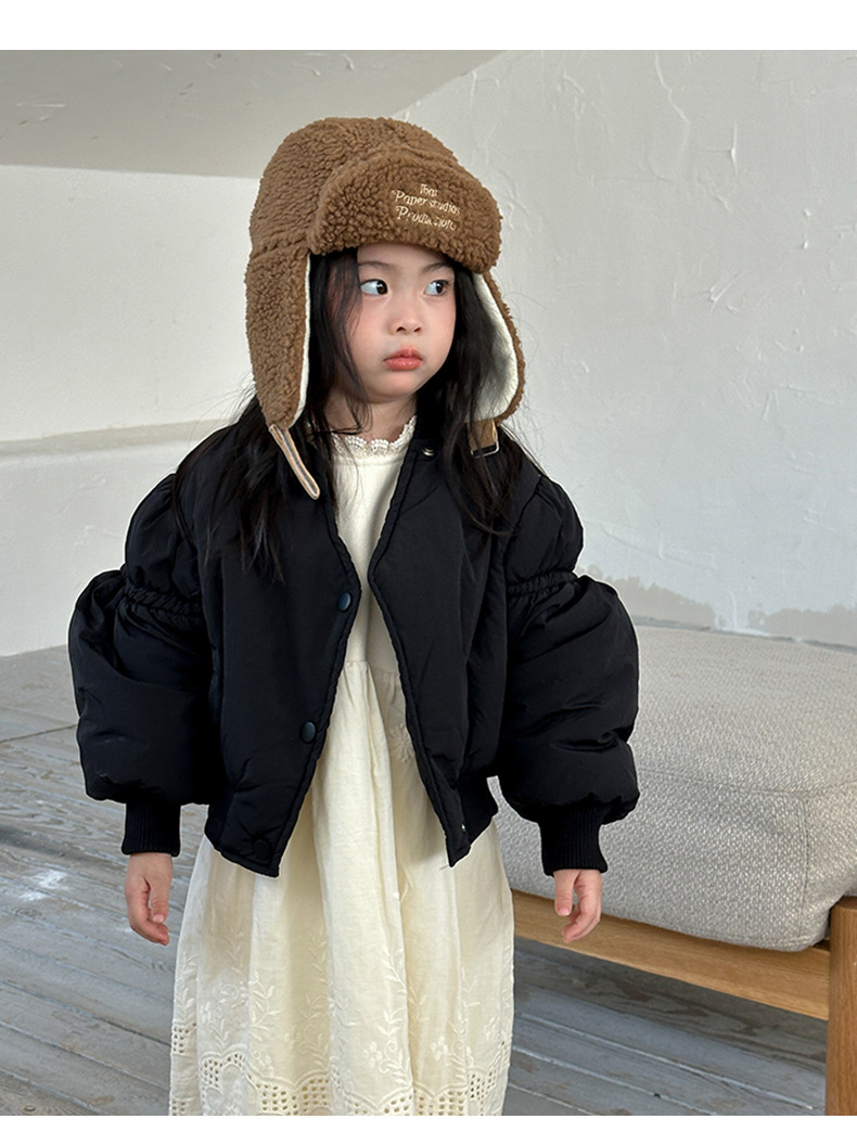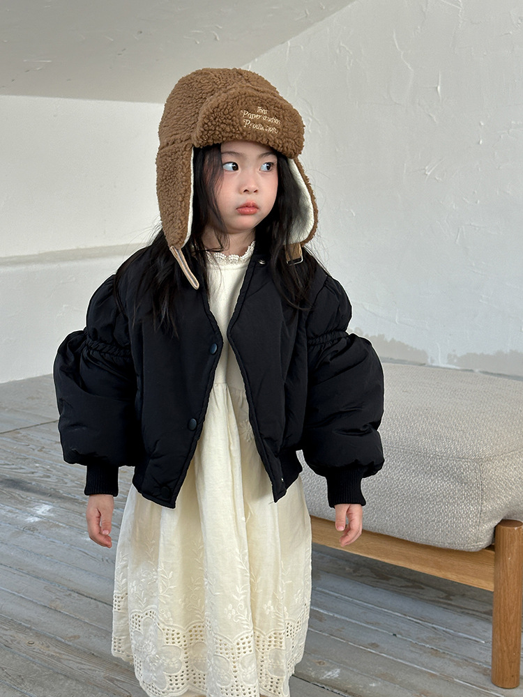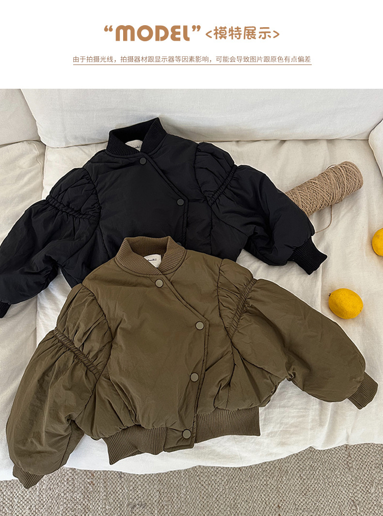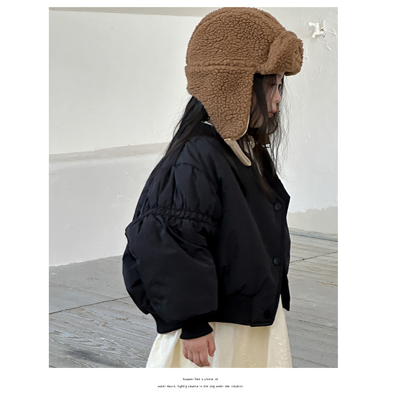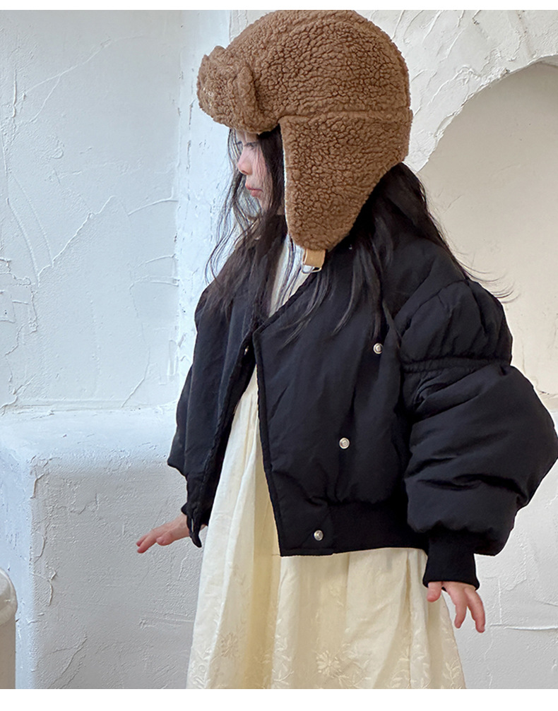 어린이 불규칙한 짧은 면화 코트 2024 가을, 겨울 새로운 한국 스타일 소녀의 부드러운 밀랍 면화 재킷