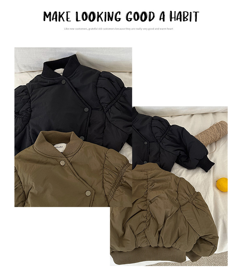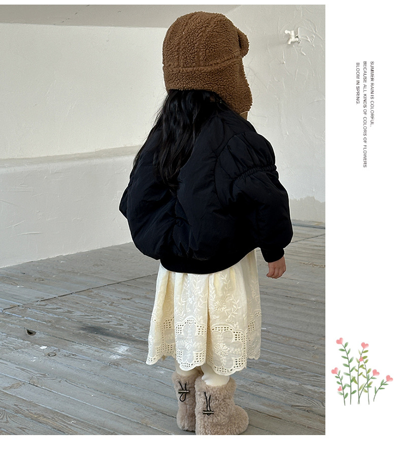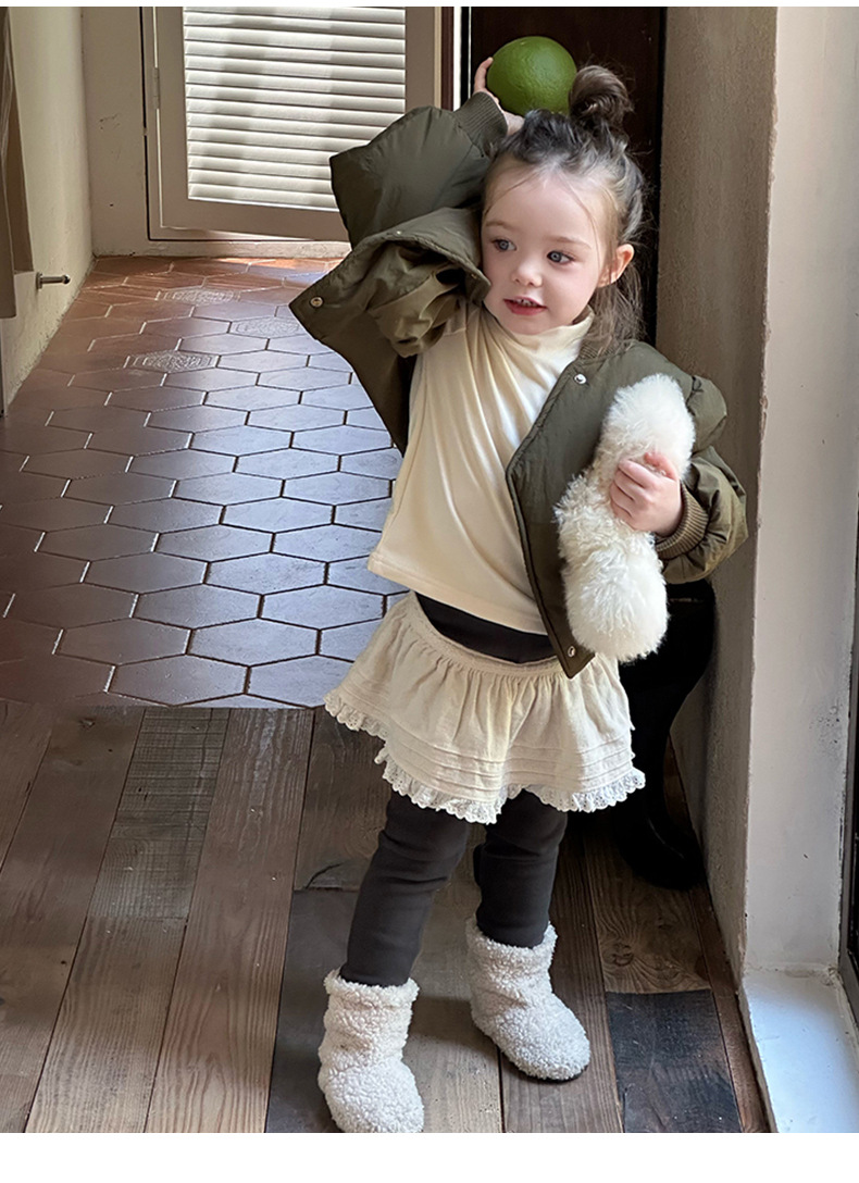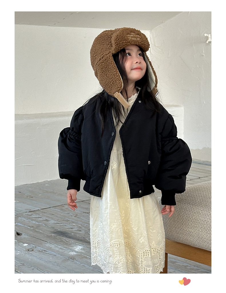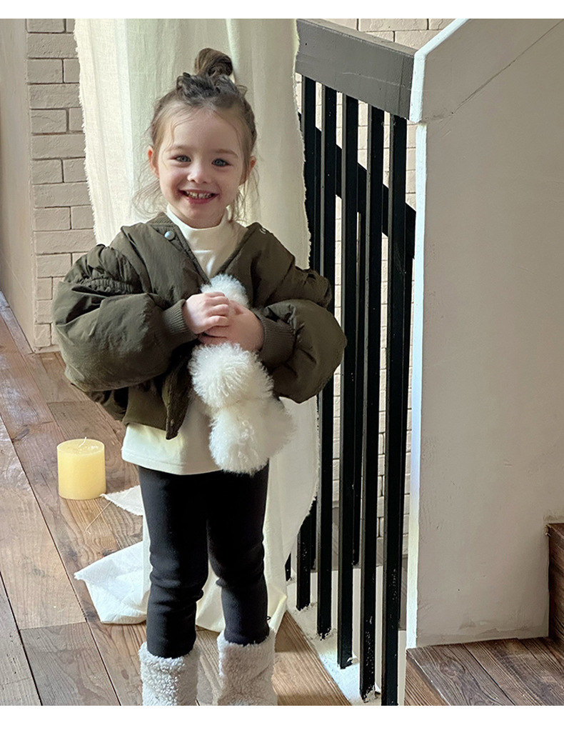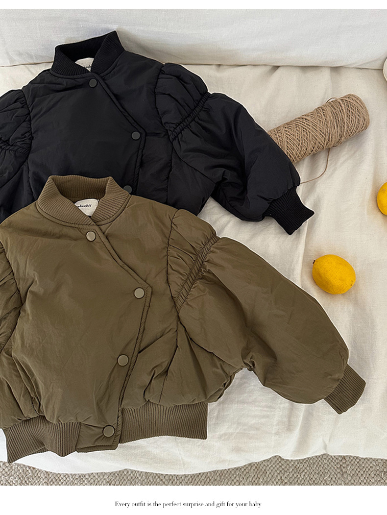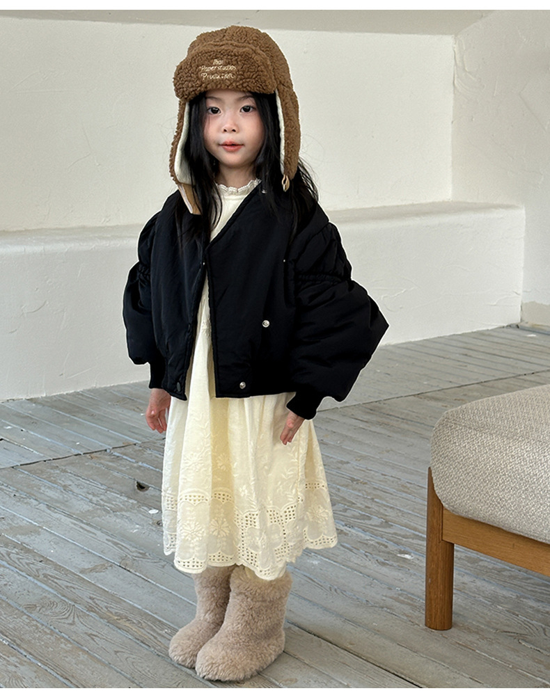 어린이 불규칙한 짧은 면화 코트 2024 가을, 겨울 새로운 한국 스타일 소녀의 부드러운 밀랍 면화 재킷