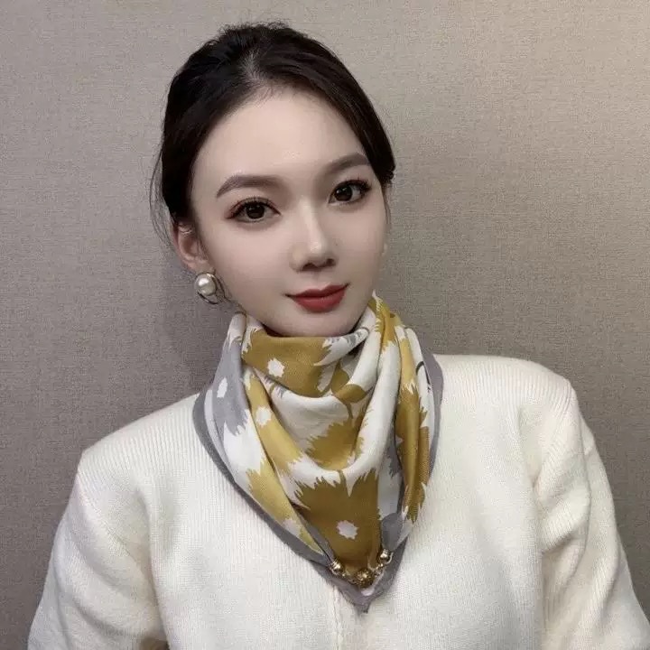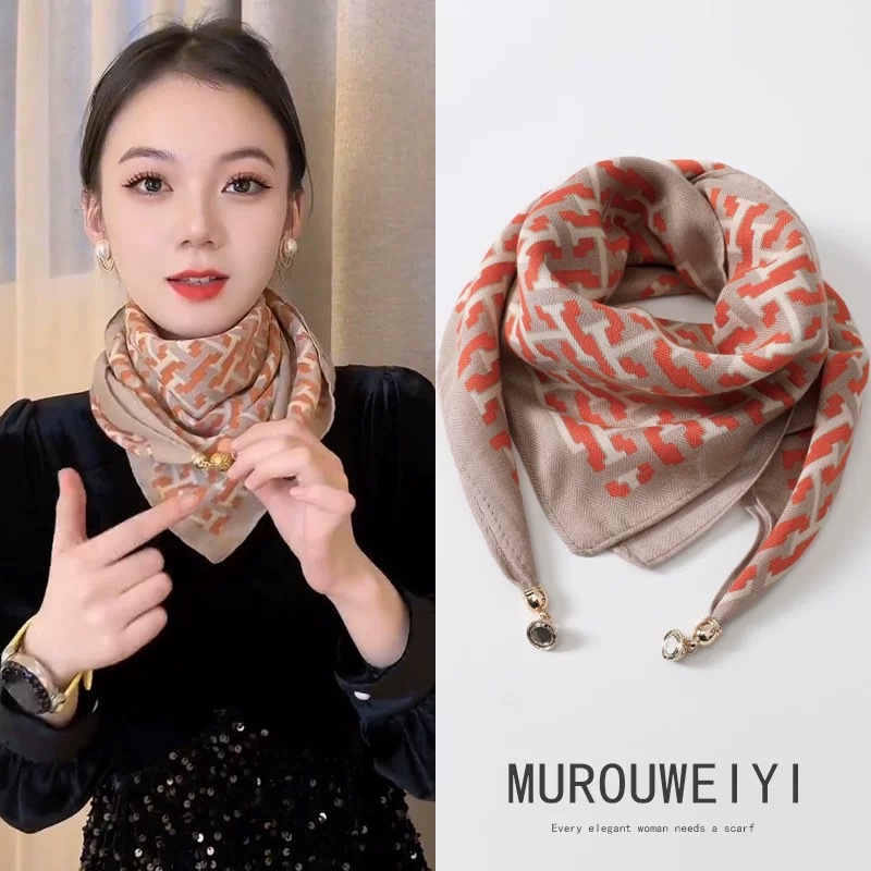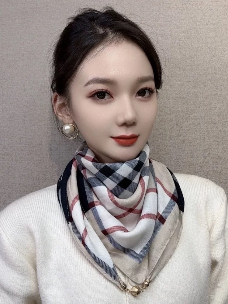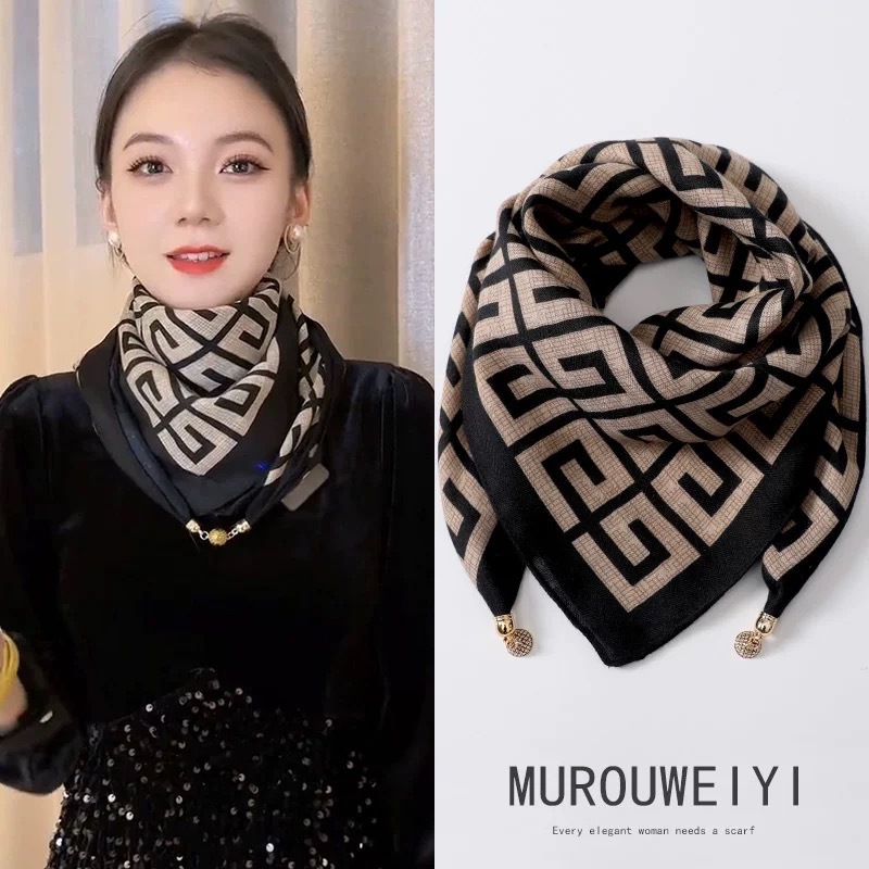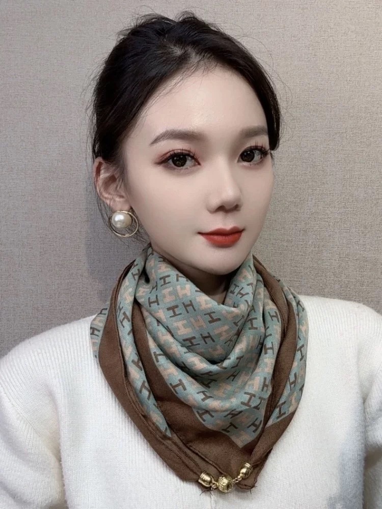 2024 새로운 스타일 따뜻한 광장 스카프 마그네틱 버클 삼각형 실크 스카프 면화 스카프 여성의 봄 가을과 겨울 서양 스타일 스카프 우아한 올 매치스토어 가기