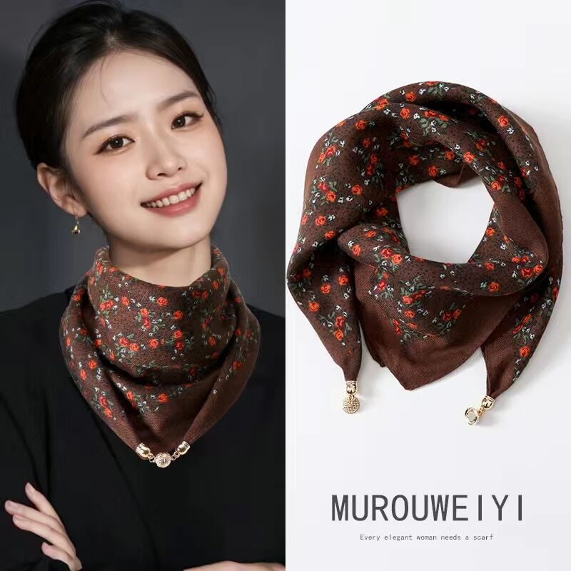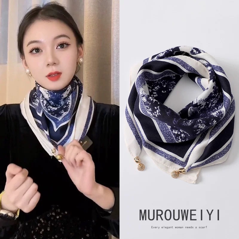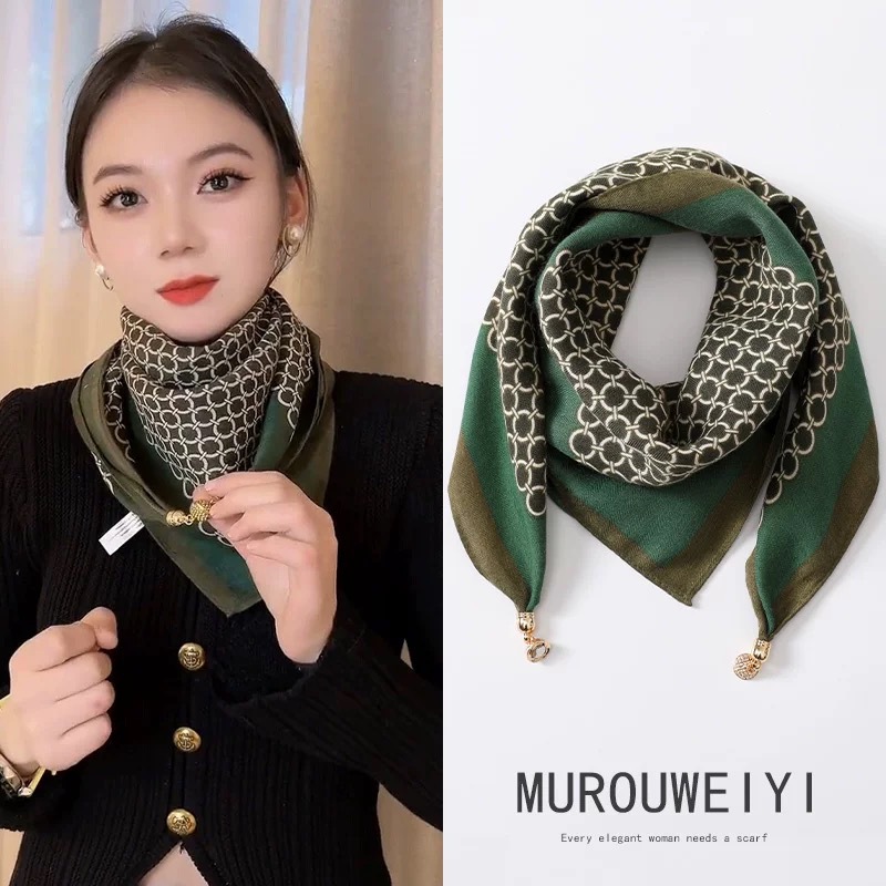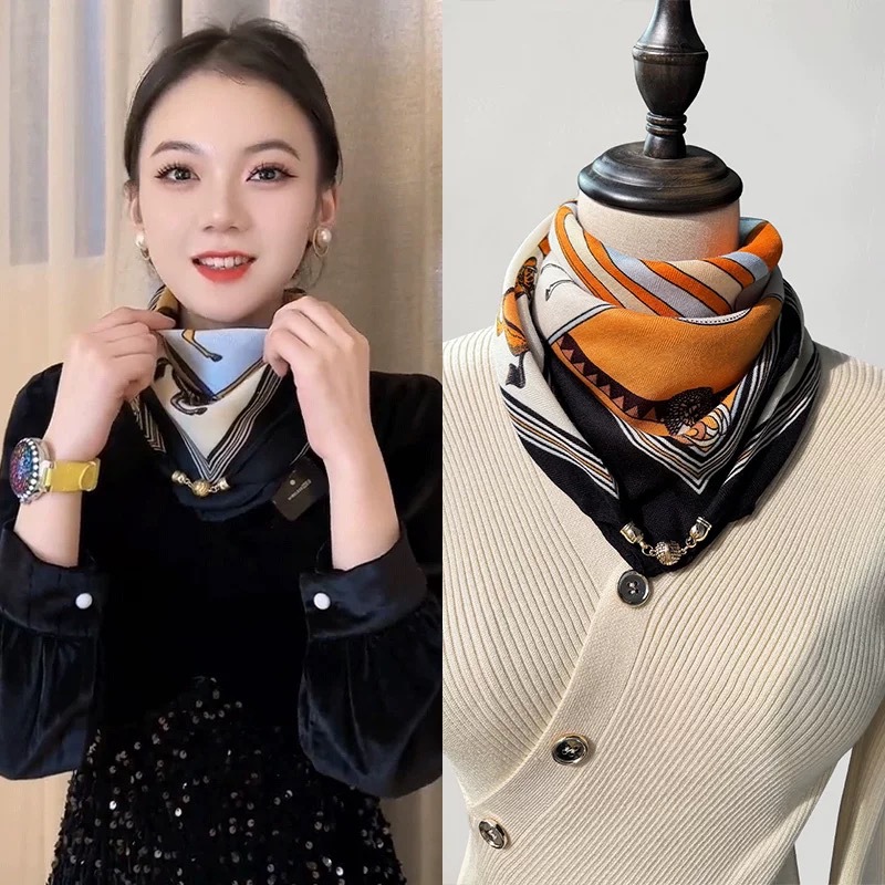 2024 새로운 스타일 따뜻한 광장 스카프 마그네틱 버클 삼각형 실크 스카프 면화 스카프 여성의 봄 가을과 겨울 서양 스타일 스카프 우아한 올 매치