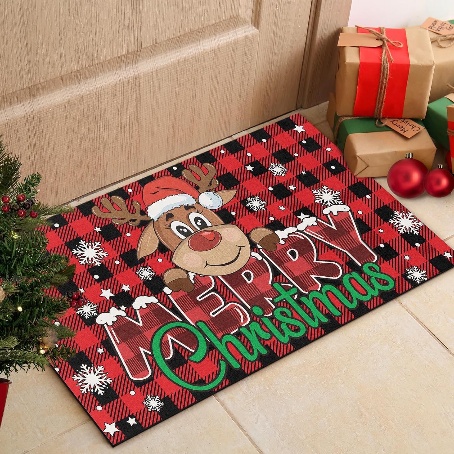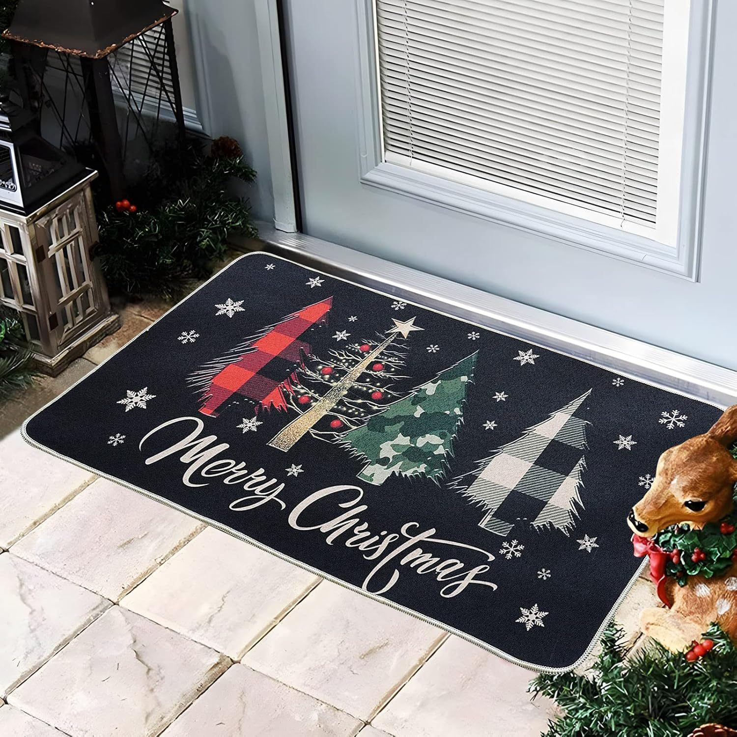 아마존 뜨거운 판매 크리스마스 트리 메리 크리스마스 크리스탈 벨벳 편안한 먼지 저항 쉬운 케어 바닥 매트 주방 입구 장식스토어 가기