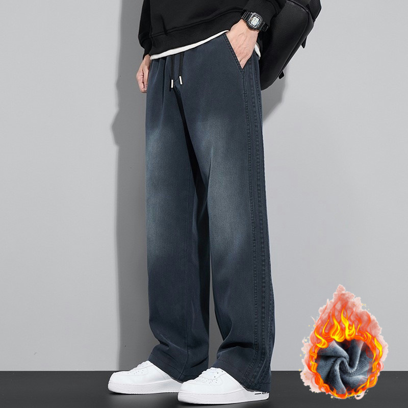 남자 캐주얼 바지 가을 새로운 유행 브랜드 미국 스타일 루즈 스트라이프 스트레이트 레그 Lyocell 래핑 와이드 레그 스포츠 바지스토어 가기