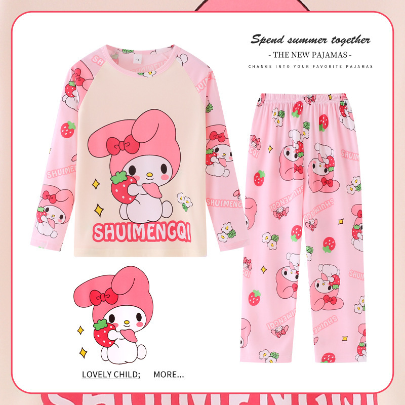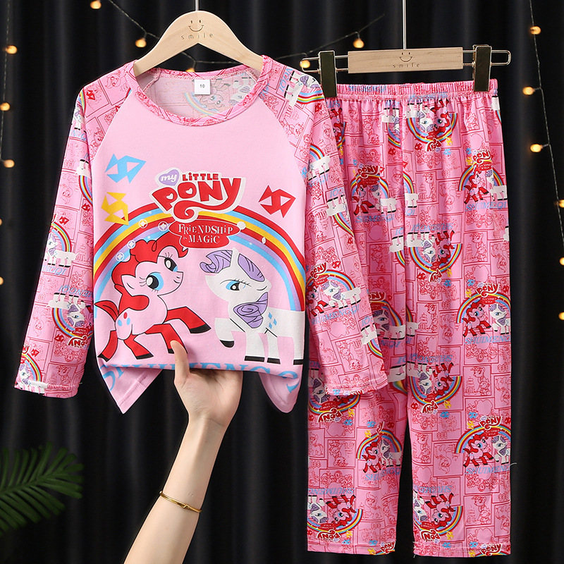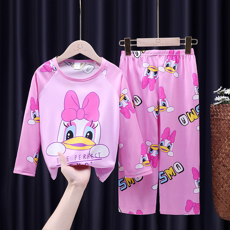 어린이 잠옷 소녀 봄과 가을 귀여운 얇은 세트 어린이 아기 소녀 큰 어린이 집 에어컨 의류 도매