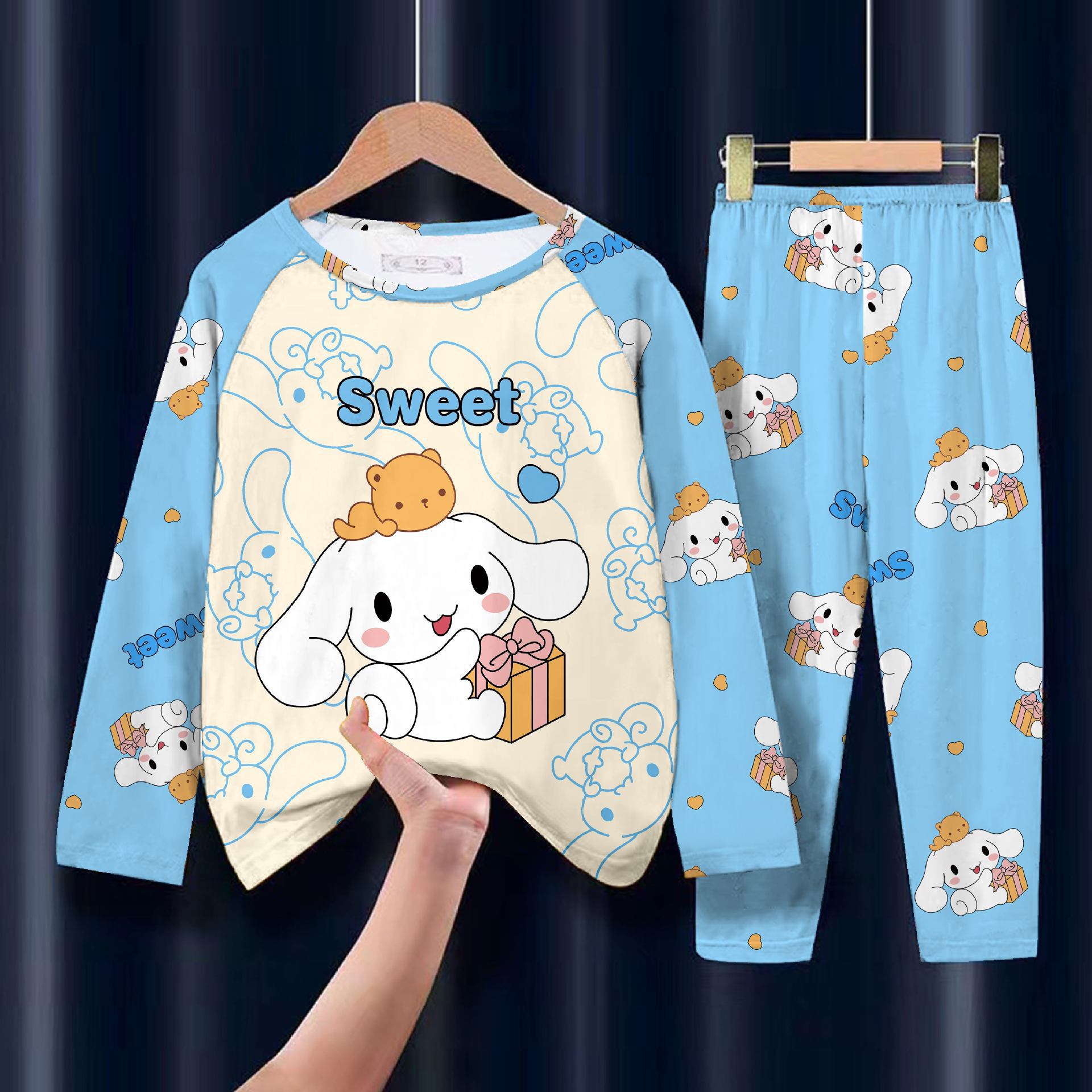 어린이 잠옷 소녀 봄과 가을 귀여운 얇은 세트 어린이 아기 소녀 큰 어린이 집 에어컨 의류 도매스토어 가기