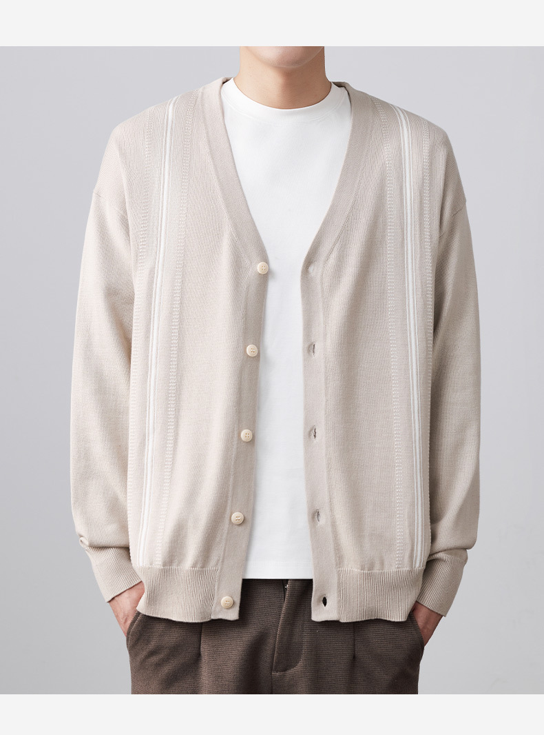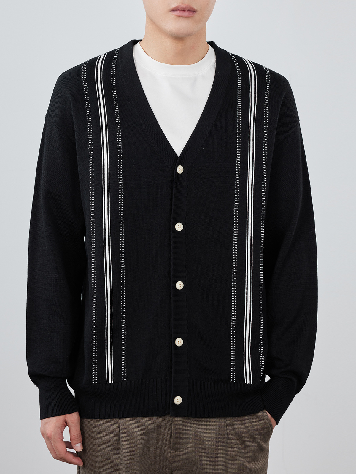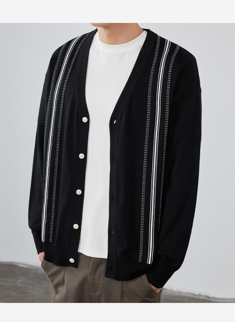 남자 명암 스트라이프 V 넥 카디건 백 스타일 2024 봄과 가을 새로운 유행 한국 스타일 유행 캐주얼 얇은 재킷스토어 가기