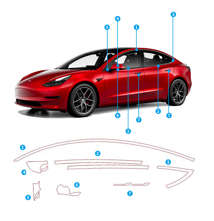 테슬라 모델3 전면 창문 장식 스트립 블랙 스티커 차체 프레임 색상 변경 스티커 개조 필름스토어 가기