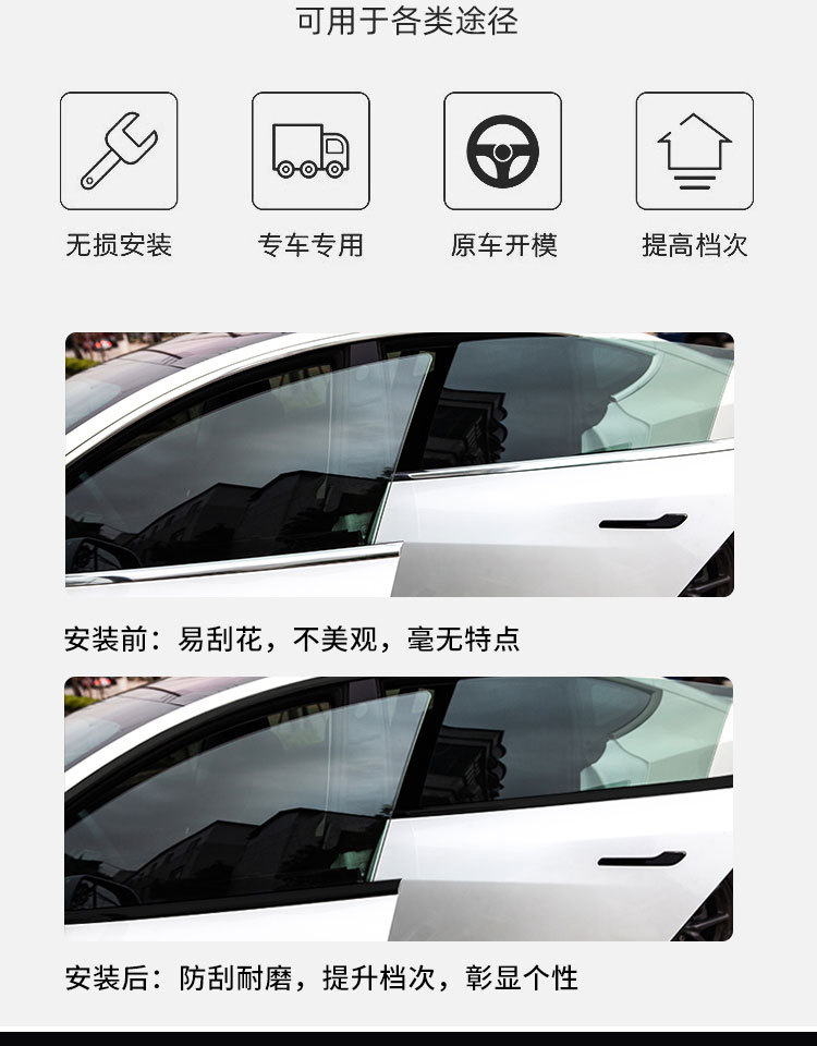 테슬라 모델3 전면 창문 장식 스트립 블랙 스티커 차체 프레임 색상 변경 스티커 개조 필름