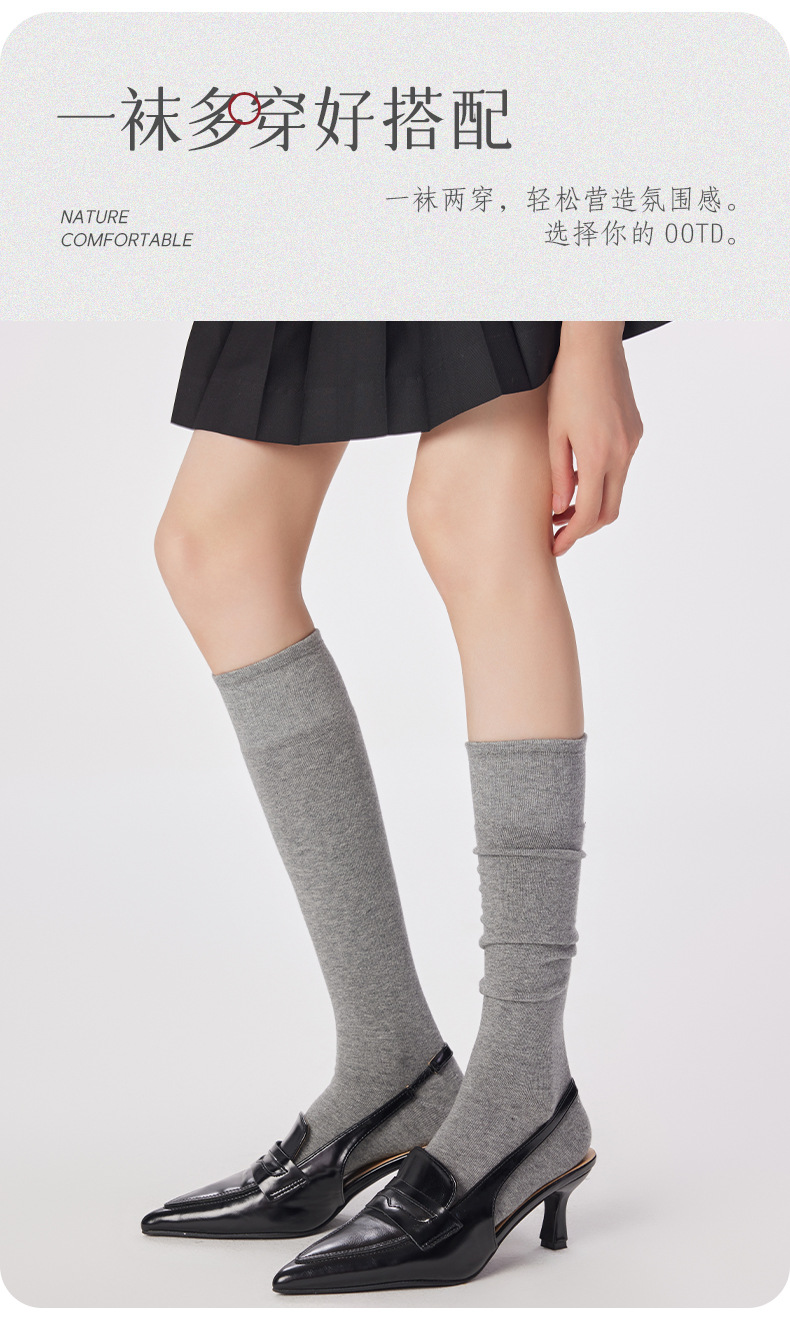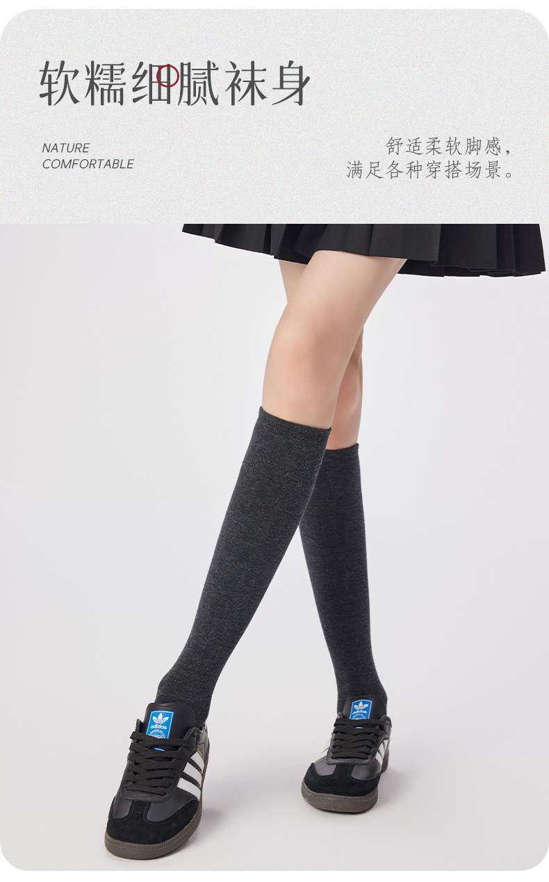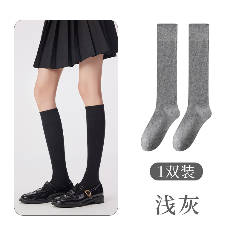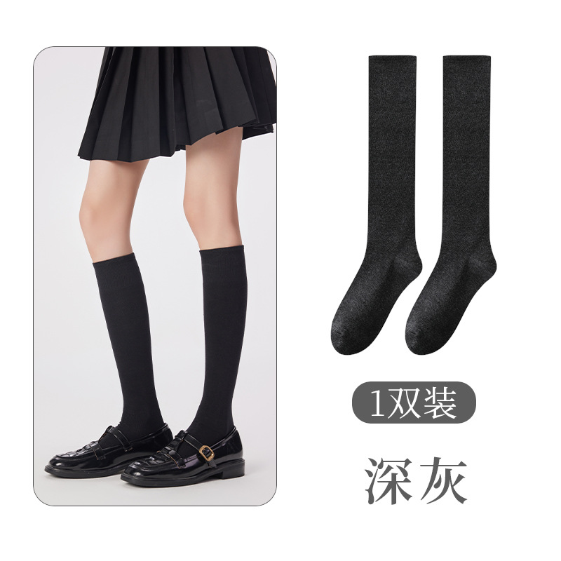 Mihimihi2024 가을과 겨울 단색 긴 종아리 양말 여성용 에어로빅 코튼 jk 스타일 일본 무릎 양말 뼈없는 단색스토어 가기